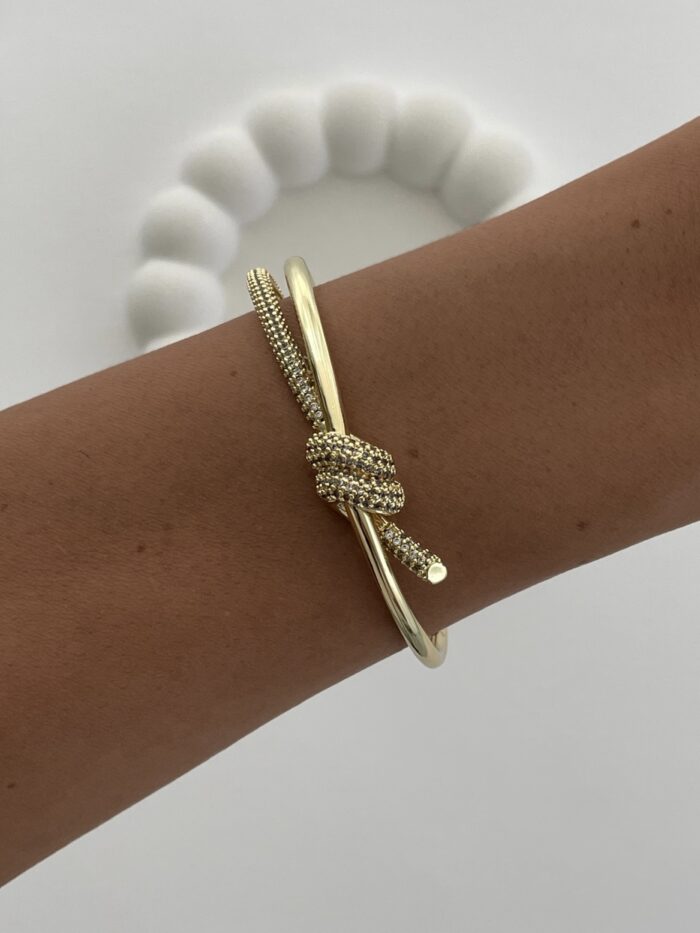 Özel Seri Zirkon Taşlı Düğüm Tasarım Gold Kelepçe Bileklik