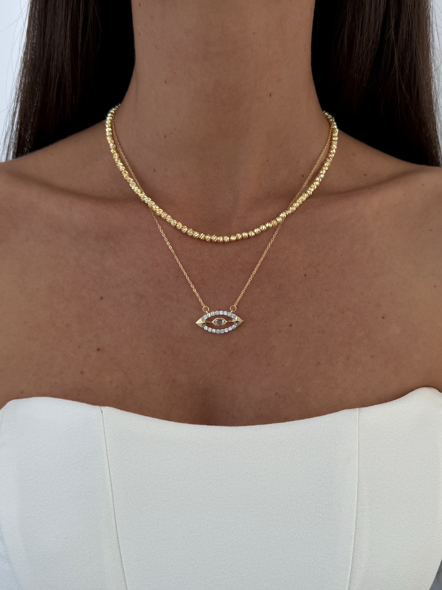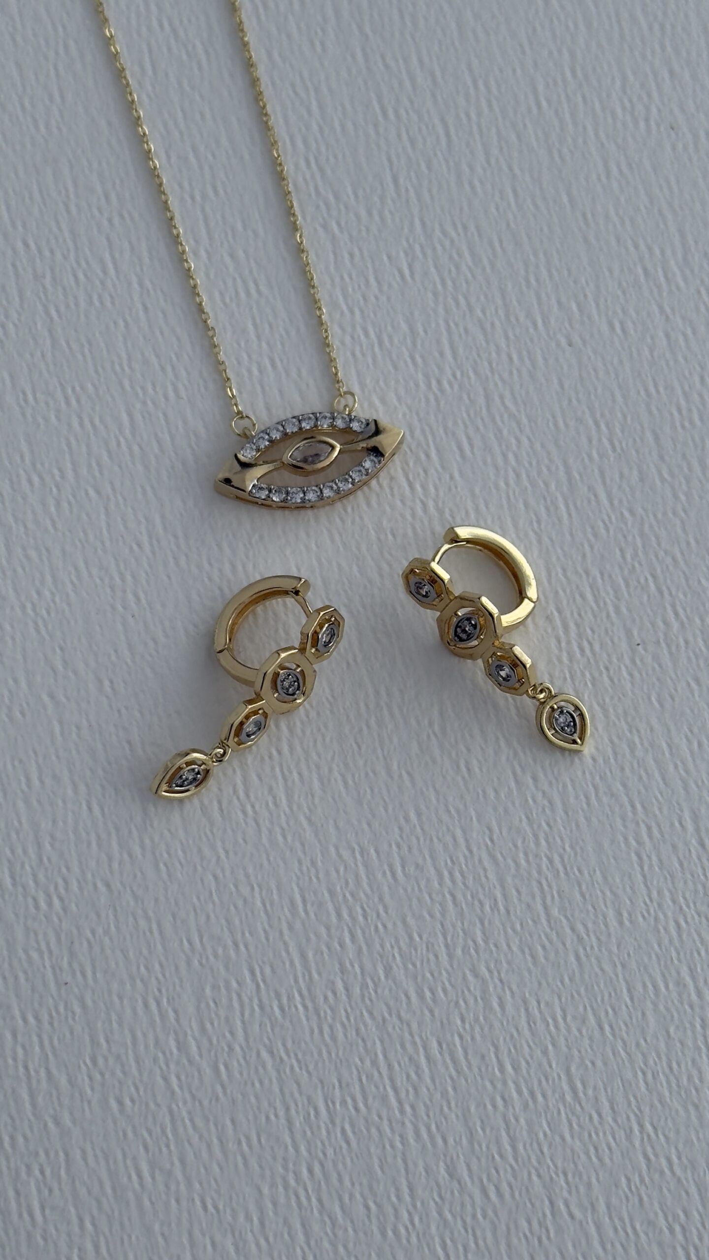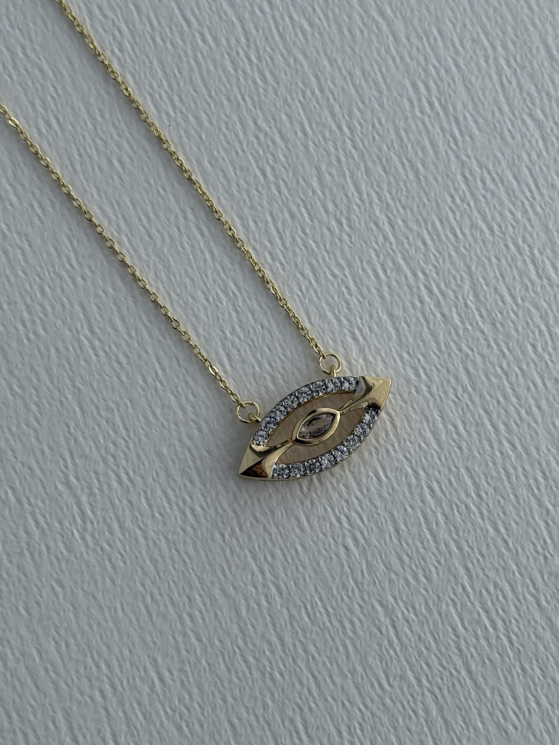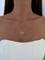 Özel Seri Zirkon Taşlı Elips Göz Tasarım Gold Kolye