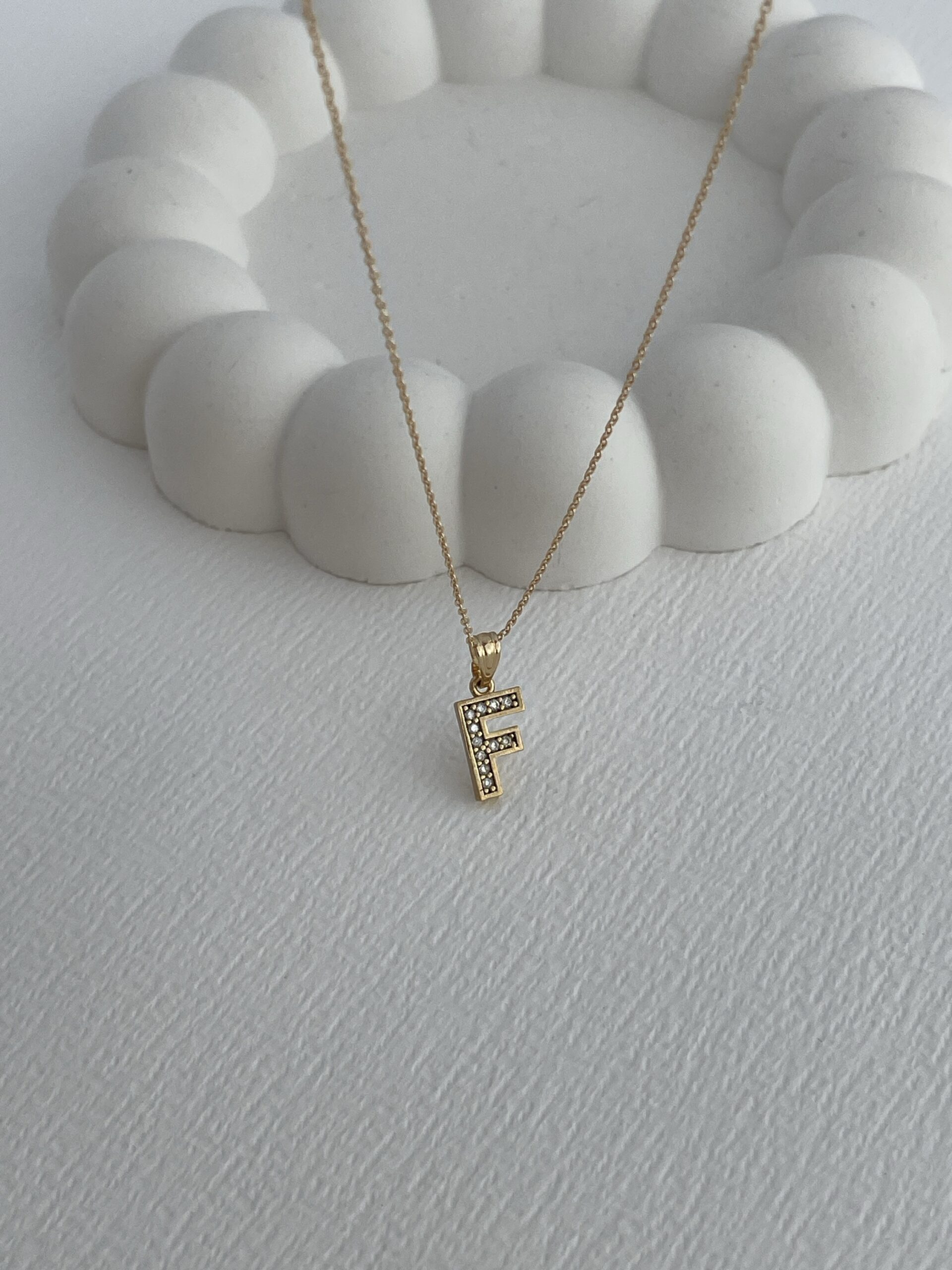 Özel Seri Zirkon Taşlı F Harf Minimal Gold Kolye