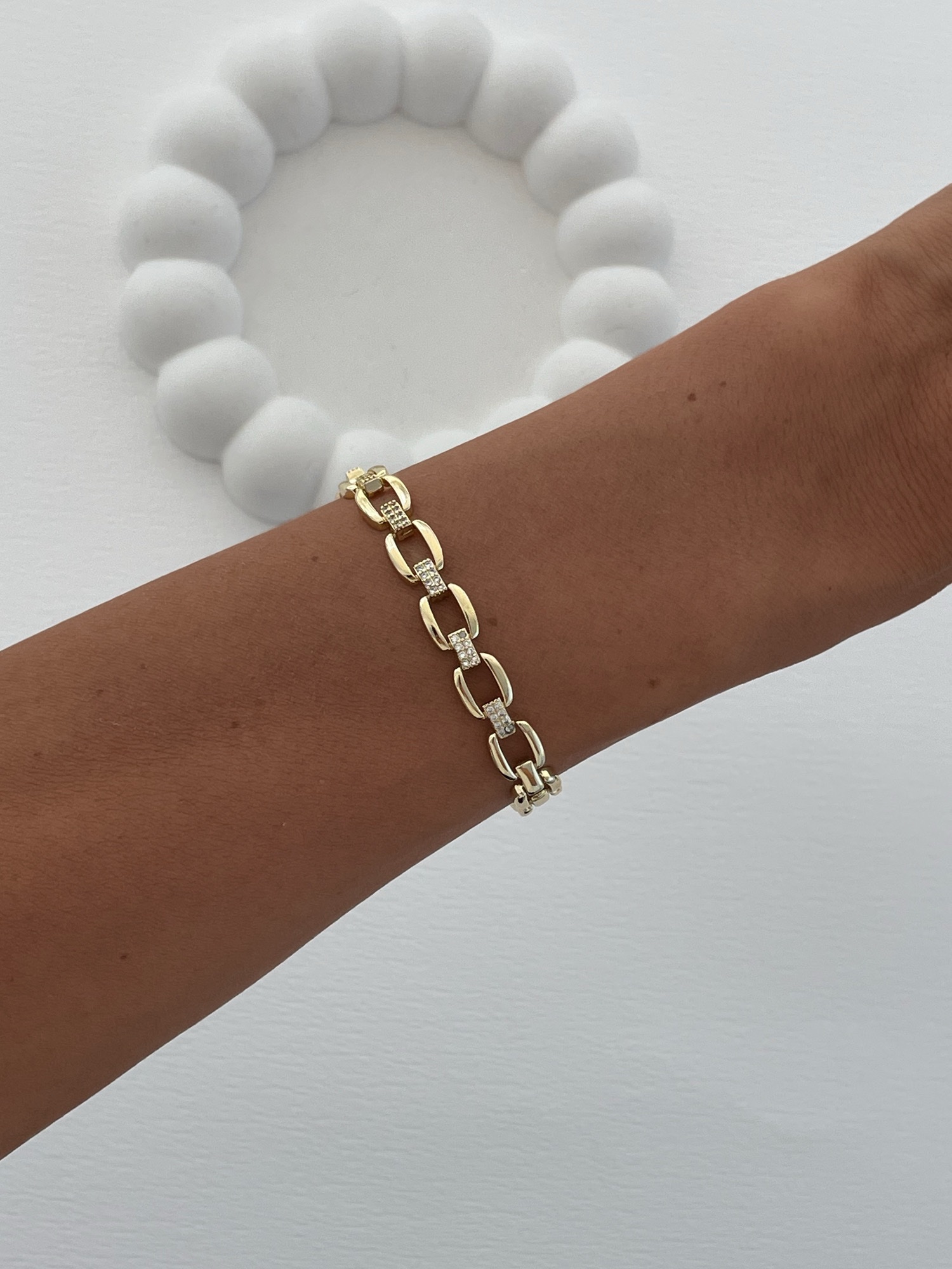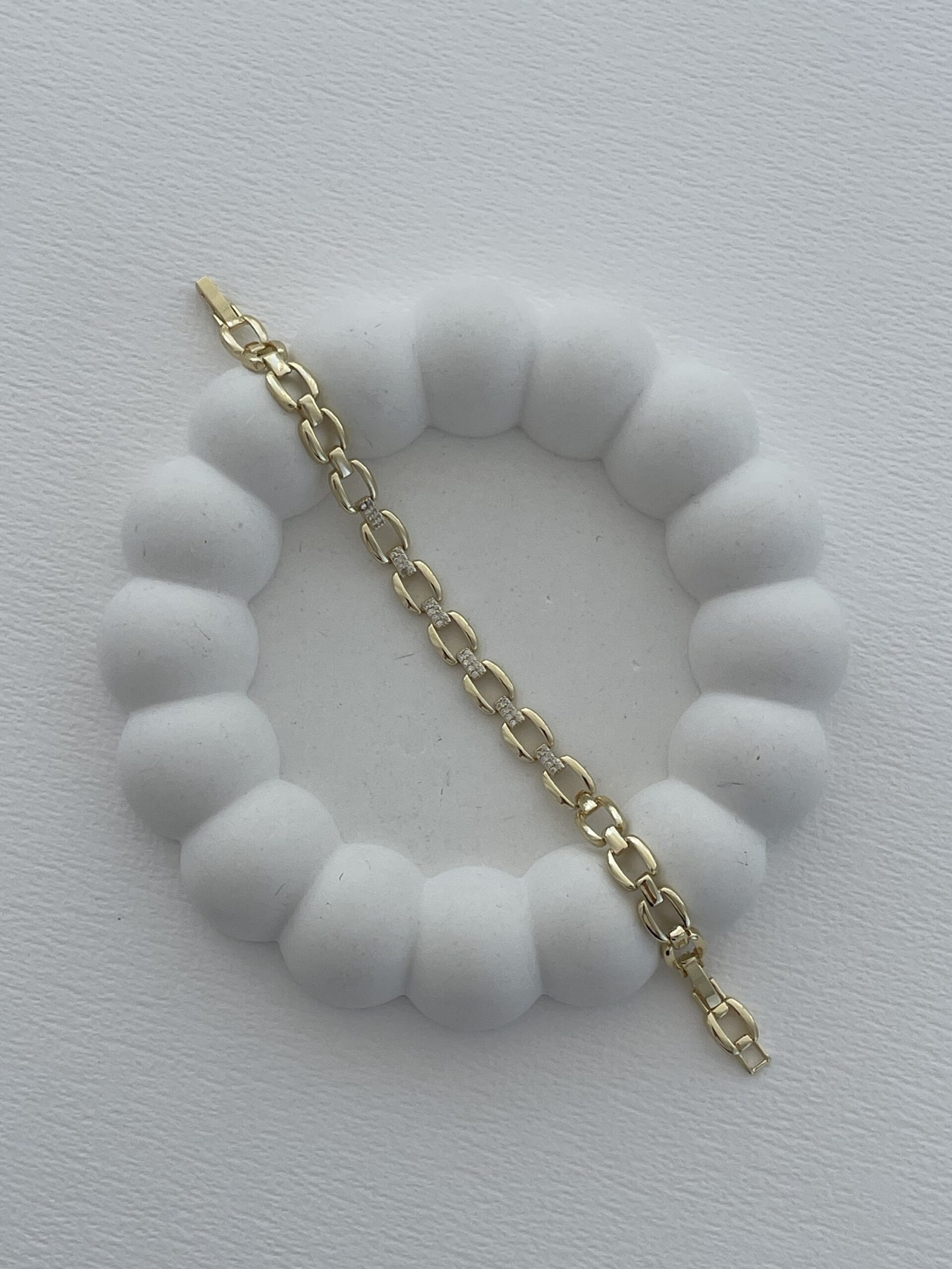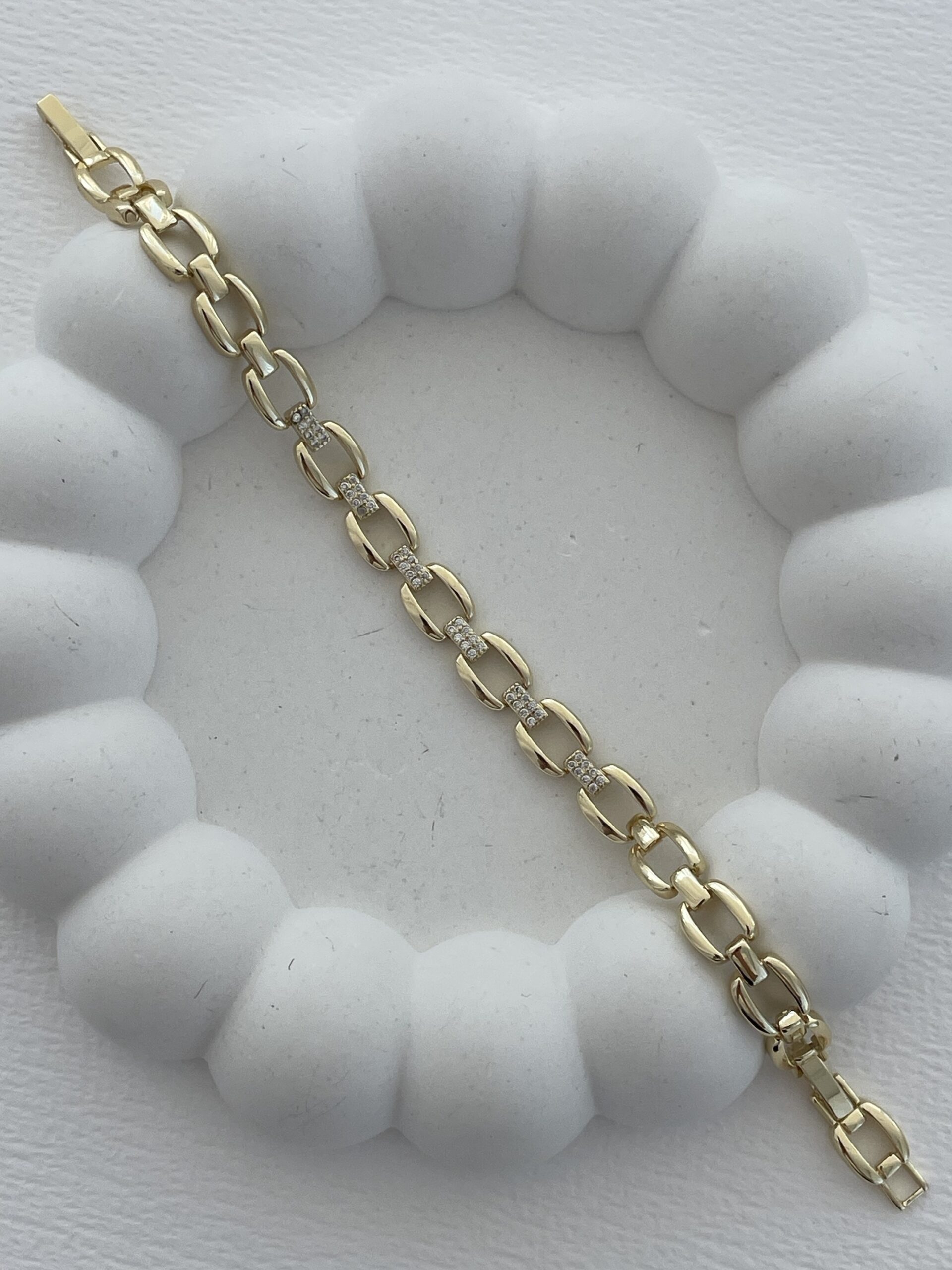 Özel Seri Zirkon Taşlı Figaro Zincir Gold Bileklik