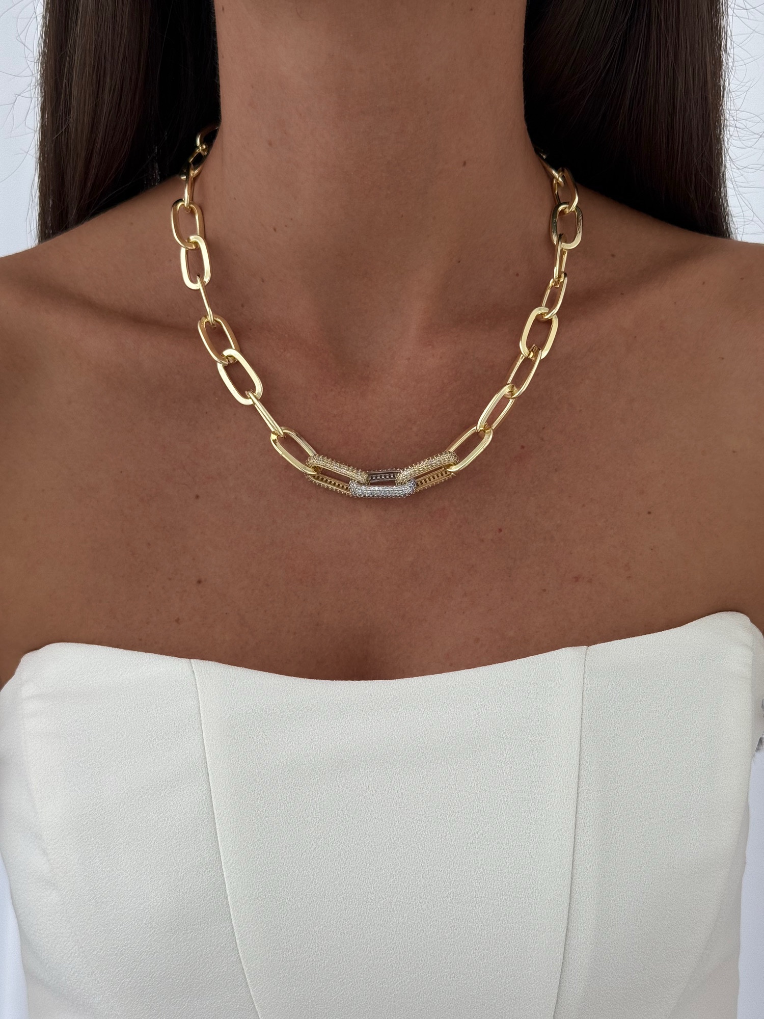Özel Seri Zirkon Taşlı Figaro Zincir Marka Model Gold Kolye