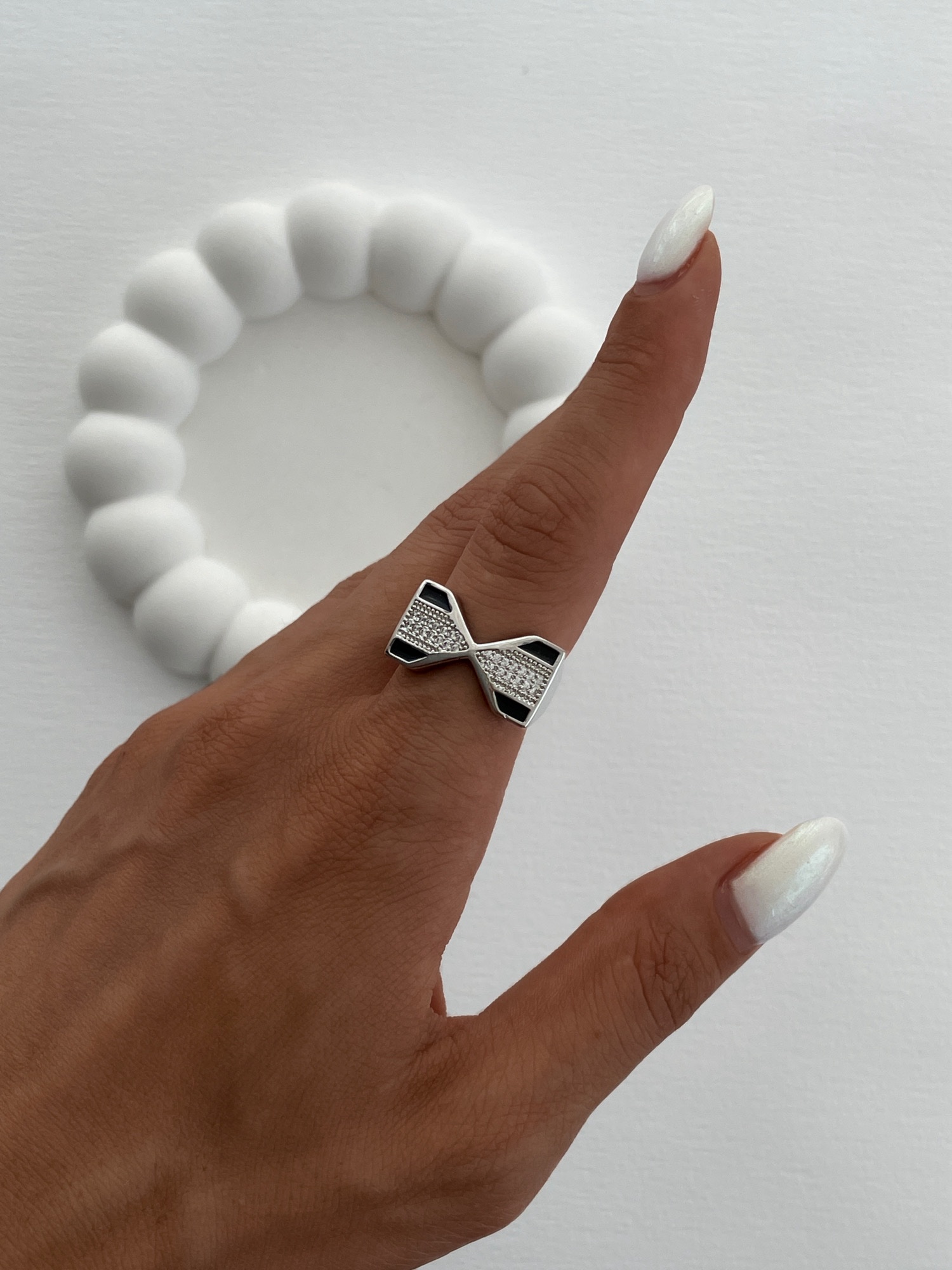 Özel Seri Zirkon Taşlı Fiyonk Tasarım Ayarlanabilir Gümüş Yüzük