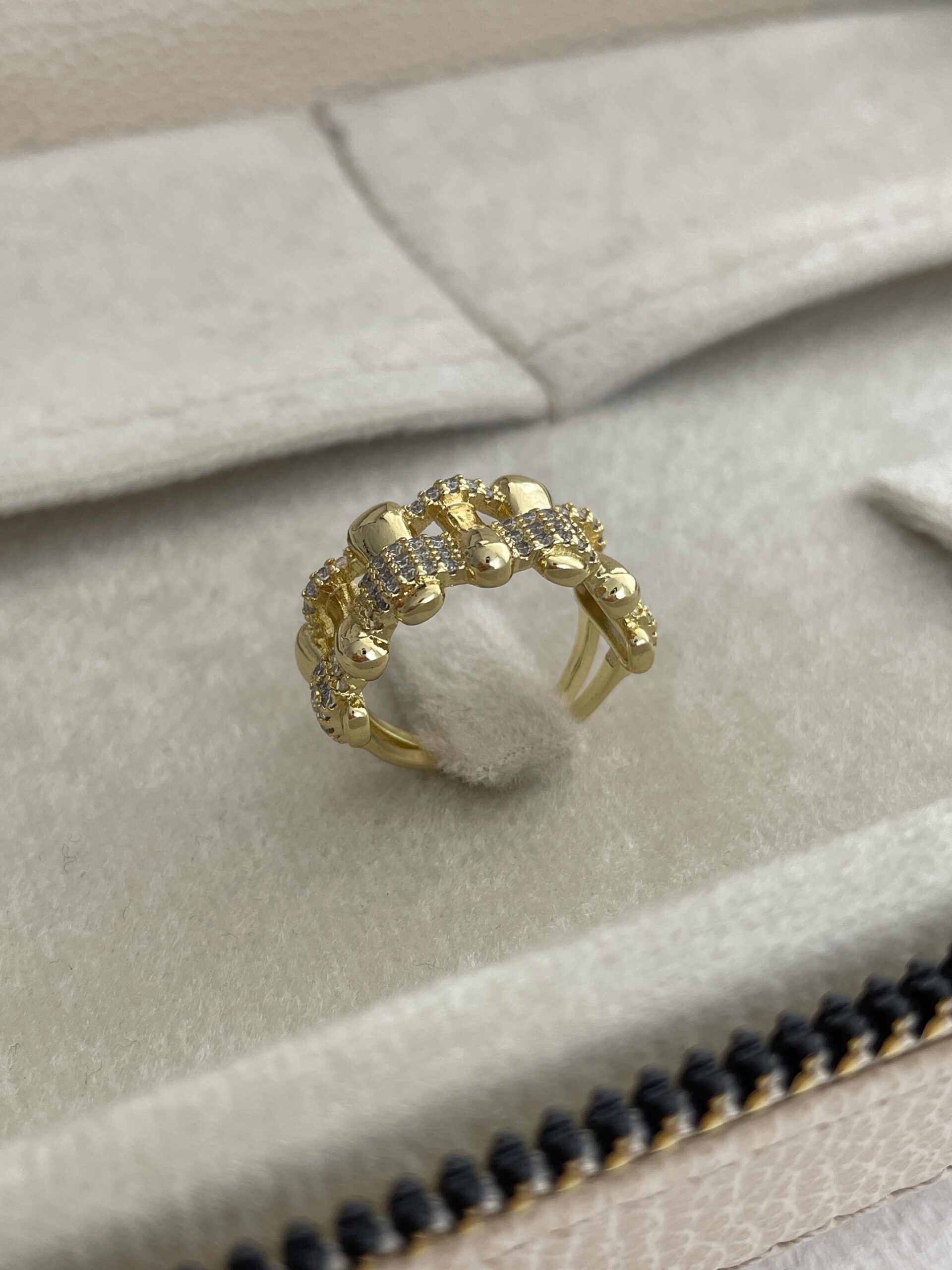 Özel Seri Zirkon Taşlı Geometrik Desen Ayarlanabilir Gold Yüzük