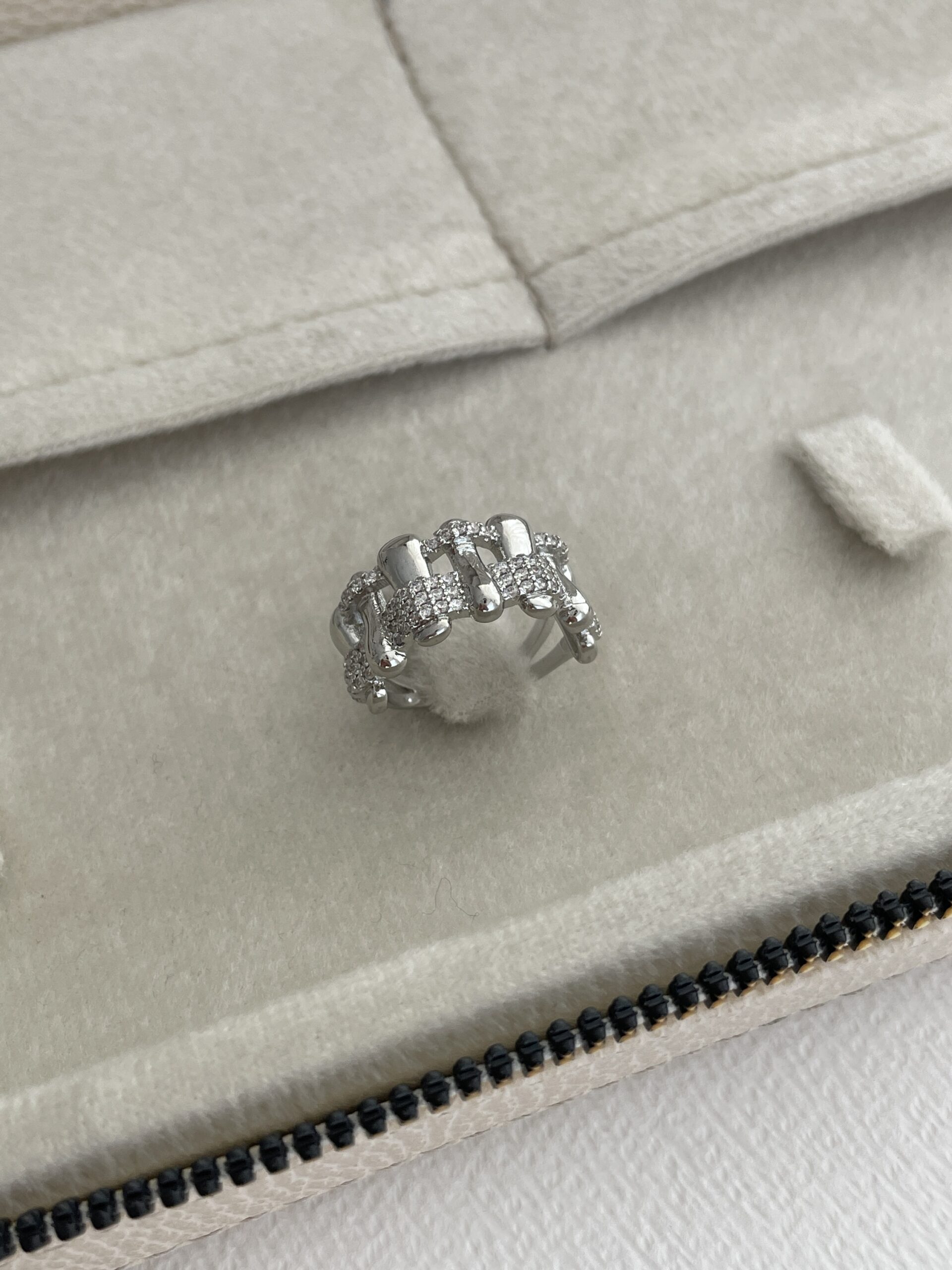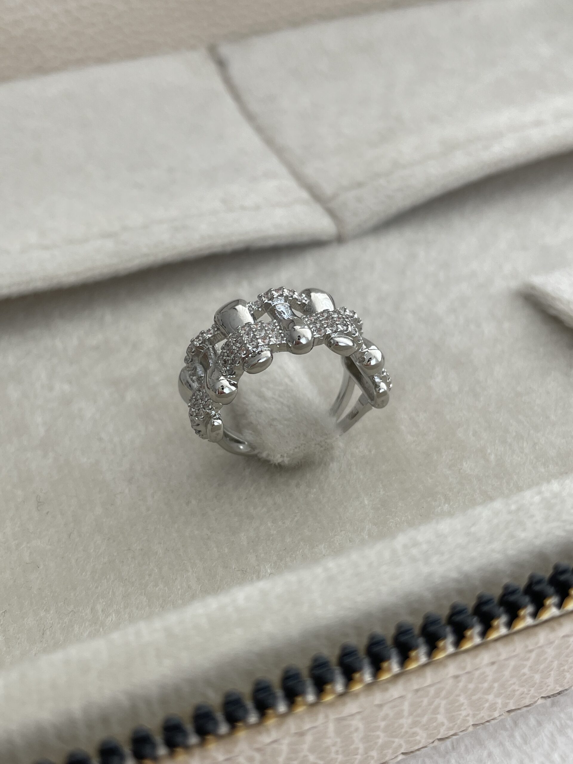 Özel Seri Zirkon Taşlı Geometrik Desen Ayarlanabilir Gümüş Yüzük