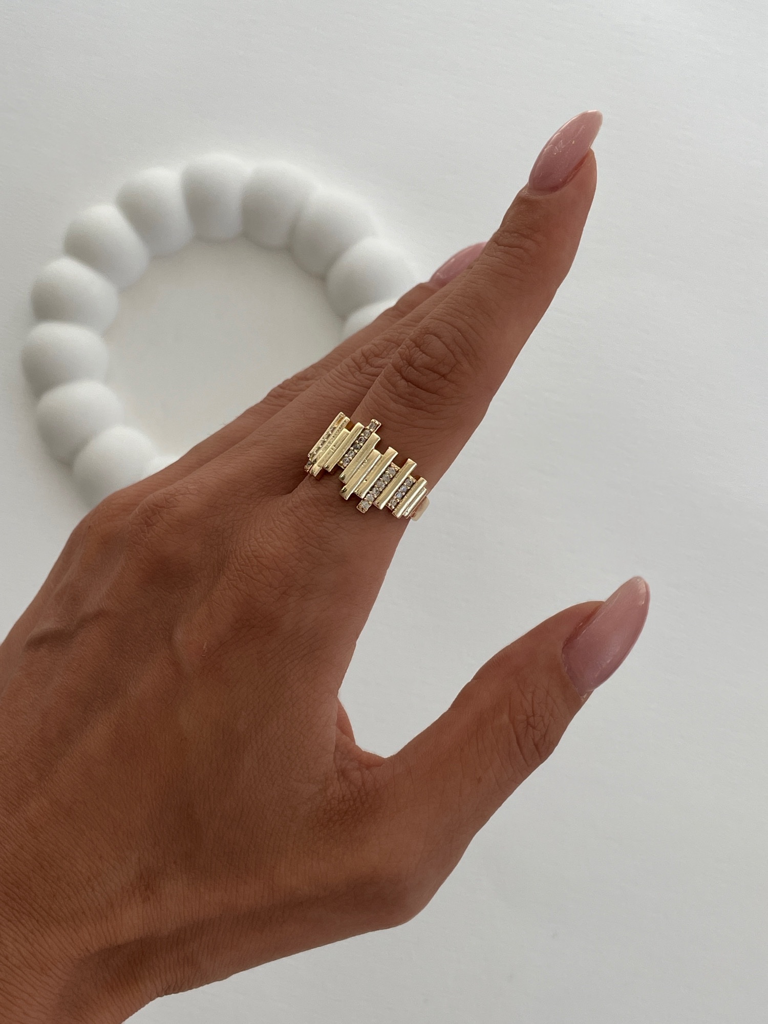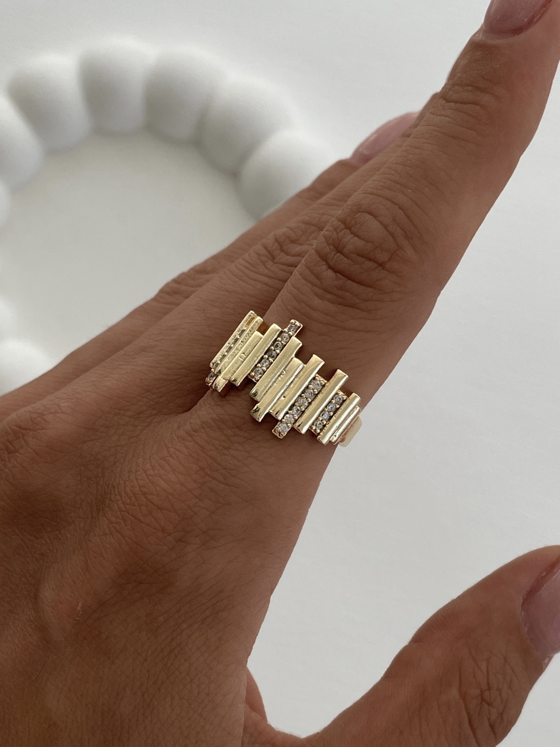 Özel Seri Zirkon Taşlı Zikzak Desen Gold Ayarlanabilir Yüzük