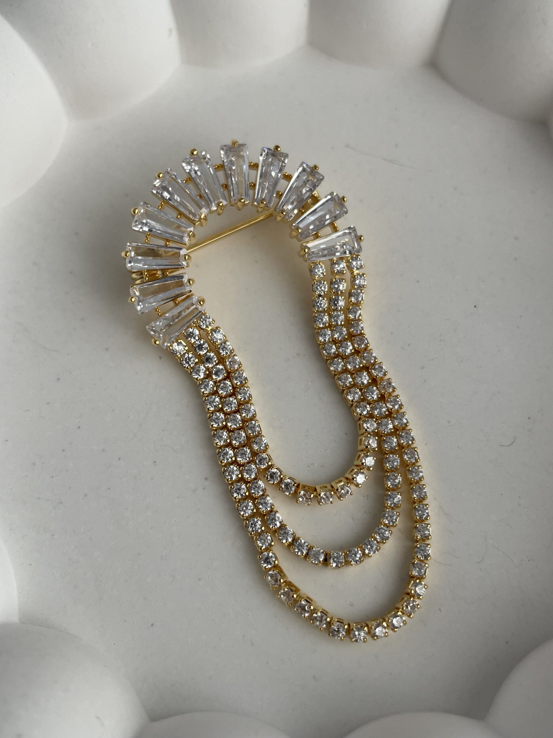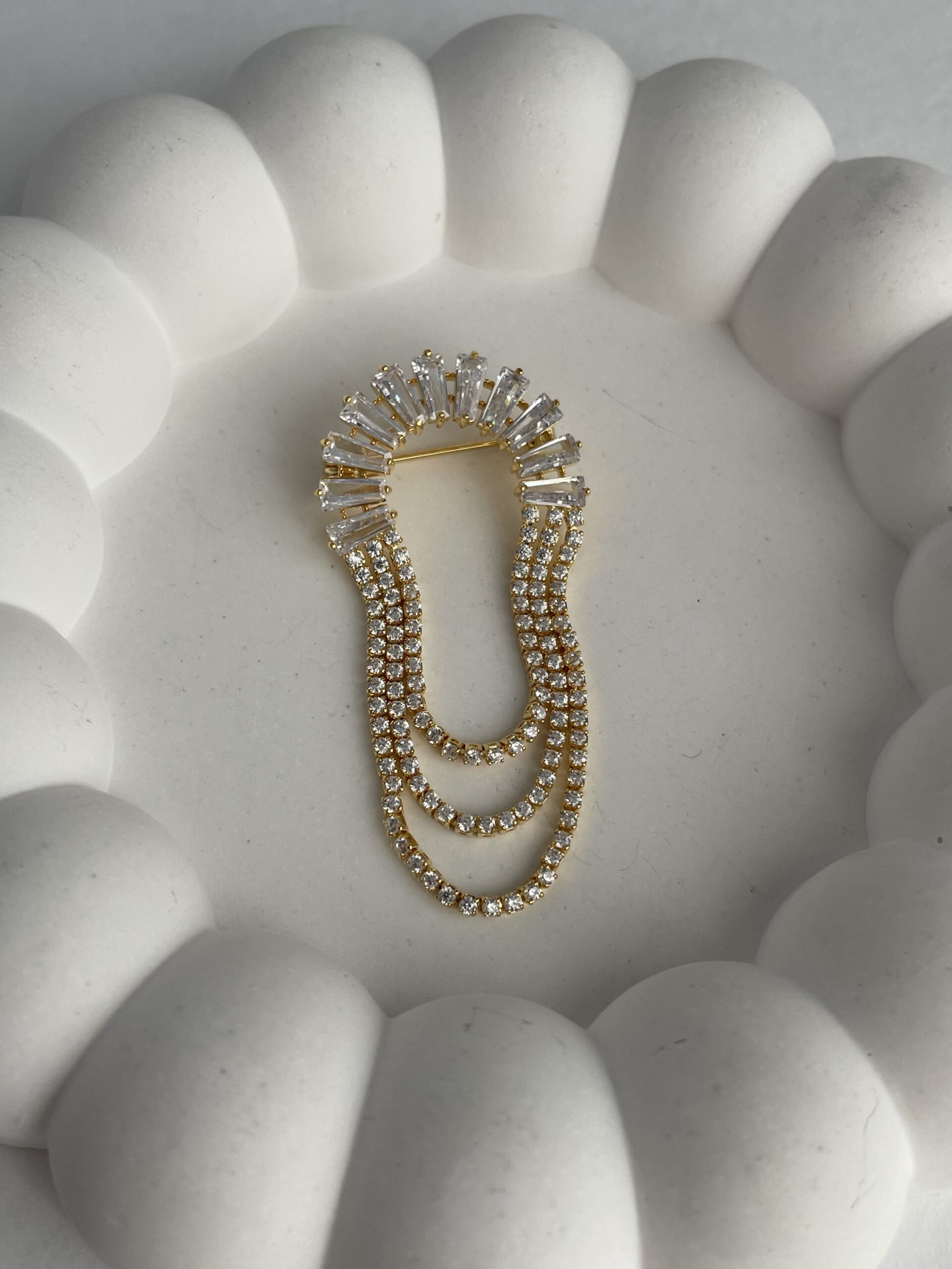 Özel Seri Zirkon Taşlı Geometrik Desen Gold Broş