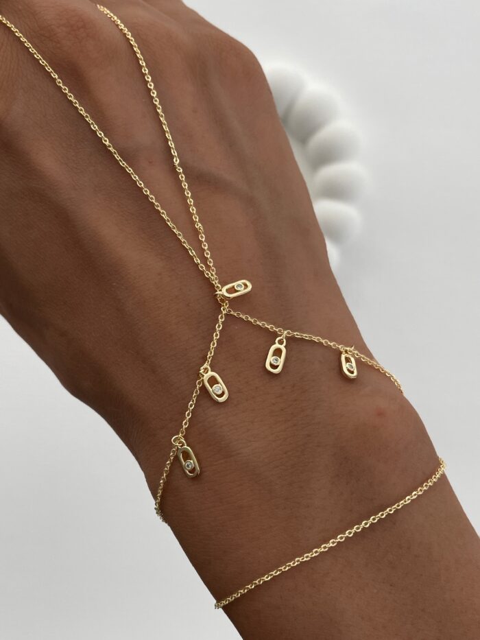 Özel Seri Zirkon Taşlı Geometrik Desen Gold Sallantılı Şahmeran