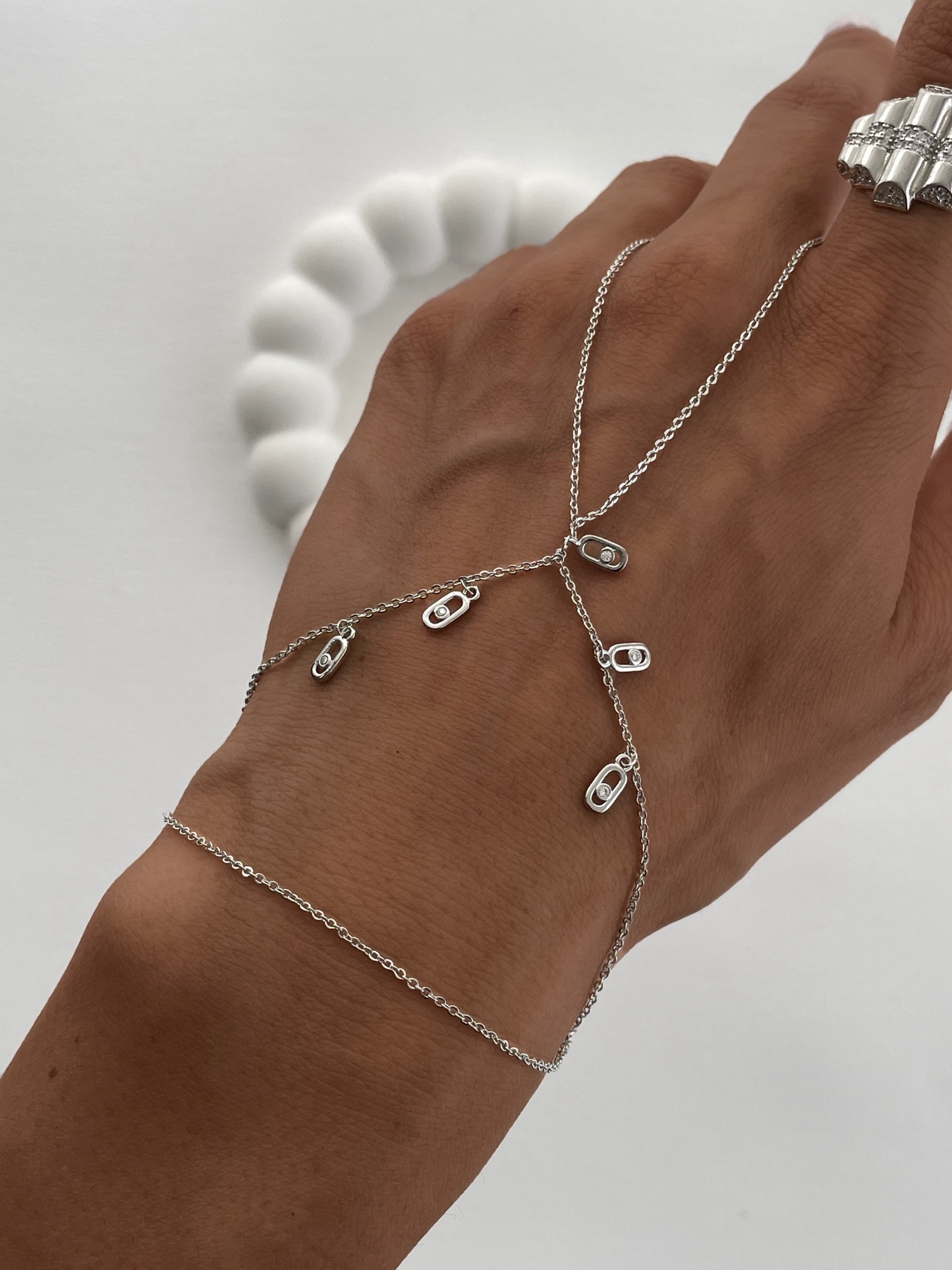 Özel Seri Zirkon Taşlı Geometrik Desen Gümüş Sallantılı Şahmeran