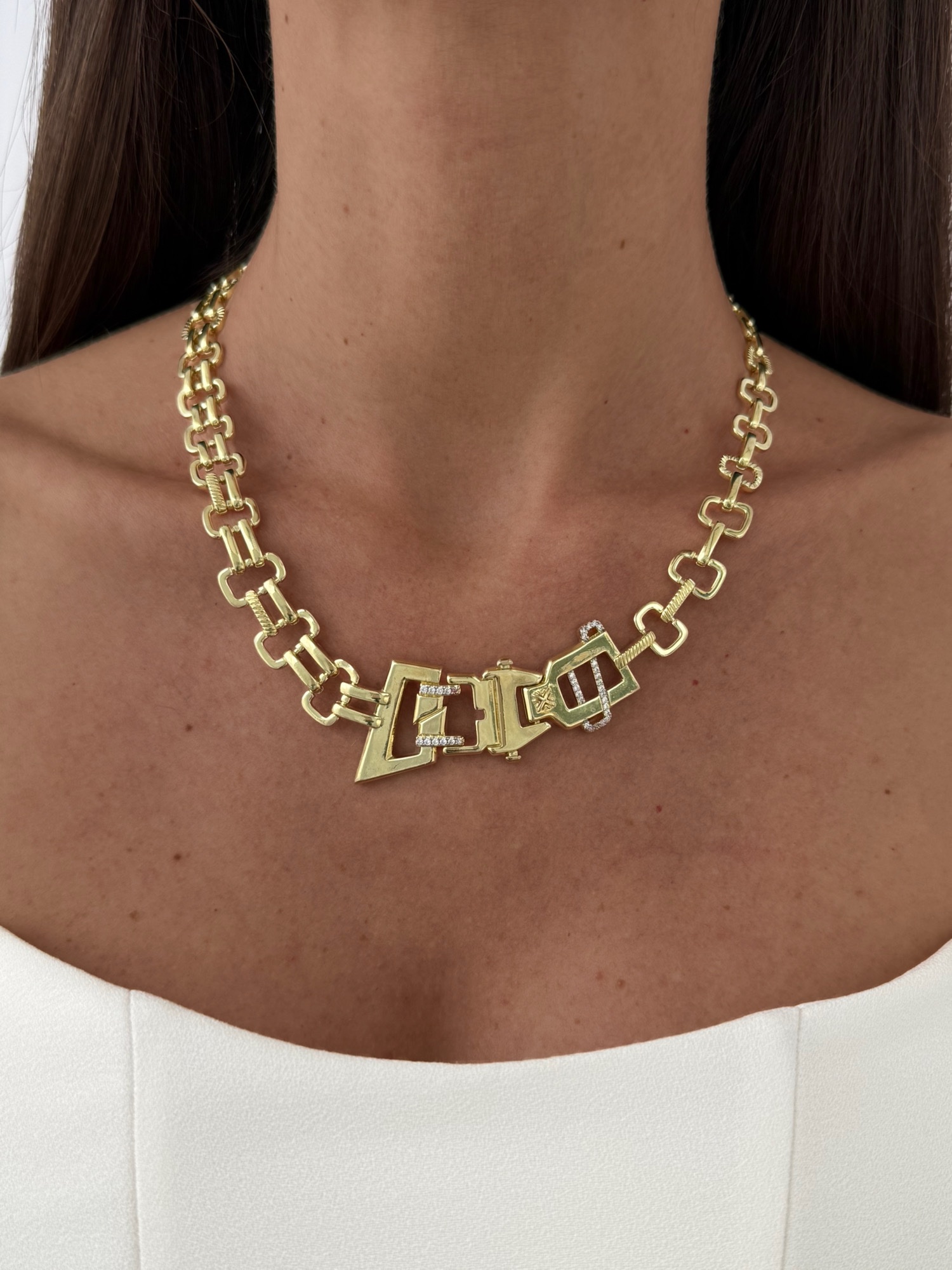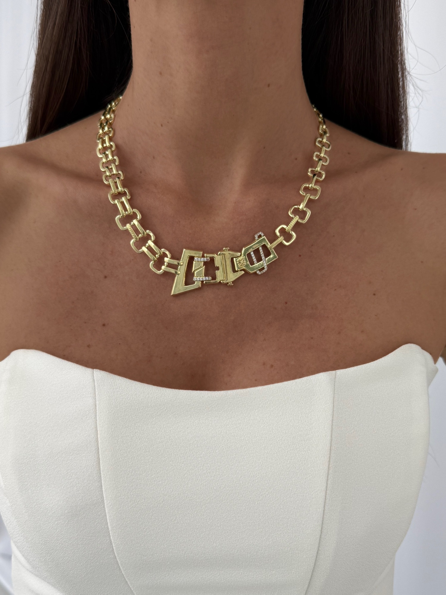 Özel Seri Zirkon Taşlı Geometrik Tasarım Gold Kolye