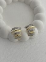 Özel Seri Zirkon Taşlı Geometrik Tasarım Gold Küpe