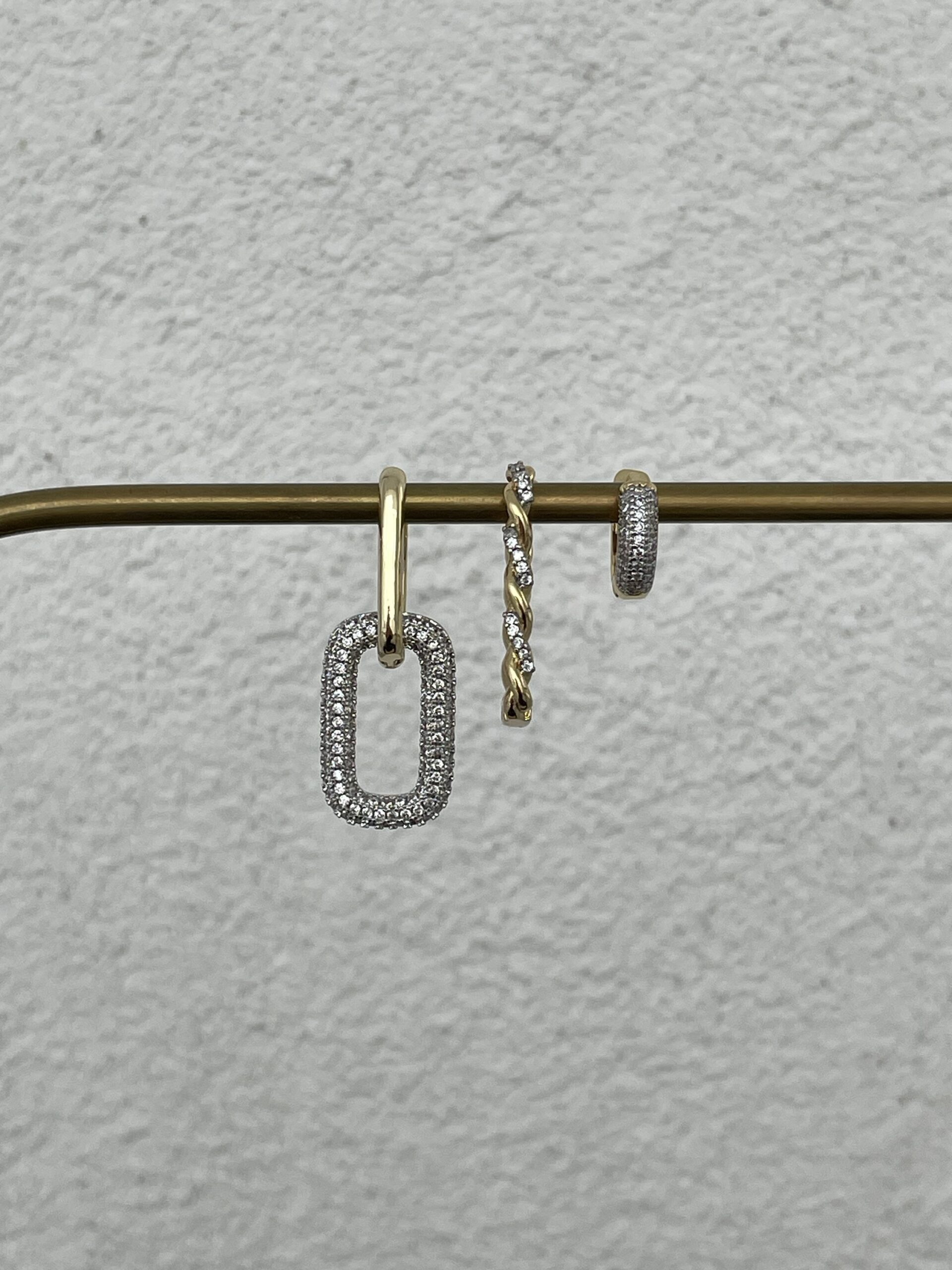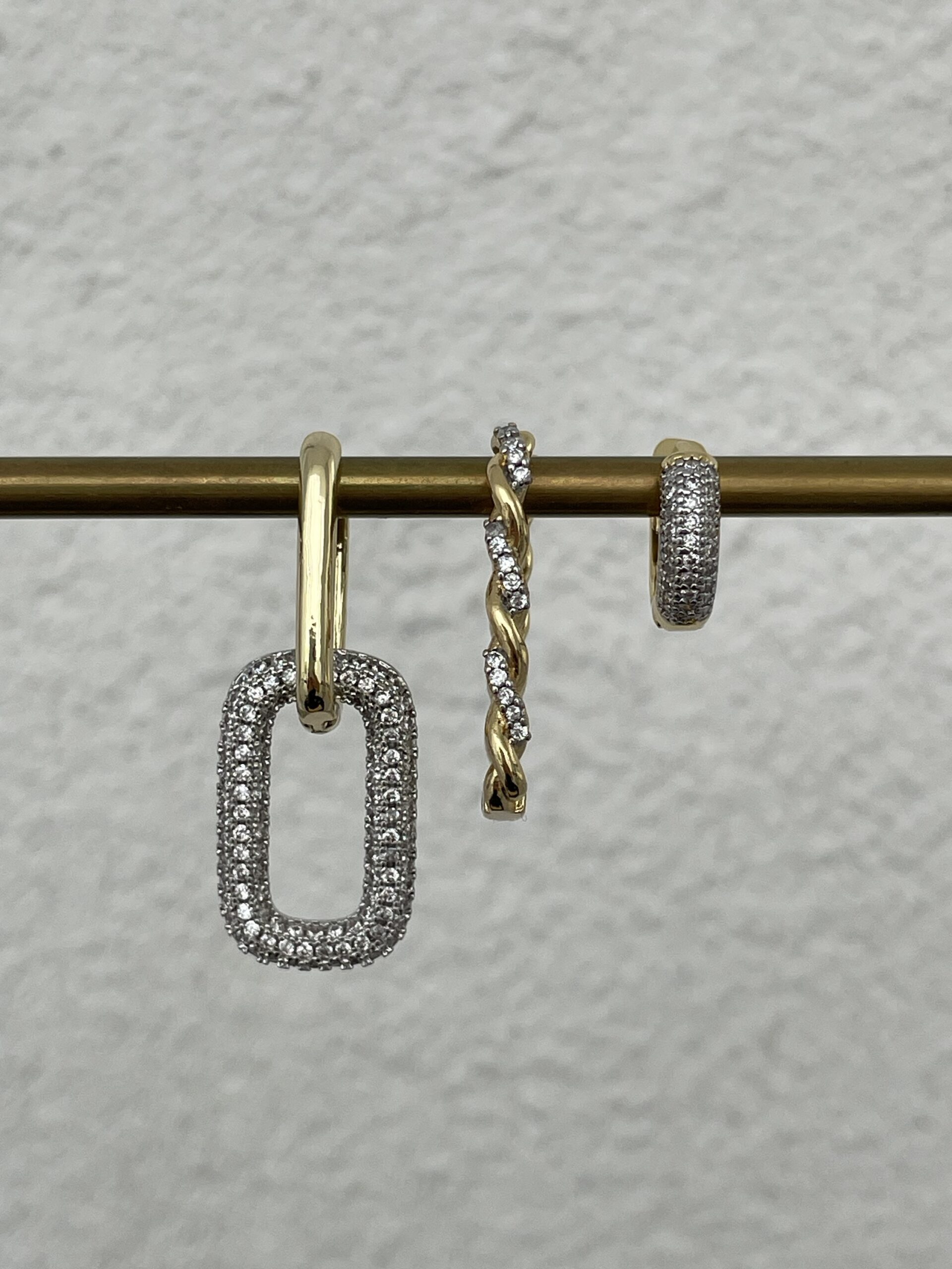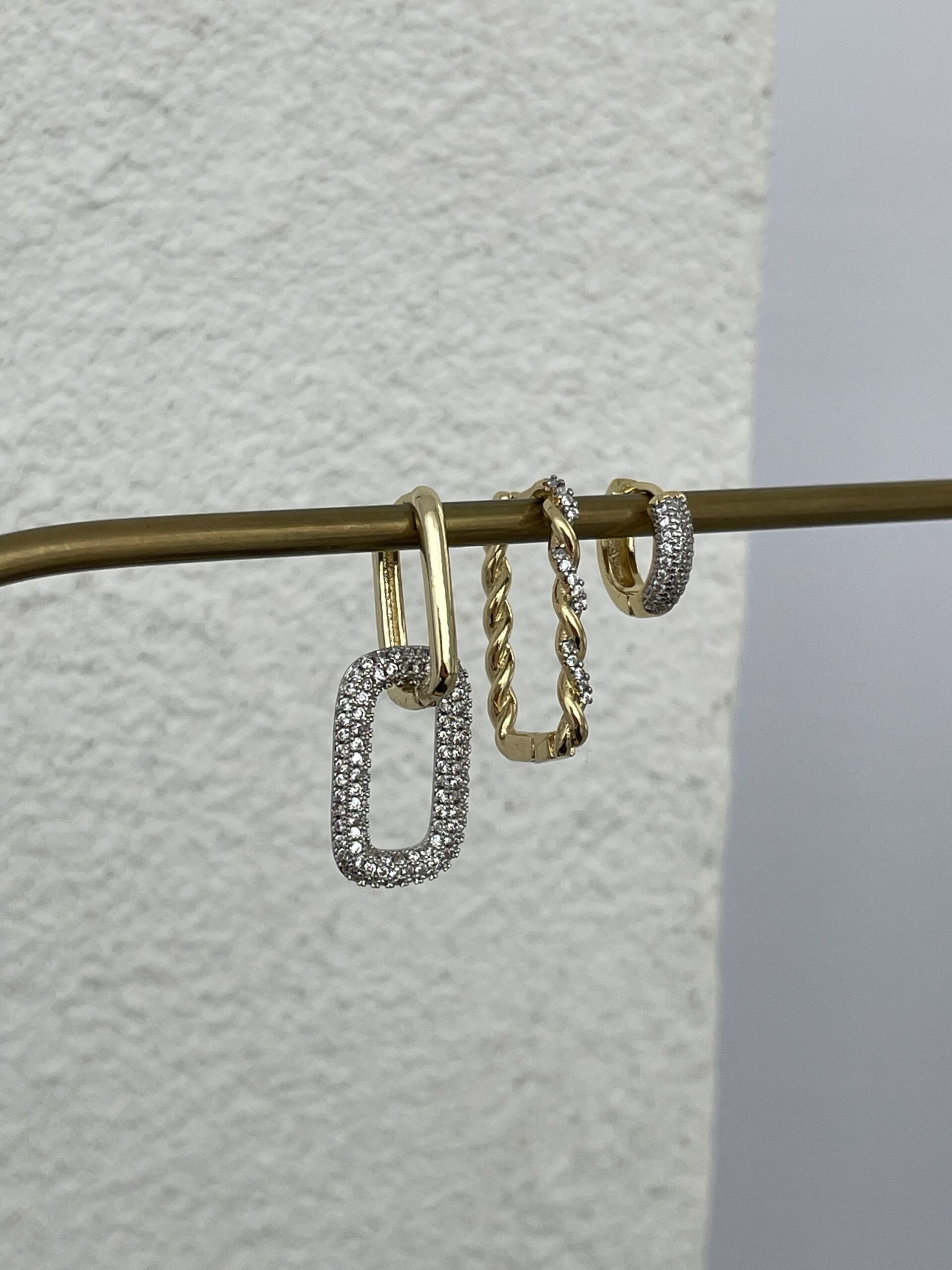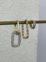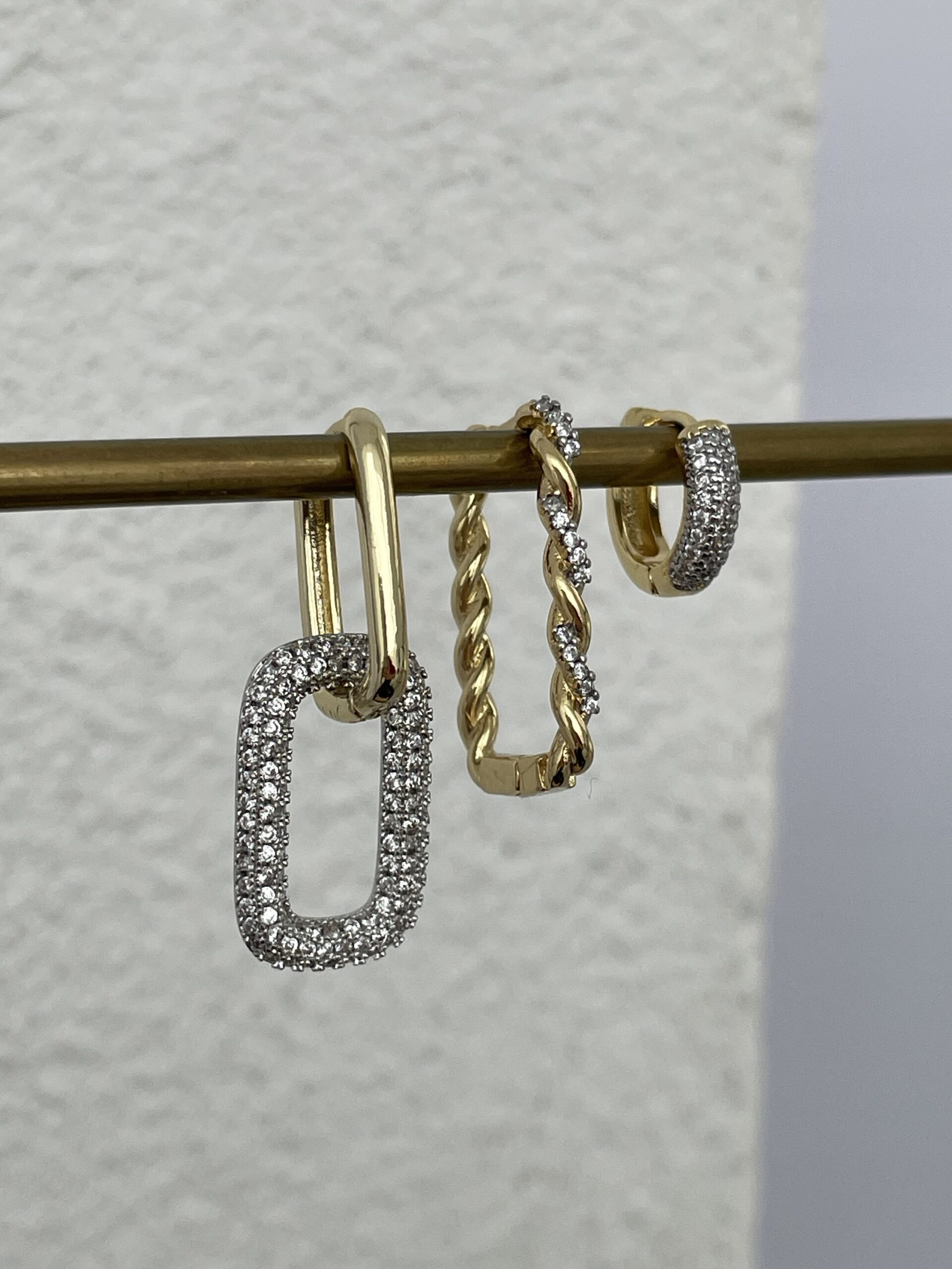 Özel Seri Zirkon Taşlı Geometrik Üçlü Halka Gold Küpe Seti