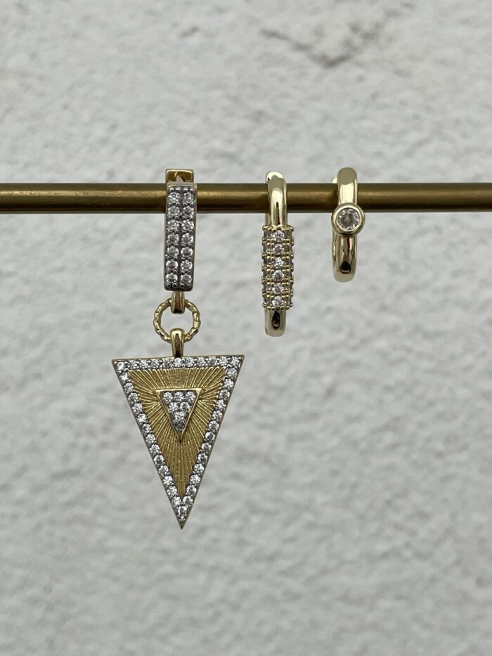 Özel Seri Zirkon Taşlı Geometrik Üçlü Halka Gold Küpe Seti