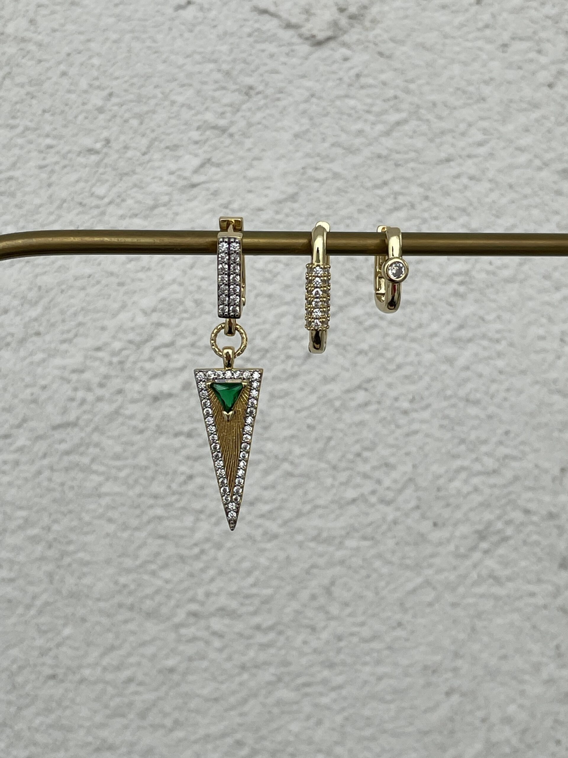 Özel Seri Zirkon Taşlı Geometrik Üçlü Halka Gold Küpe Seti