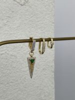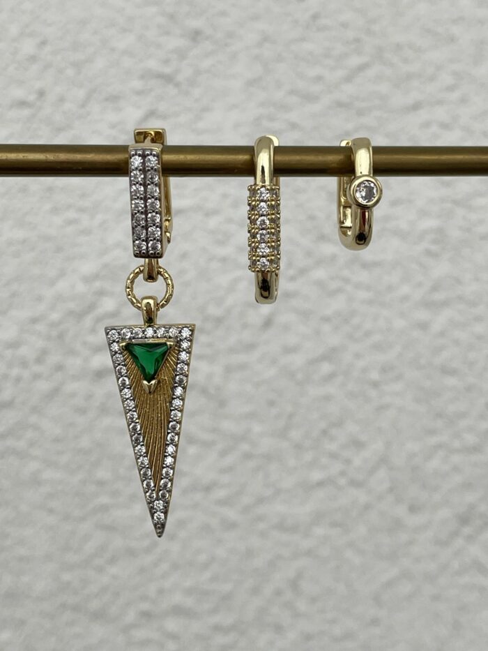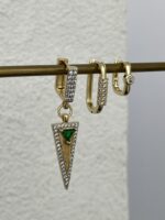 Özel Seri Zirkon Taşlı Geometrik Üçlü Halka Gold Küpe Seti