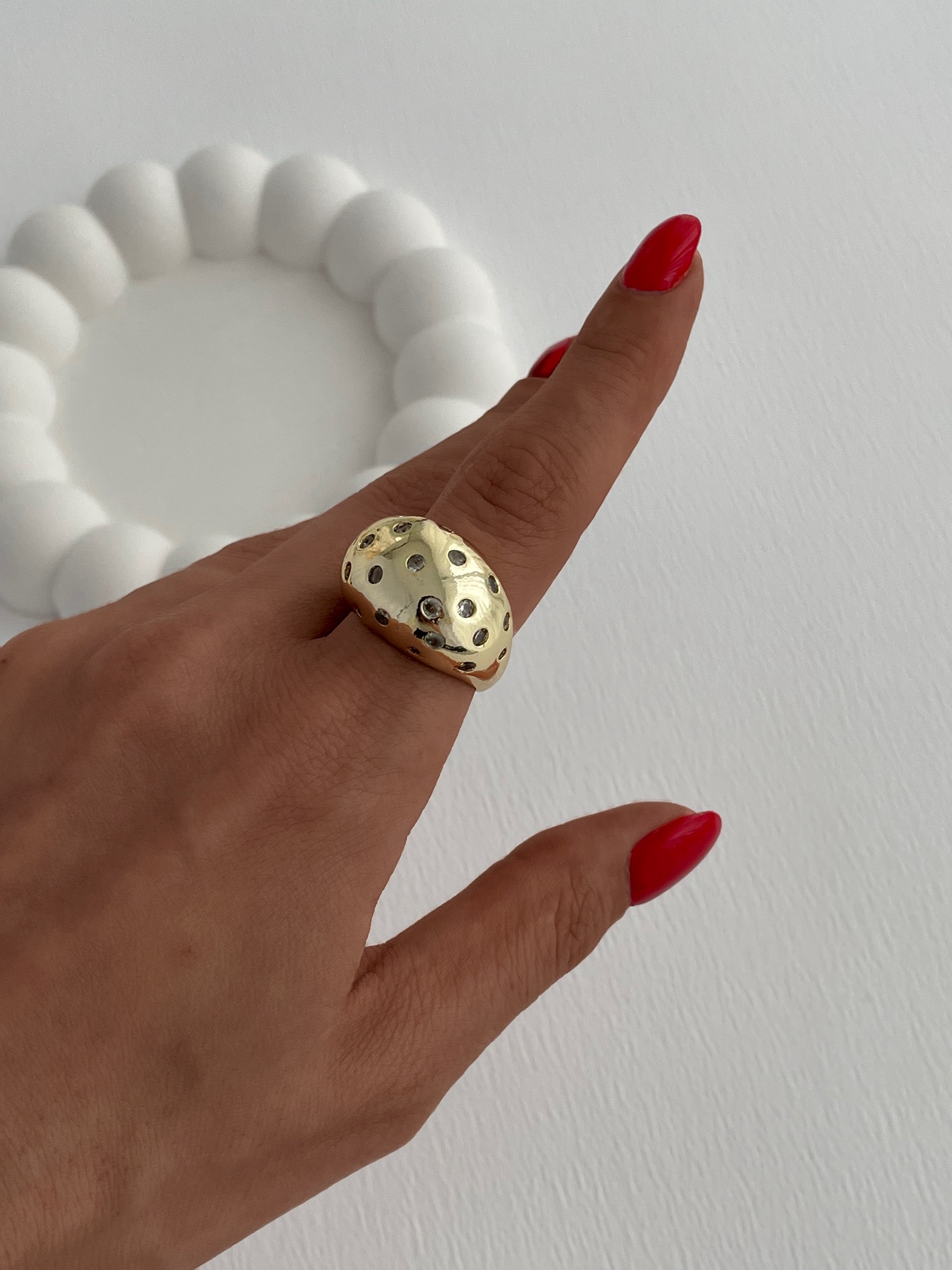 Özel Seri Zirkon Taşlı Gold Ayarlanabilir Bubble Yüzük