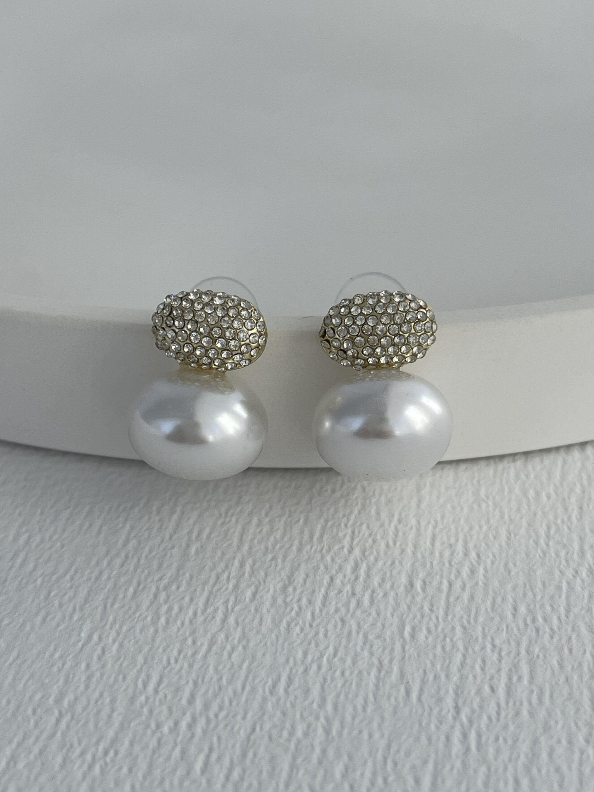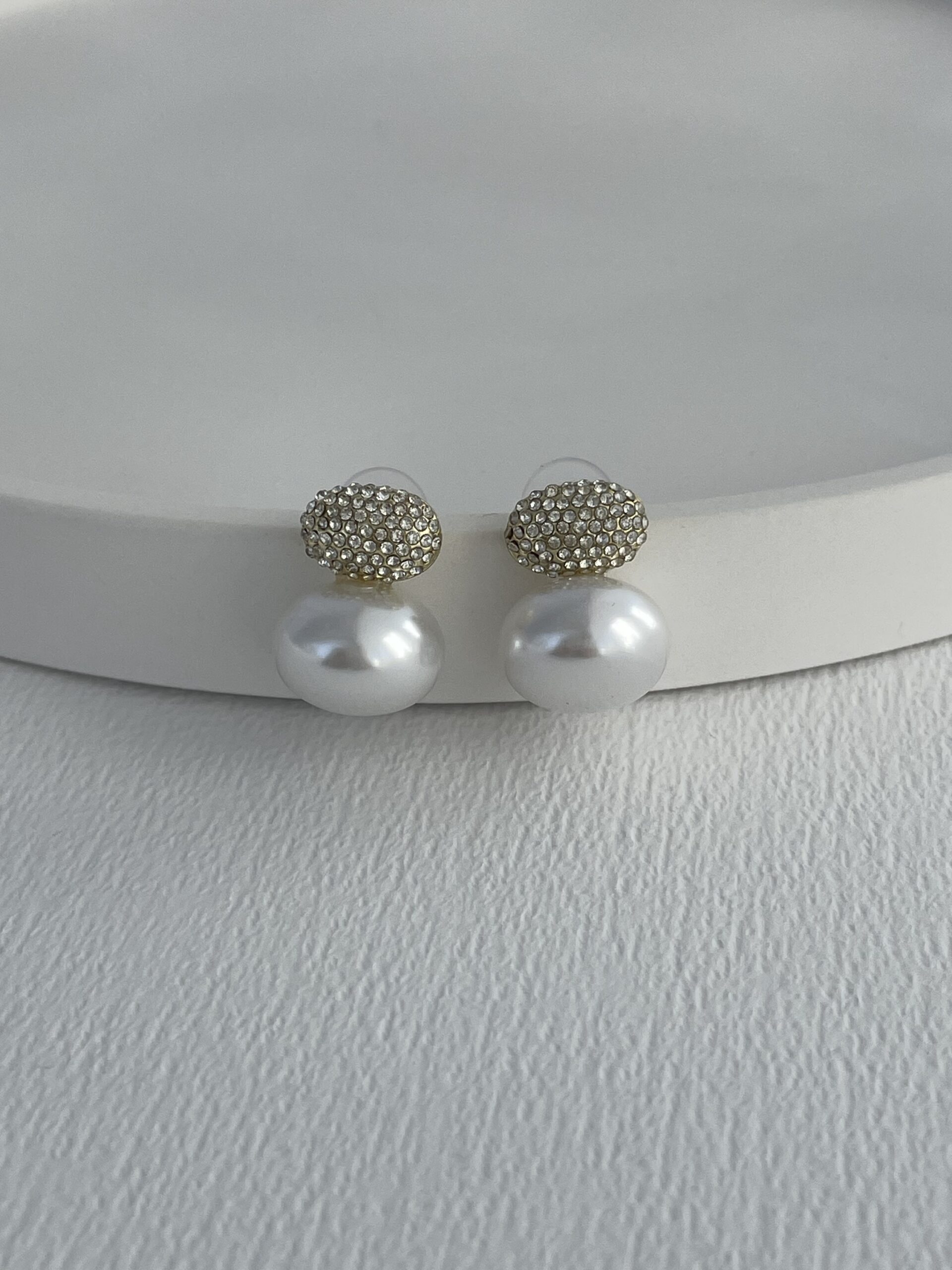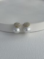 Özel Seri Zirkon Taşlı Gold Detay İnci Top Küpe