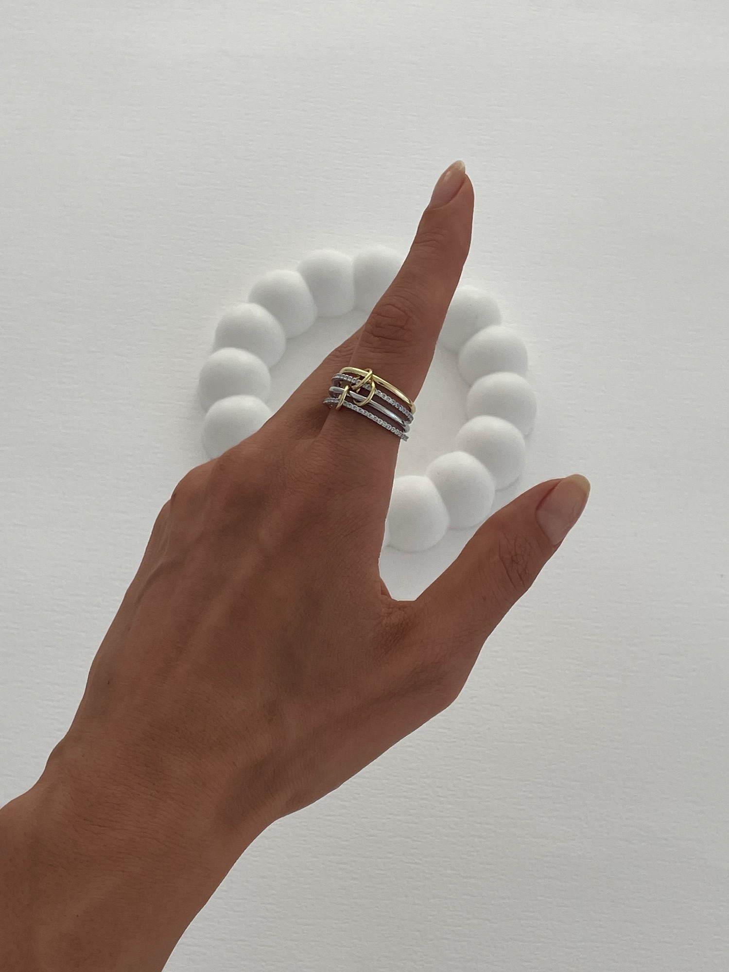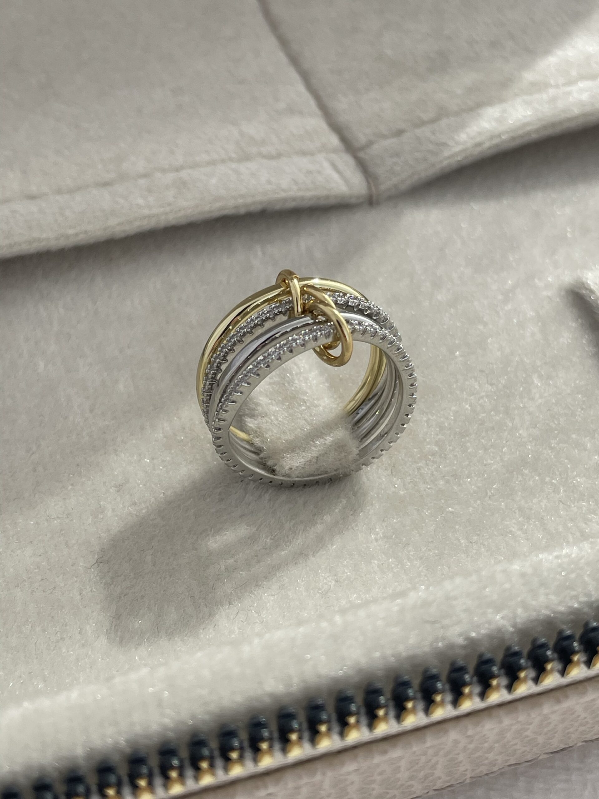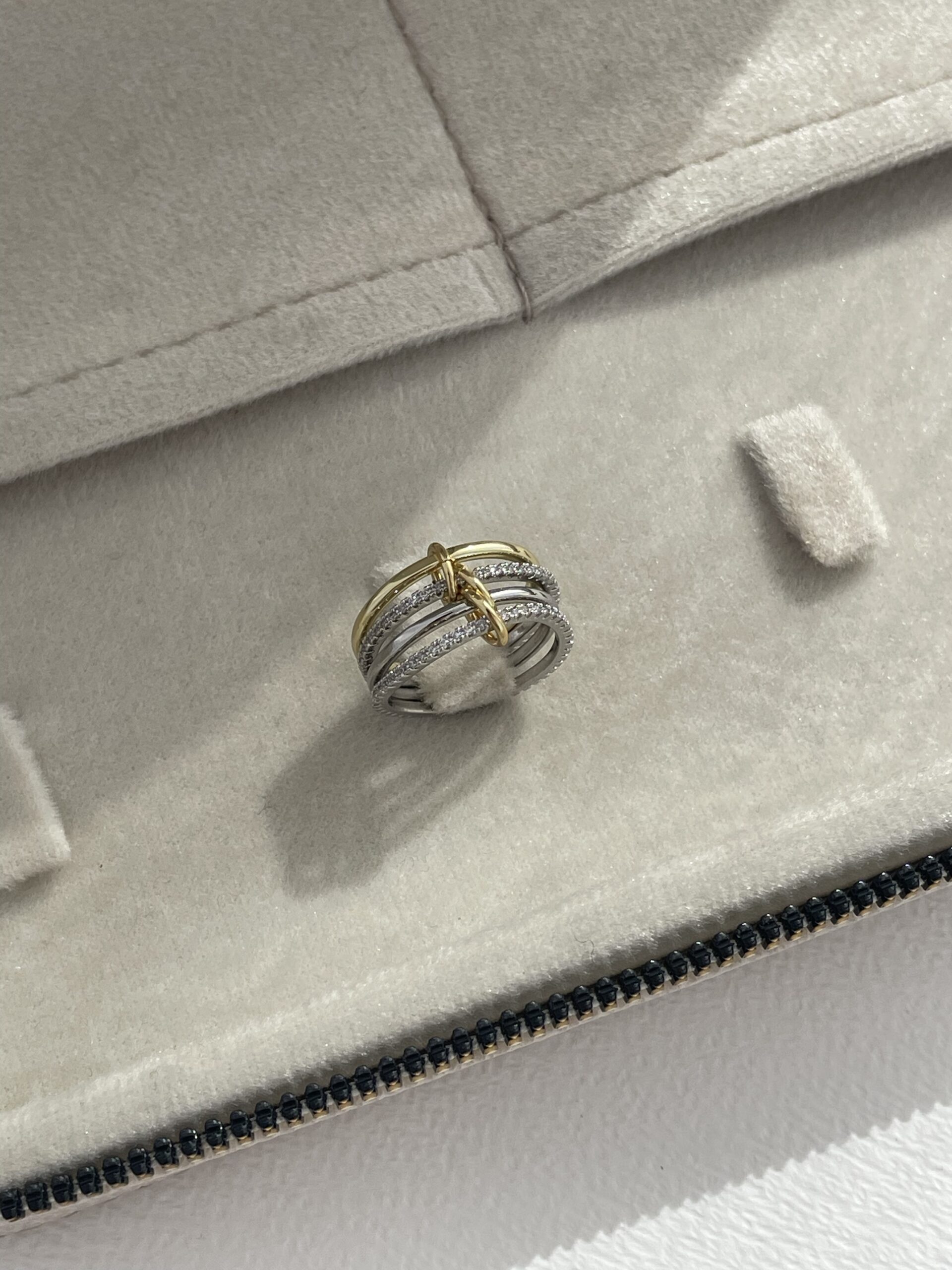 Özel Seri Zirkon Taşlı Gold & Gümüş Dörtlü Halka Yüzük