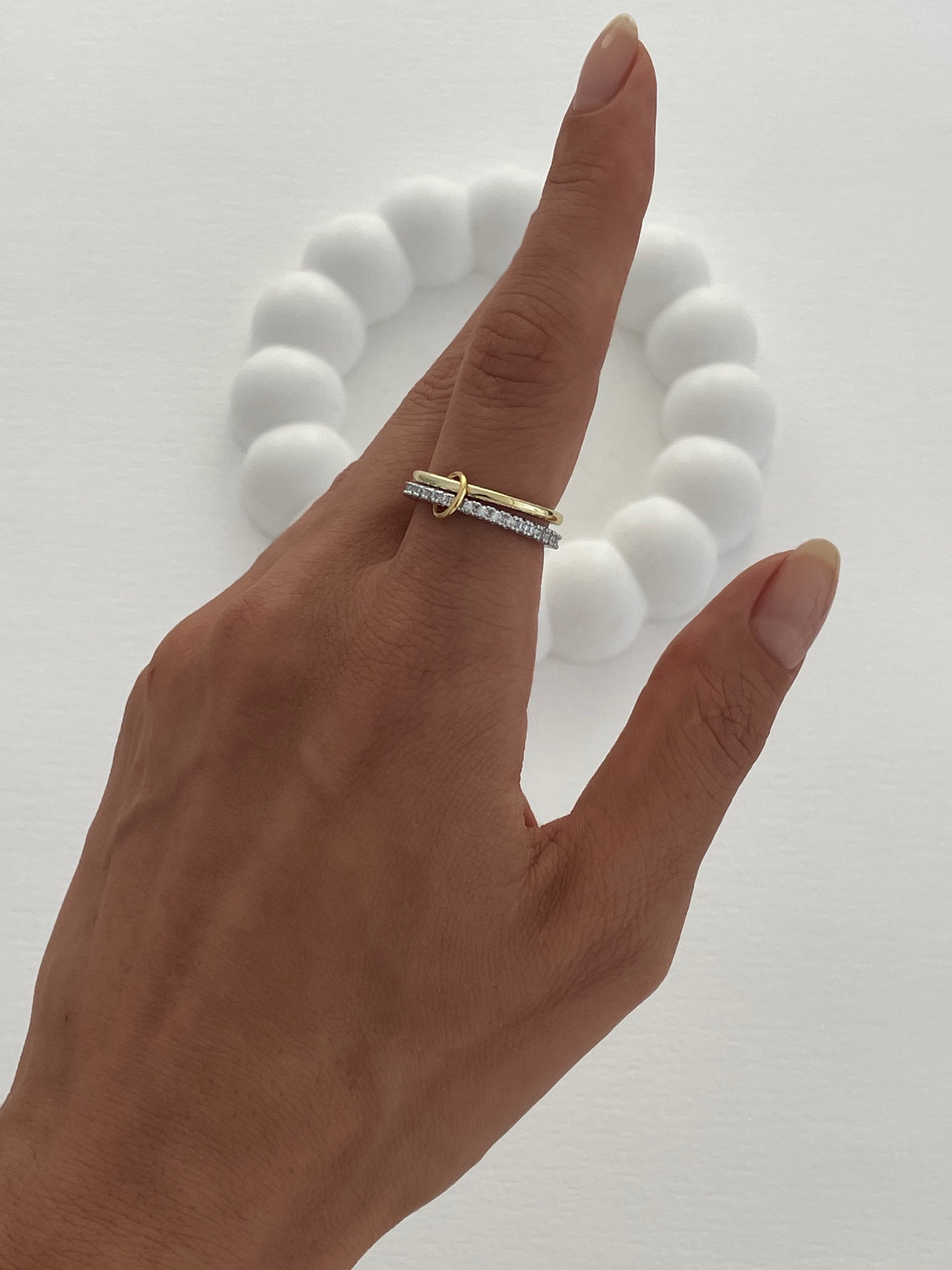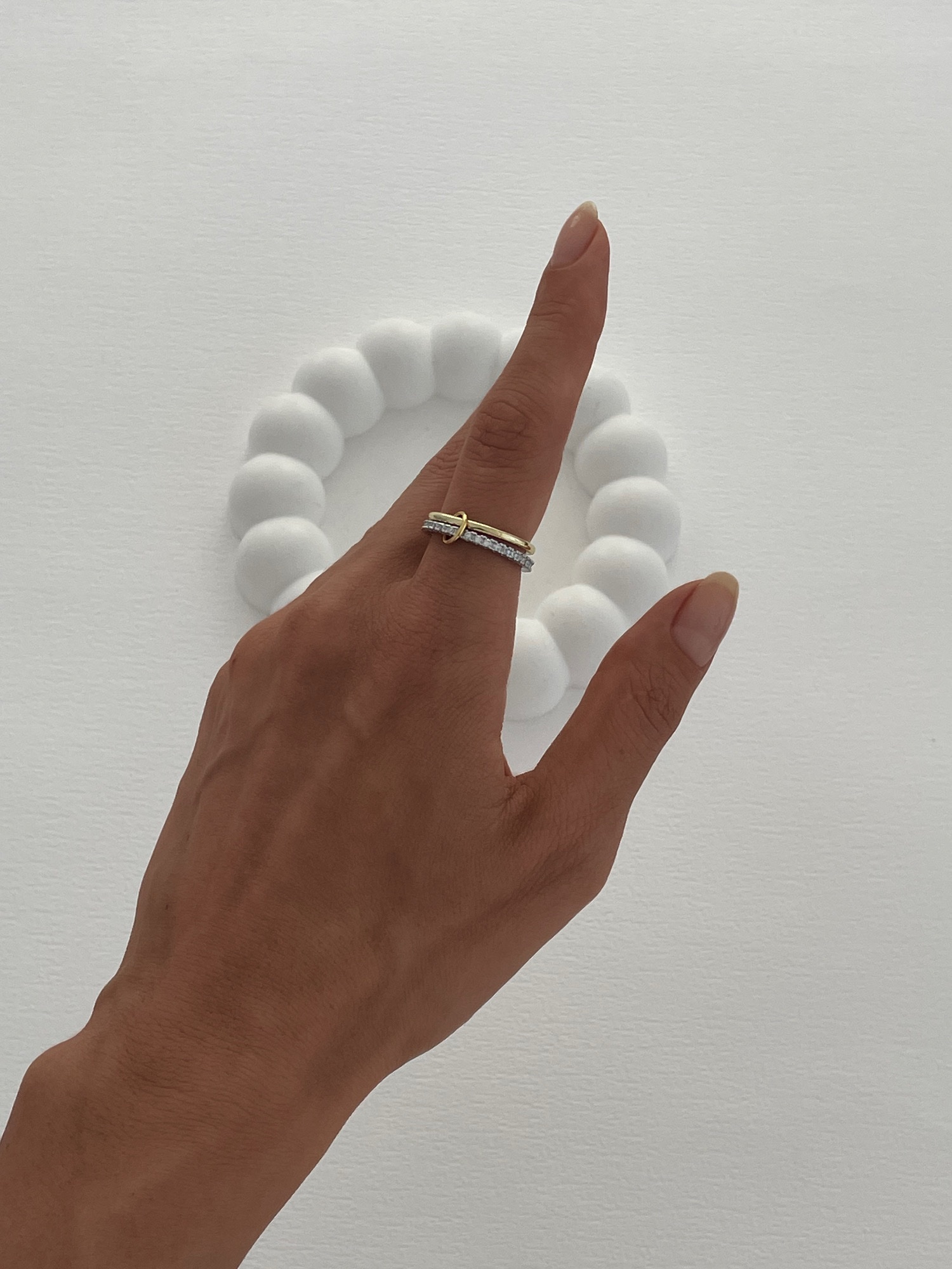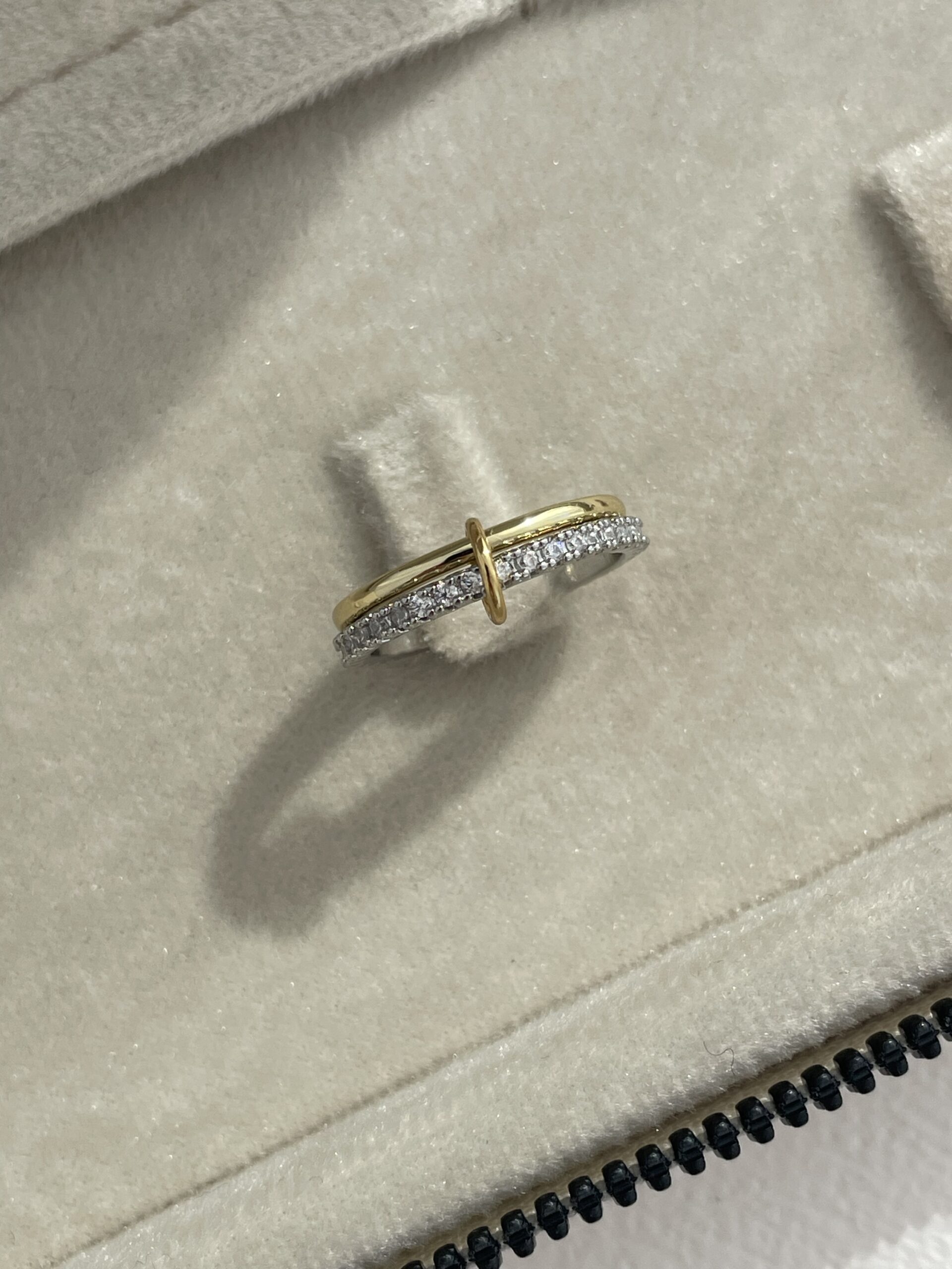 Özel Seri Zirkon Taşlı Gold & Gümüş İkili Halka Yüzük