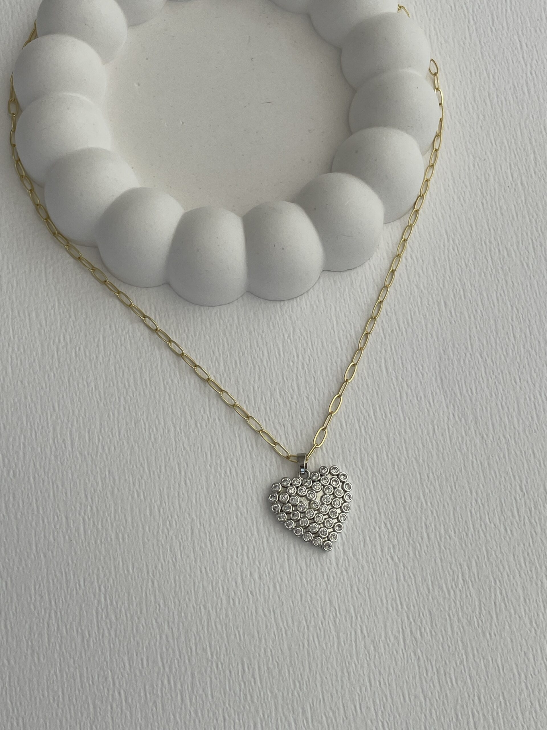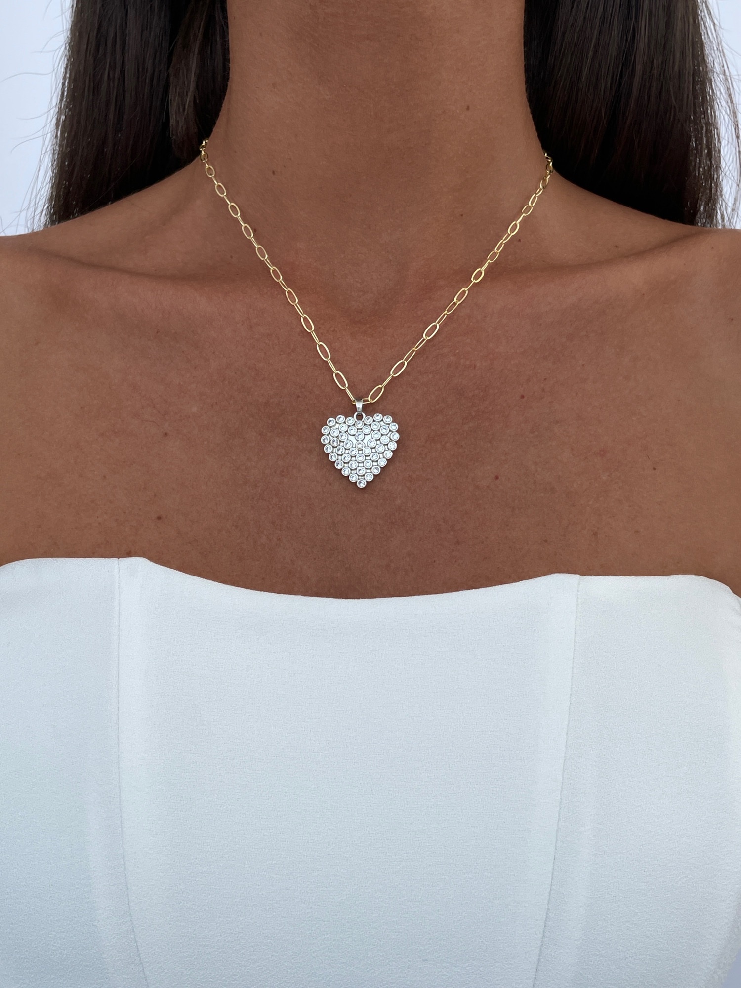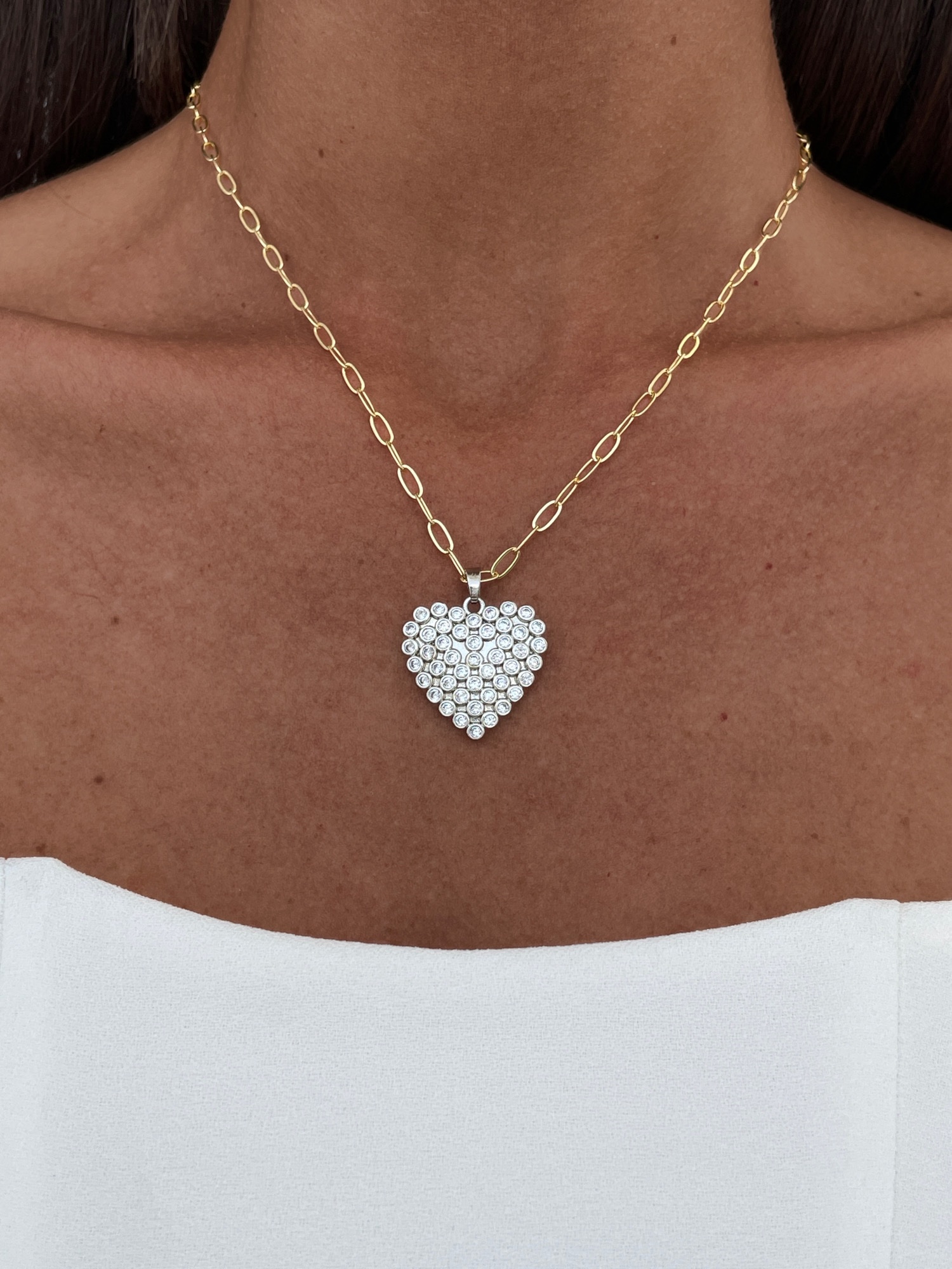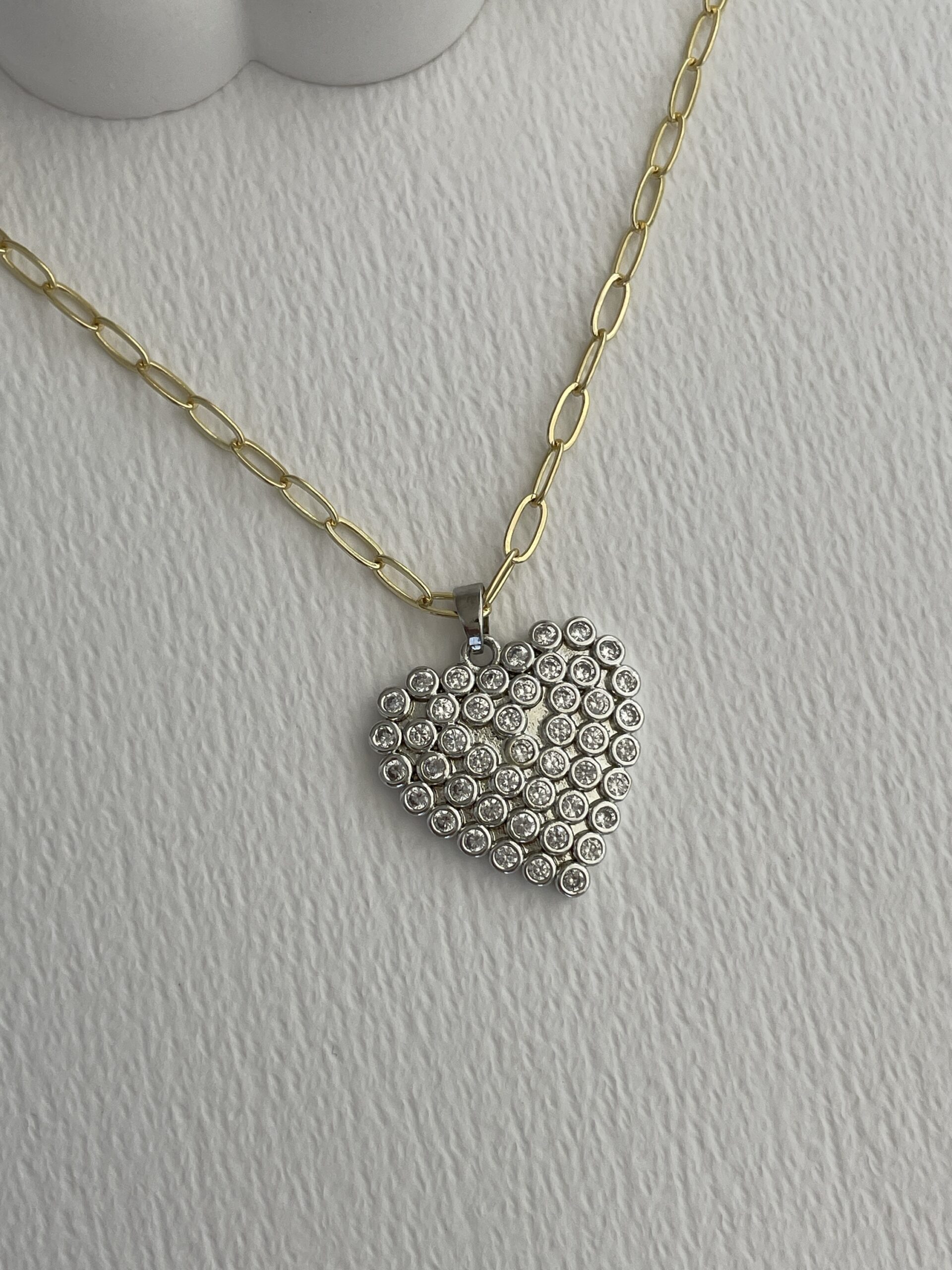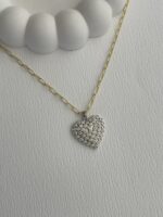 Özel Seri Zirkon Taşlı Gold Gümüş Kalp Kolye
