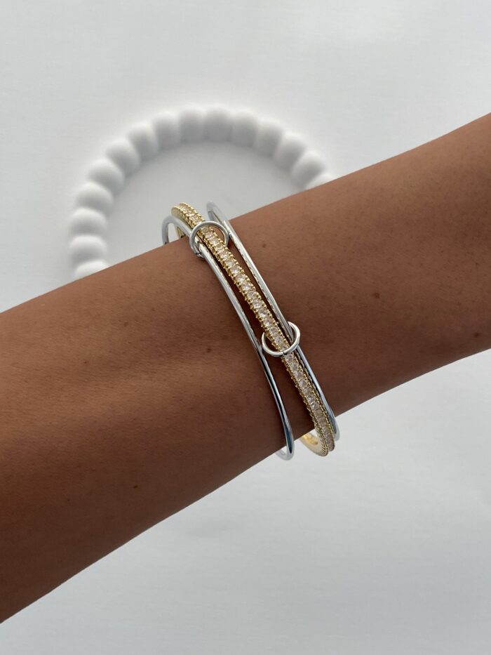 Özel Seri Zirkon Taşlı Gold & Gümüş Üçlü Halka Bileklik
