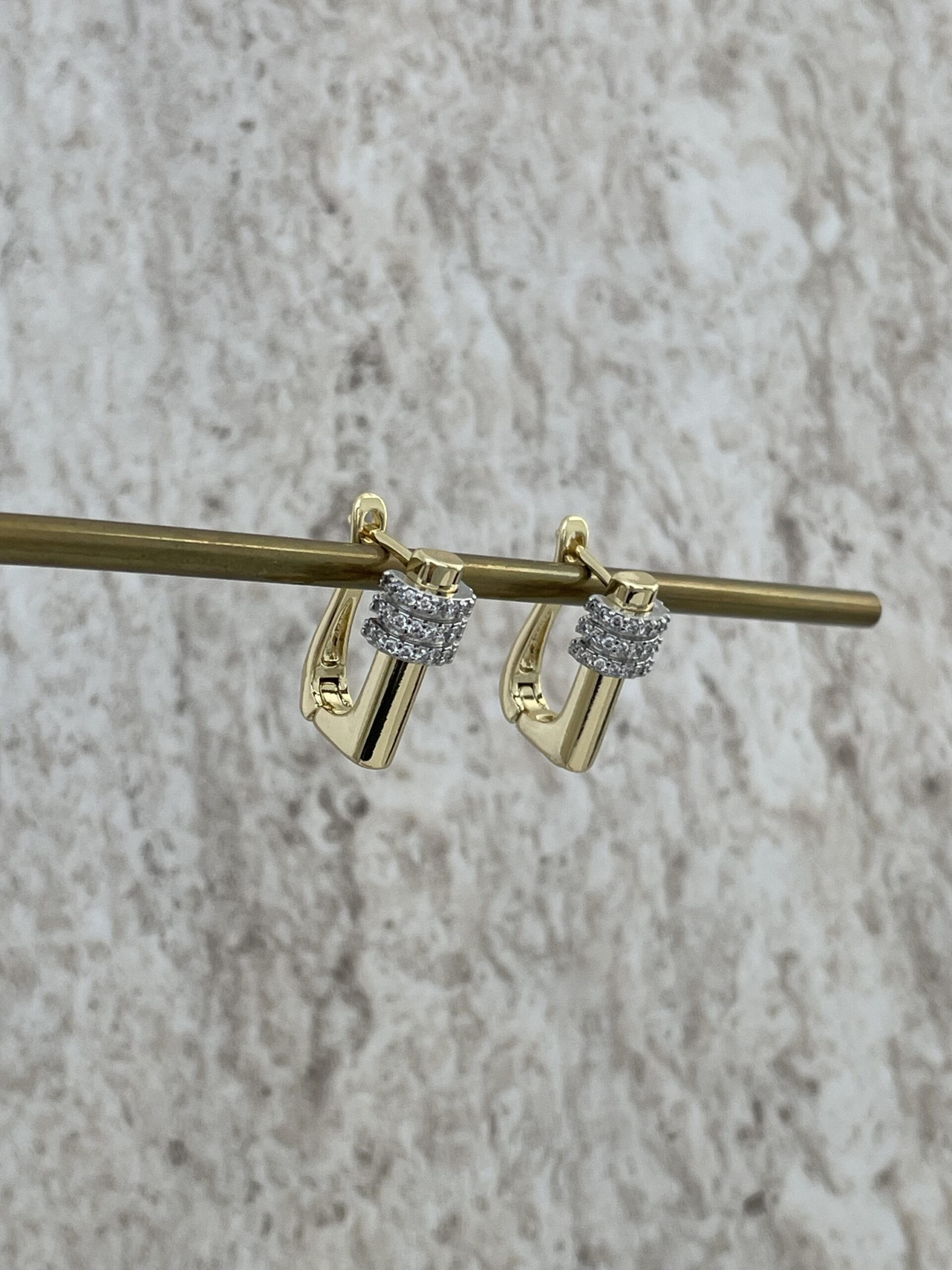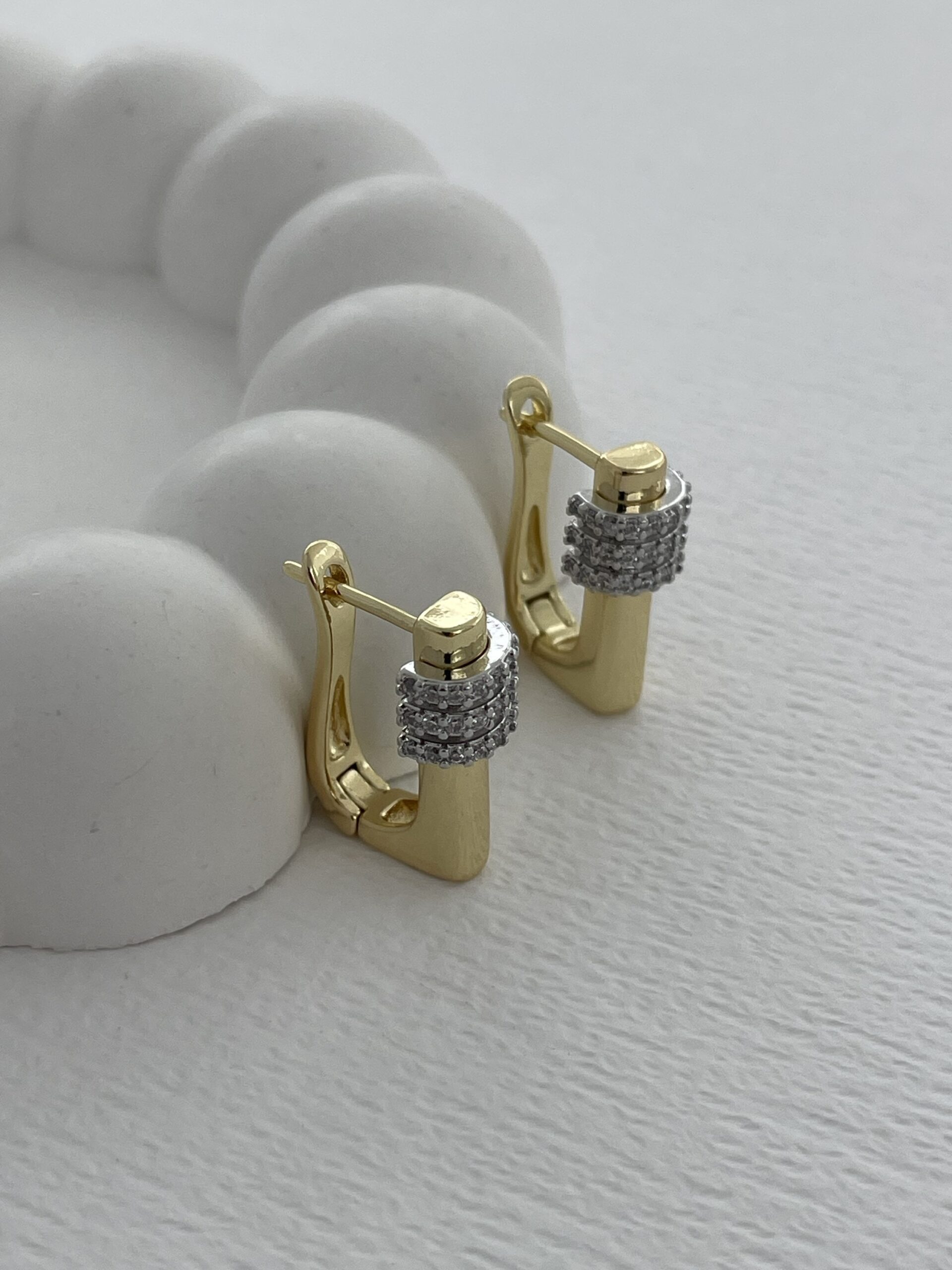 Özel Seri Zirkon Taşlı Gold Kare Halka Küpe