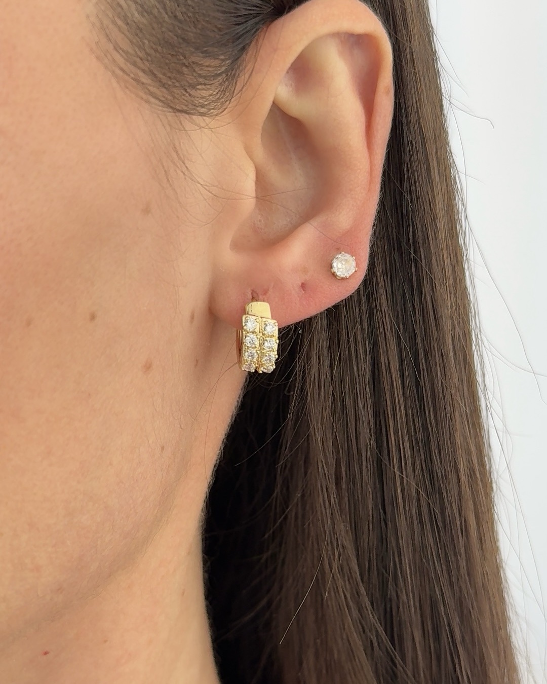 Özel Seri Zirkon Taşlı Gold Küçük Halka Küpe