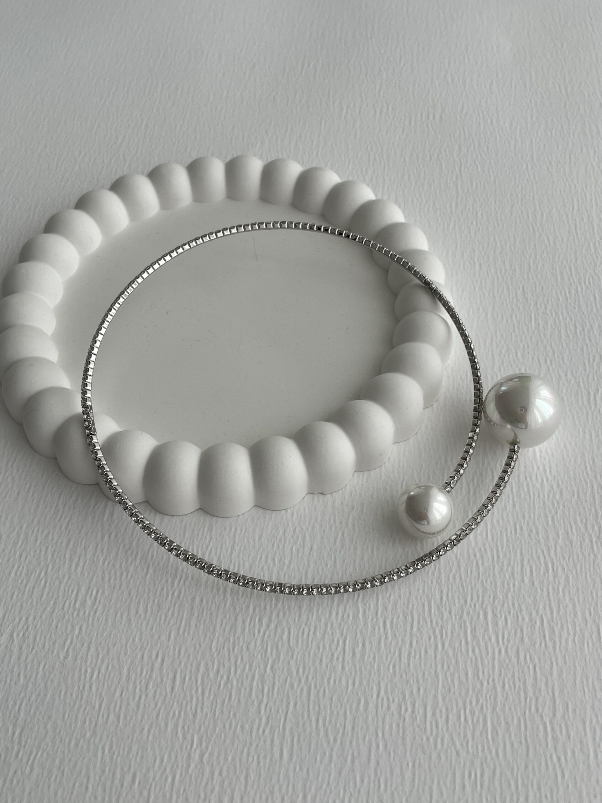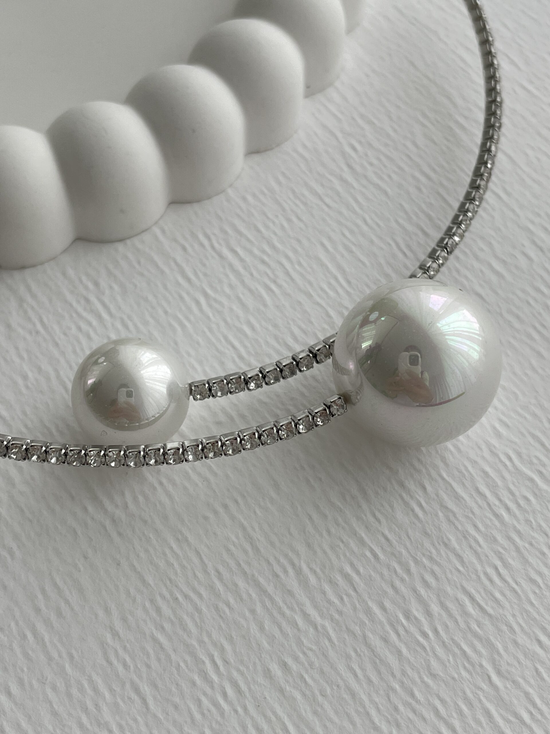 Özel Seri Zirkon Taşlı Gümüş İnci Choker Kolye