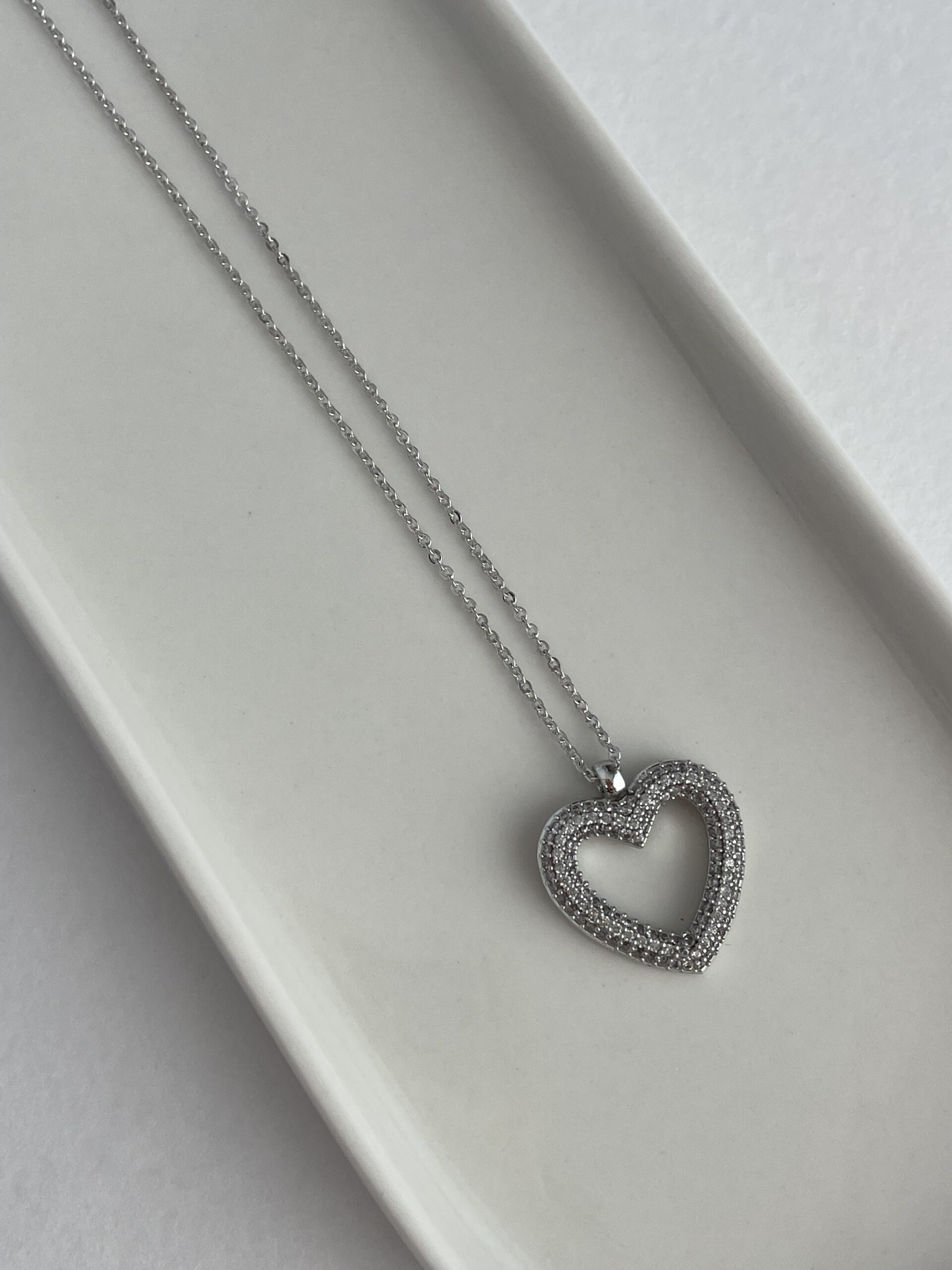 Özel Seri Zirkon Taşlı Gümüş Kalp Kolye