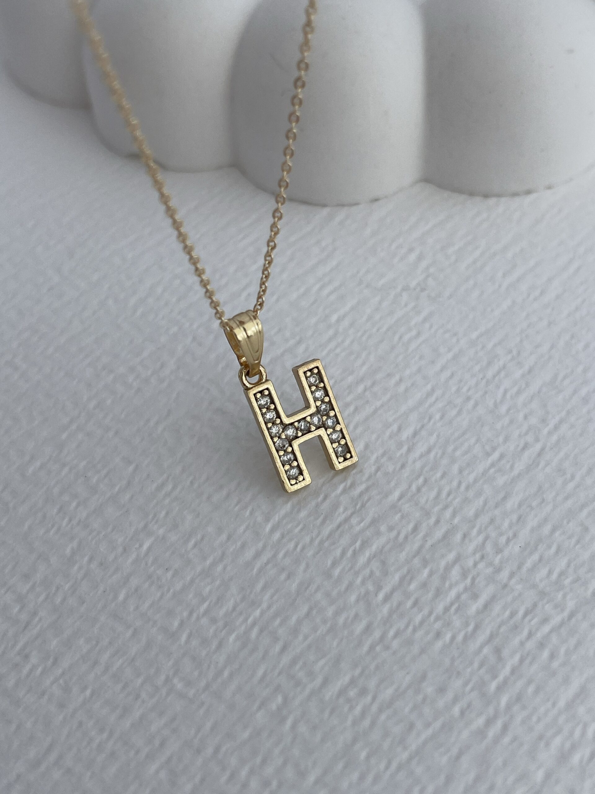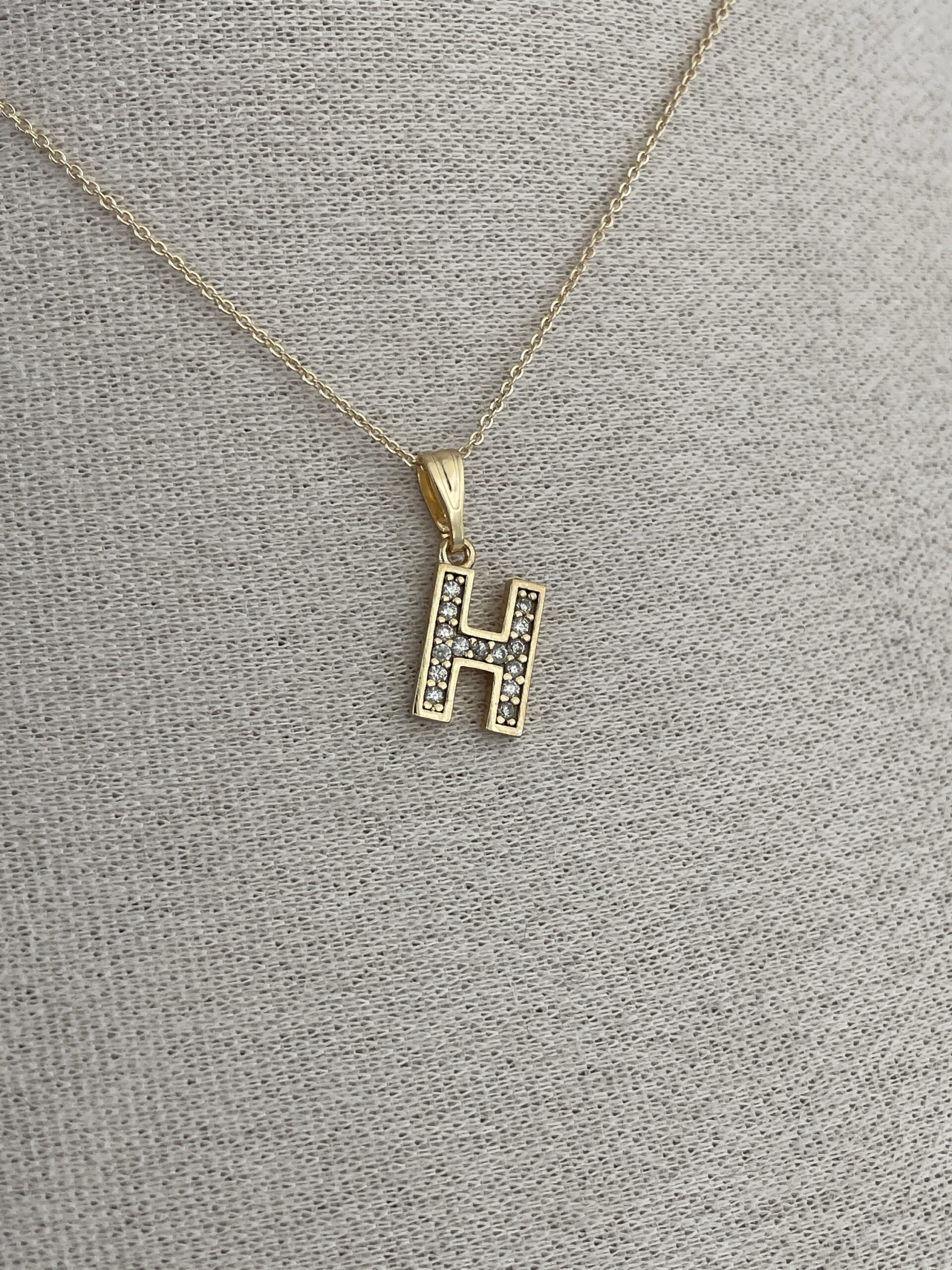 Özel Seri Zirkon Taşlı H Harf Minimal Gold Kolye