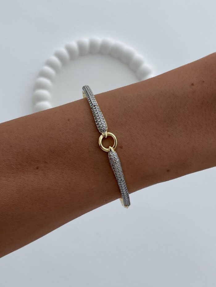 Özel Seri Zirkon Taşlı Halka Tasarım Gold Kelepçe Bileklik