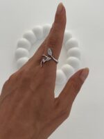 Özel Seri Zirkon Taşlı İkili Damla Tasarım Gümüş Ayarlanabilir Yüzük