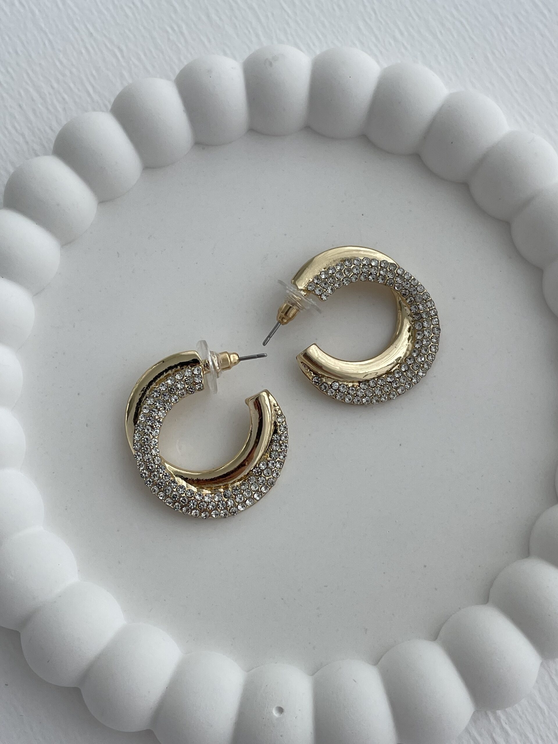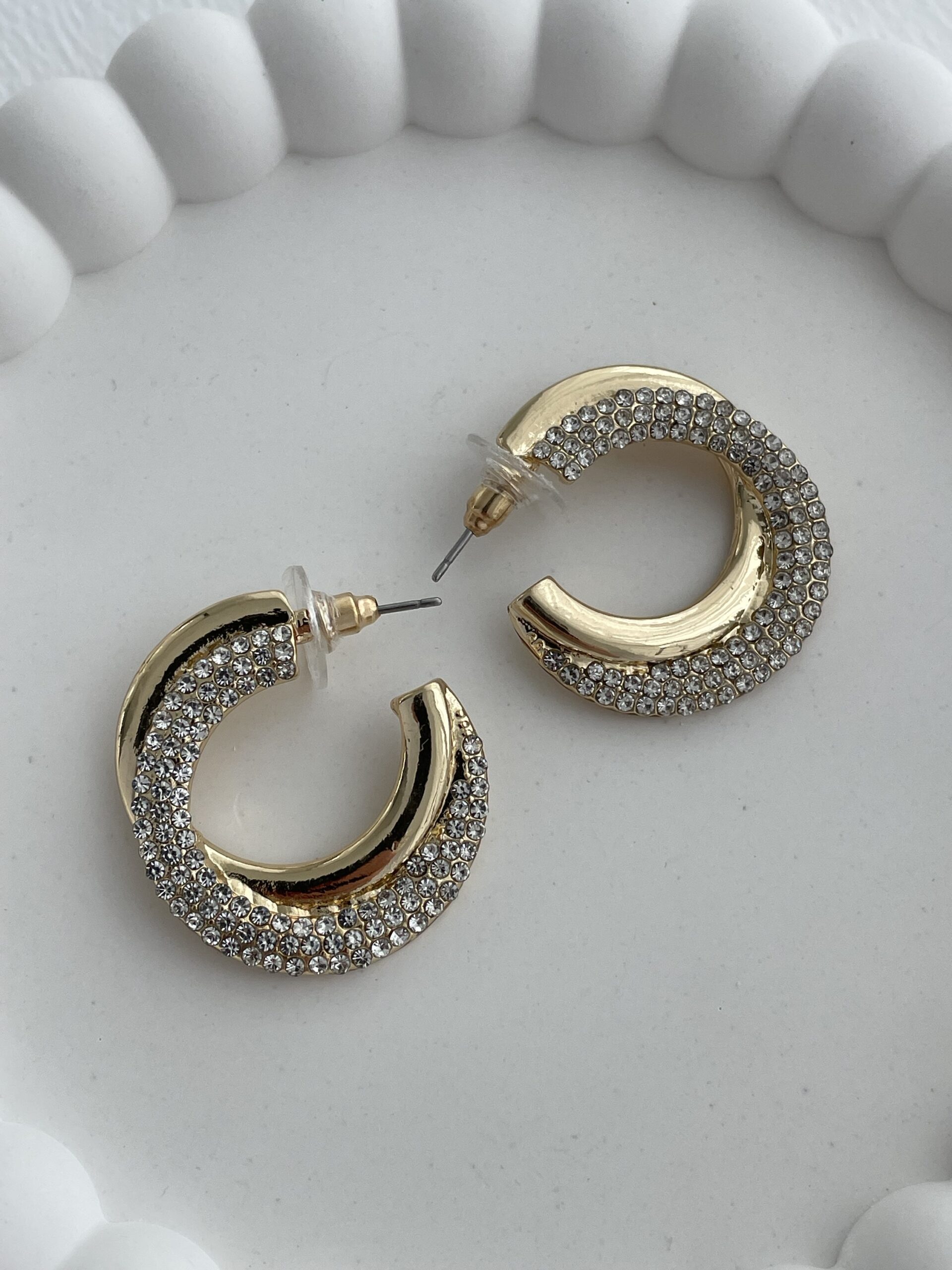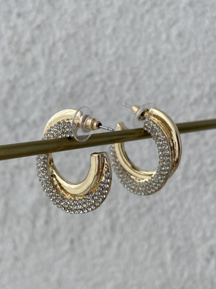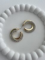 Özel Seri Zirkon Taşlı İkili Gold Halka Küpe