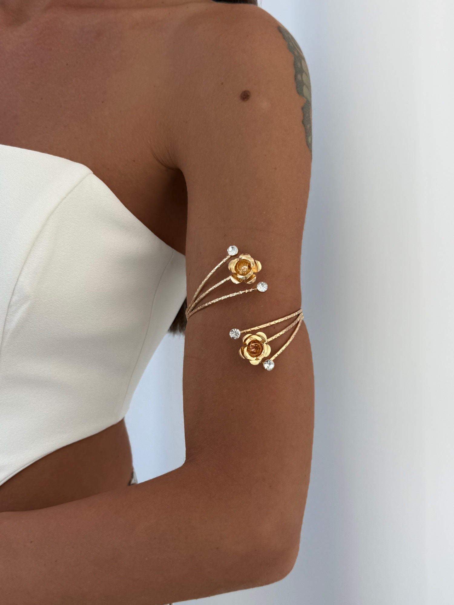 Özel Seri Zirkon Taşlı İkili Gül Tasarım Gold Pazu Bilekliği