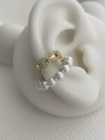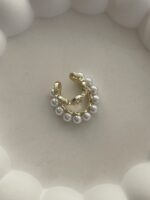 Özel Seri Zirkon Taşlı İkili İnci Gold Earcuff