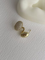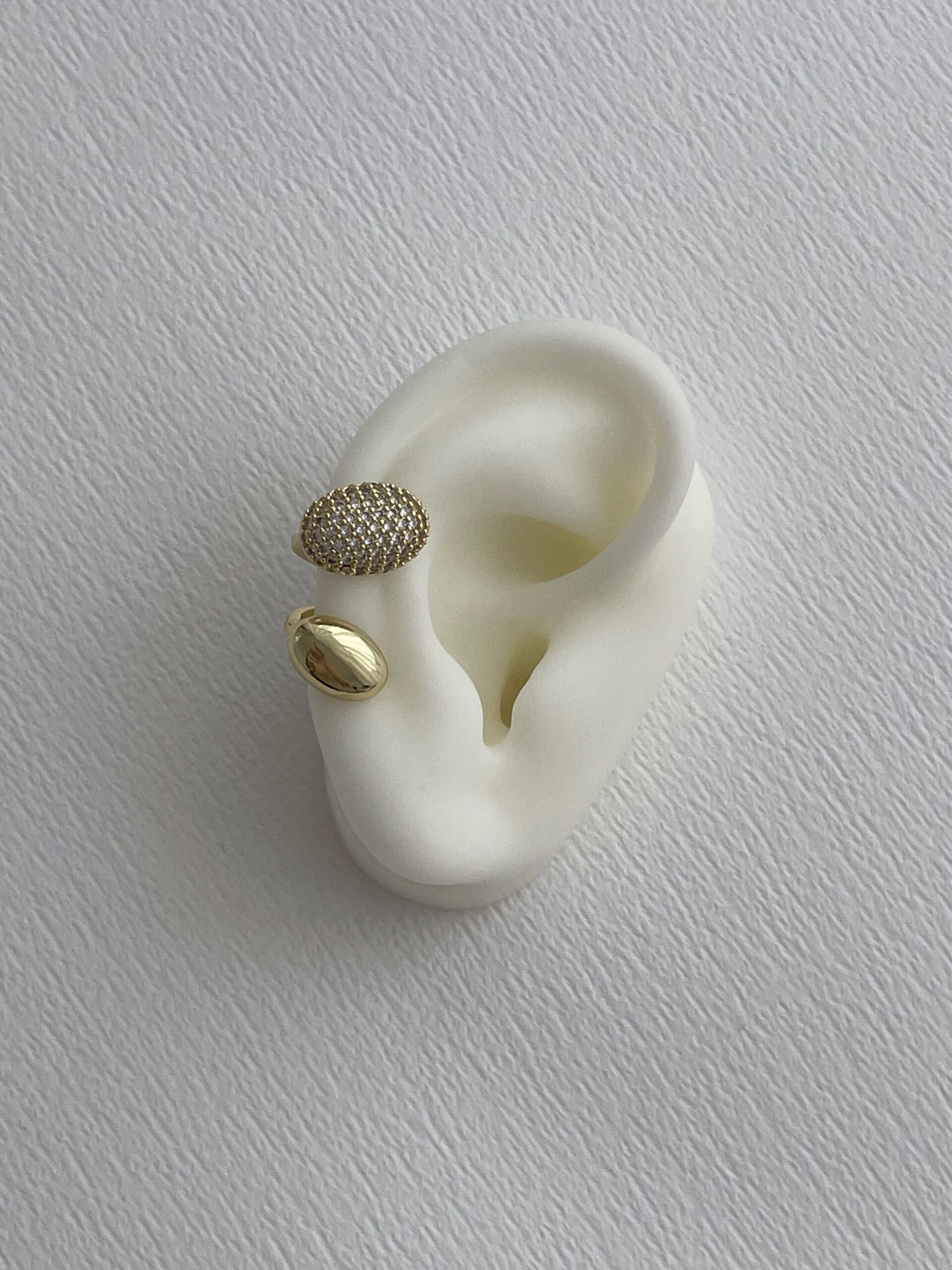 Özel Seri Zirkon Taşlı İkili Oval Tasarım Gold Earcuff Küpe (Delik Gerektirir)