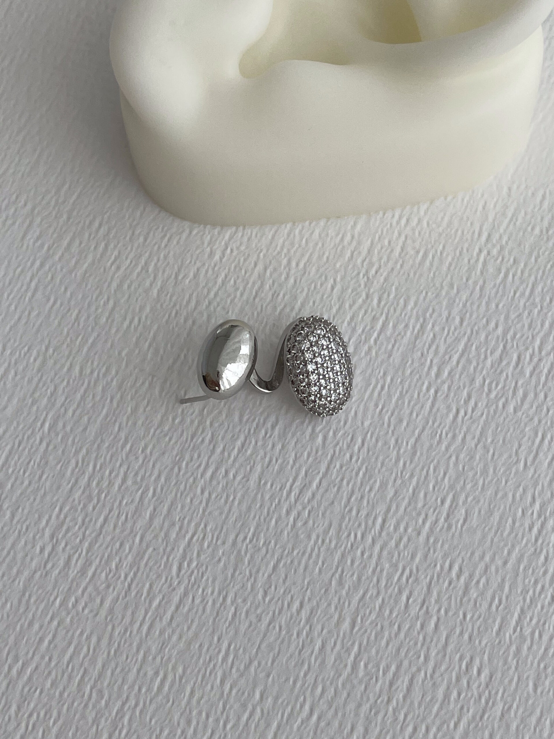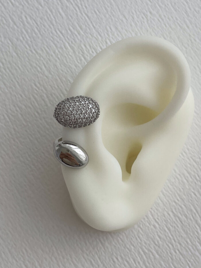 Özel Seri Zirkon Taşlı İkili Oval Tasarım Gümüş Earcuff Küpe (Delik Gerektirir)