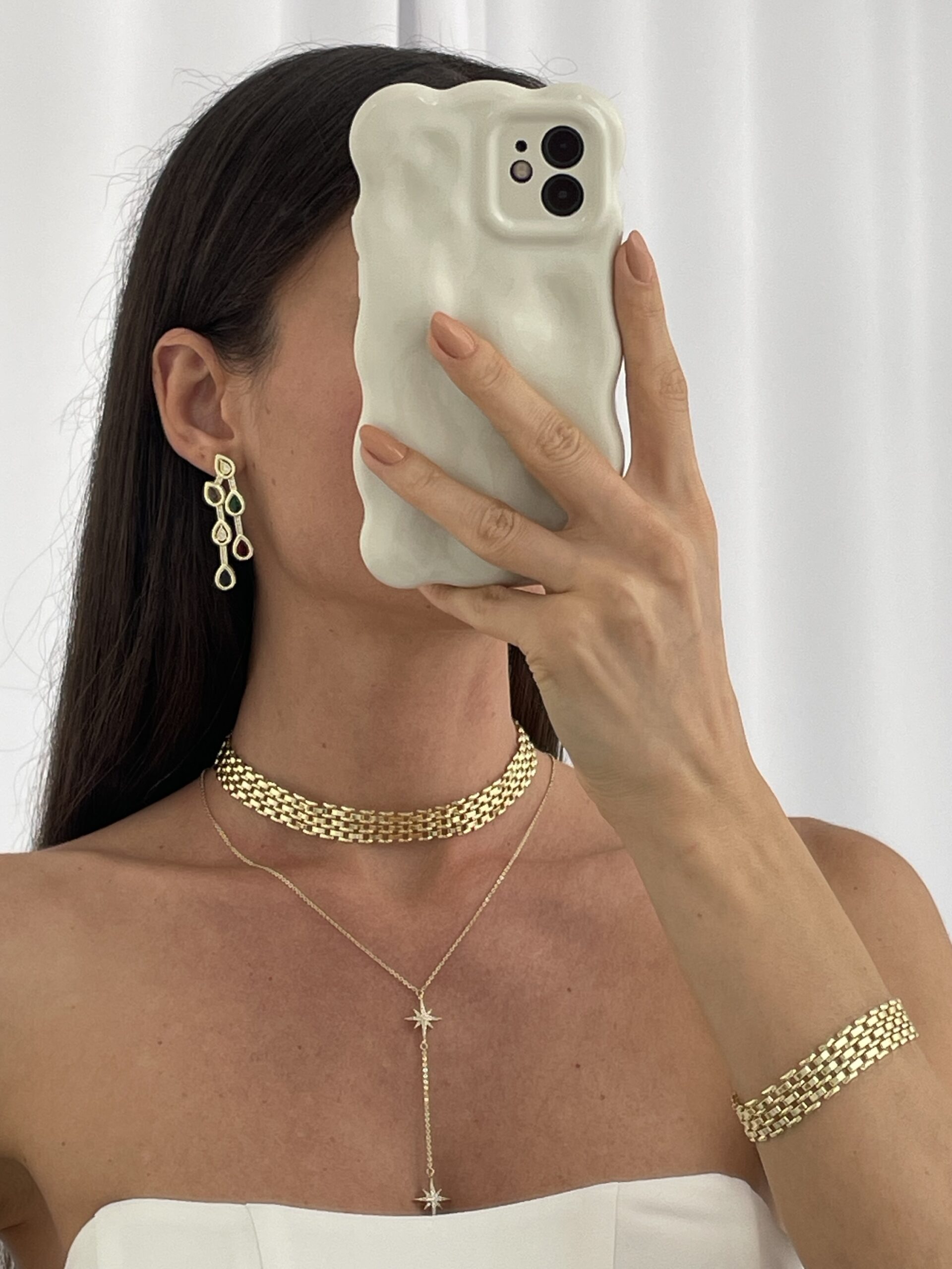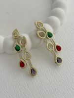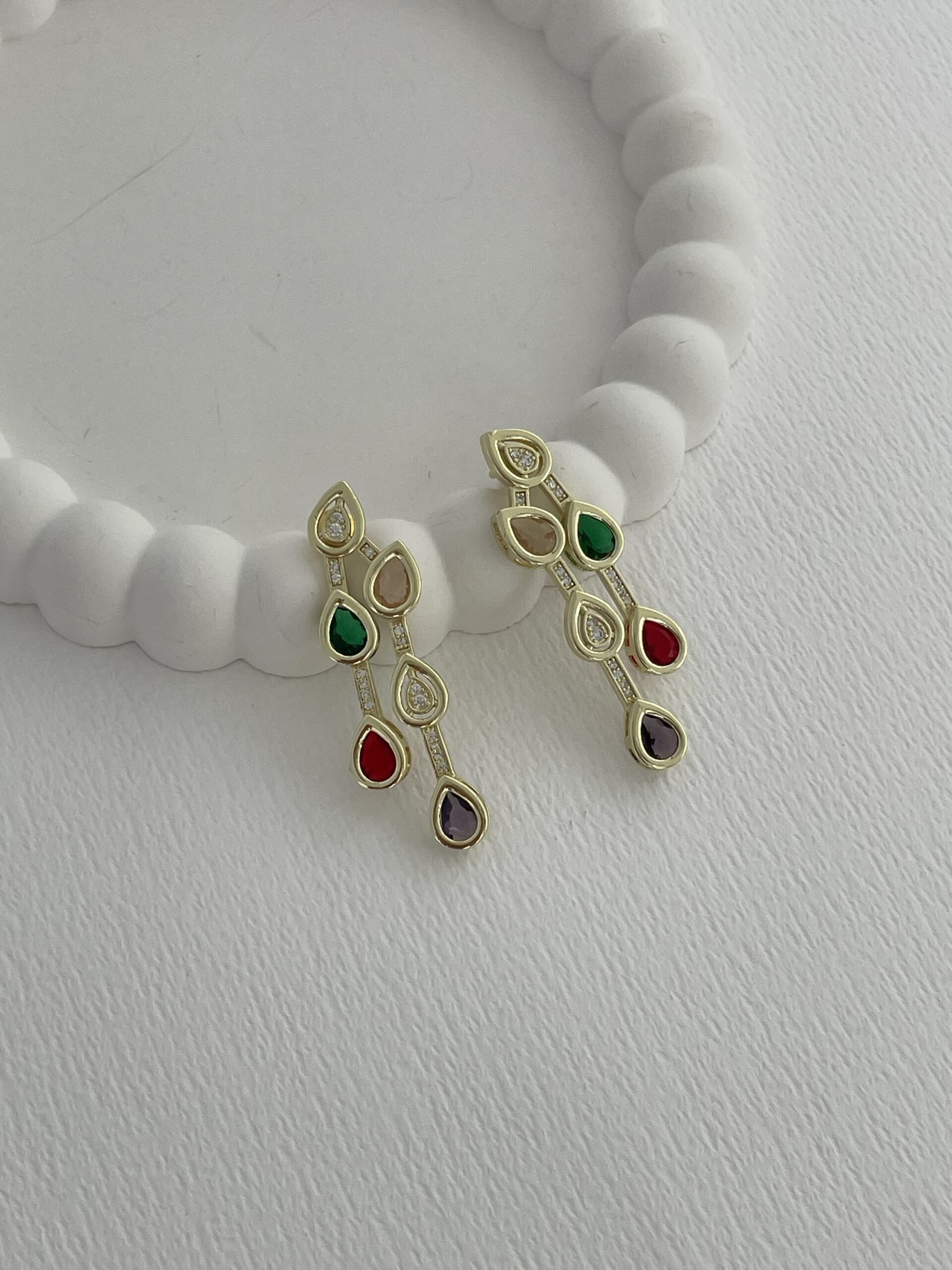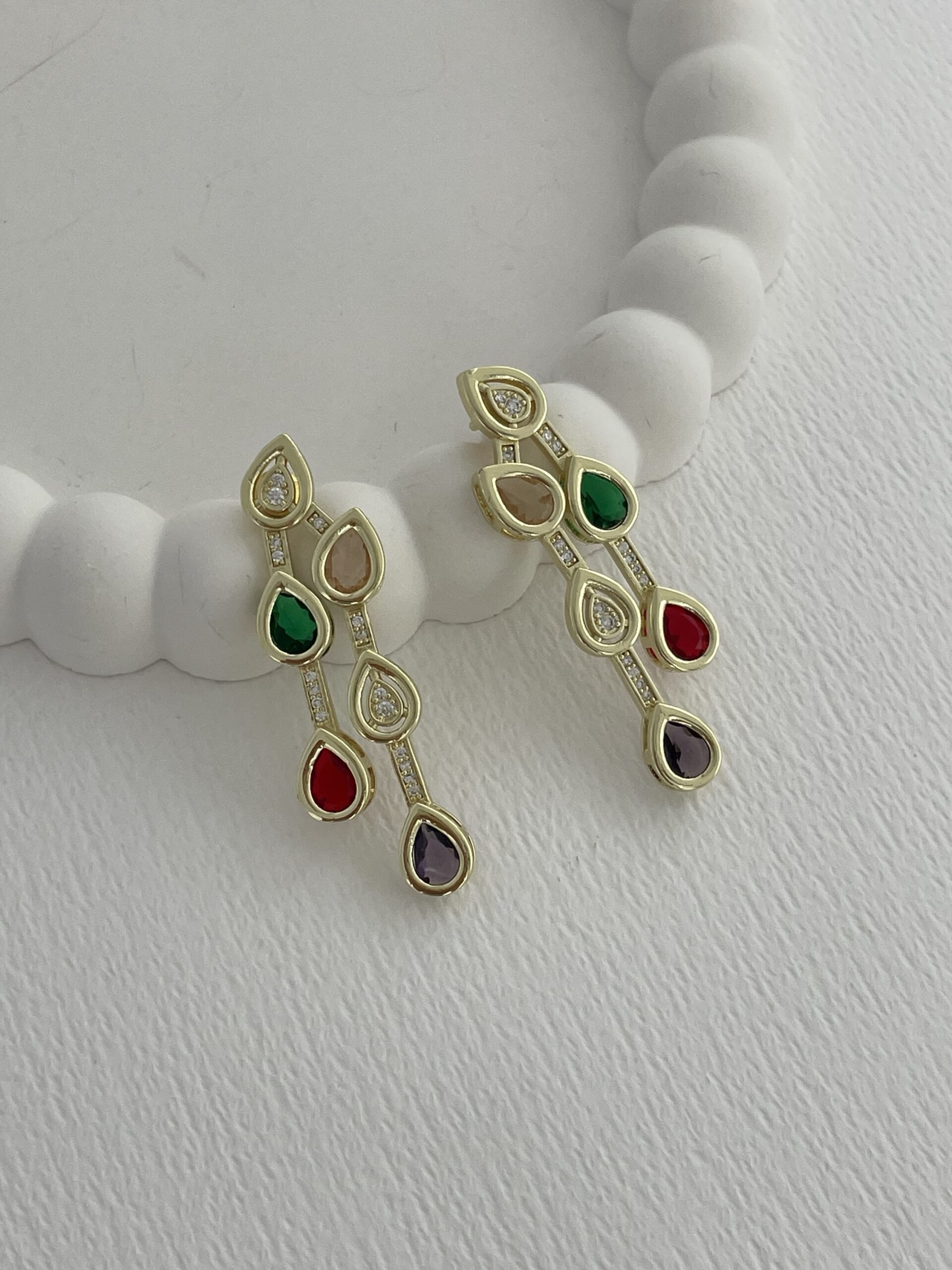 Özel Seri Zirkon Taşlı İkili Renkli Damla Tasarım Gold Marka Küpe