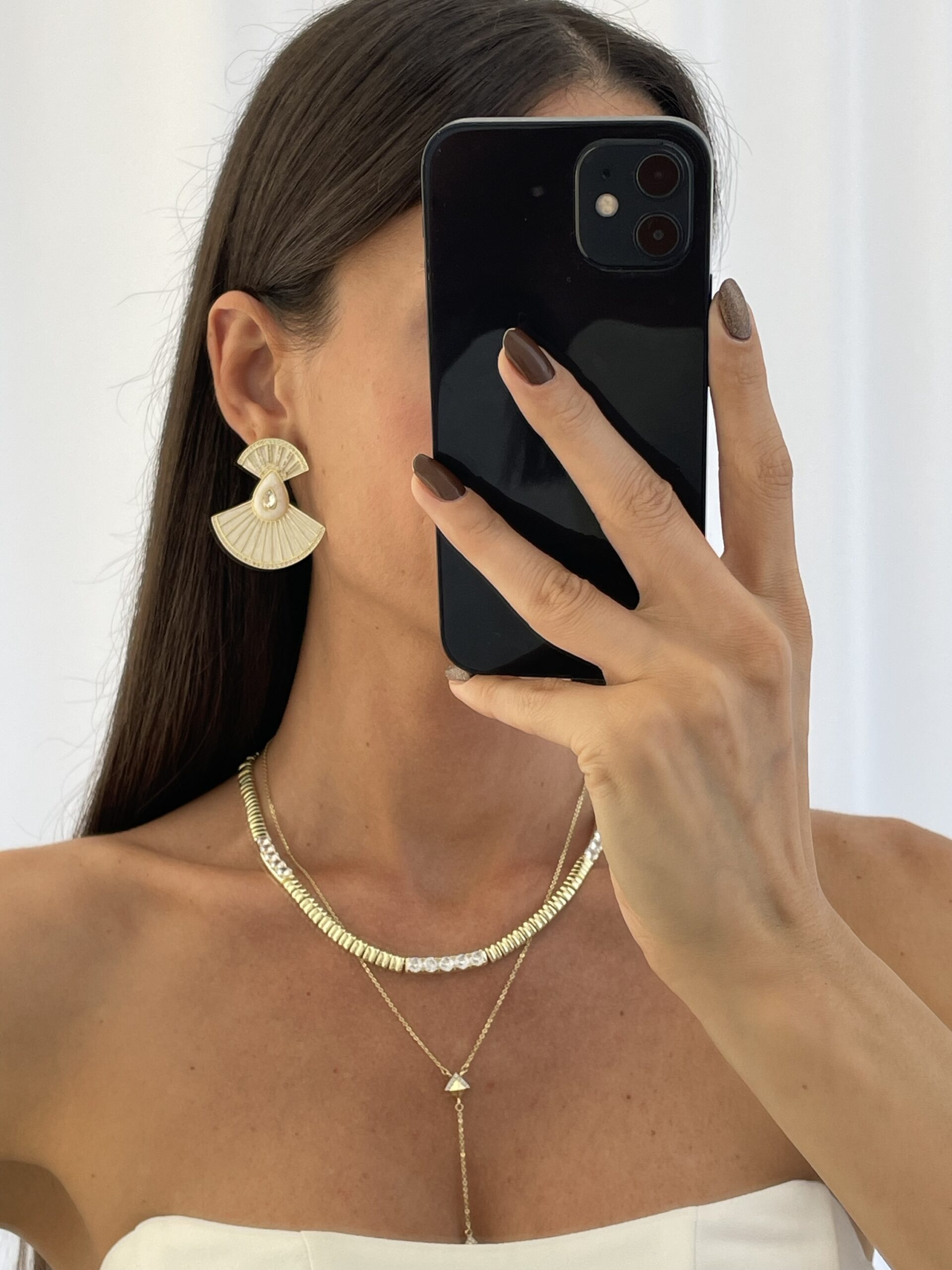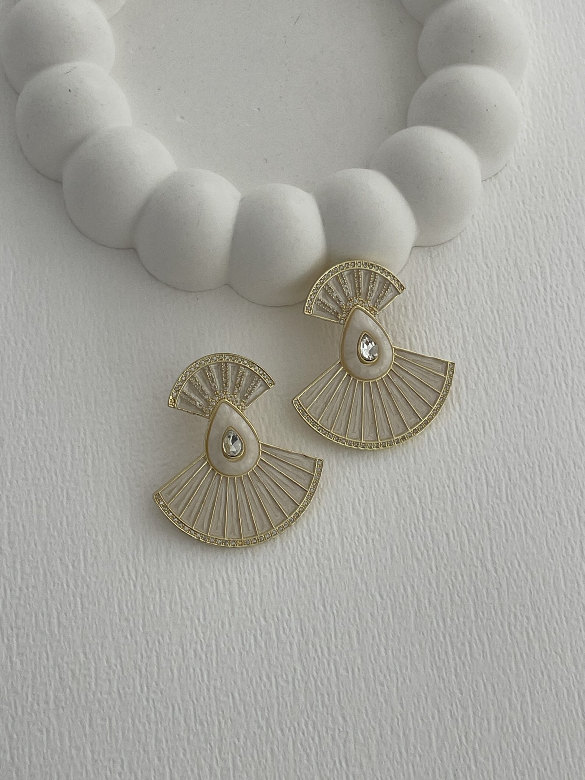 Özel Seri Zirkon Taşlı İkili Yelpaze Tasarım Gold Küpe