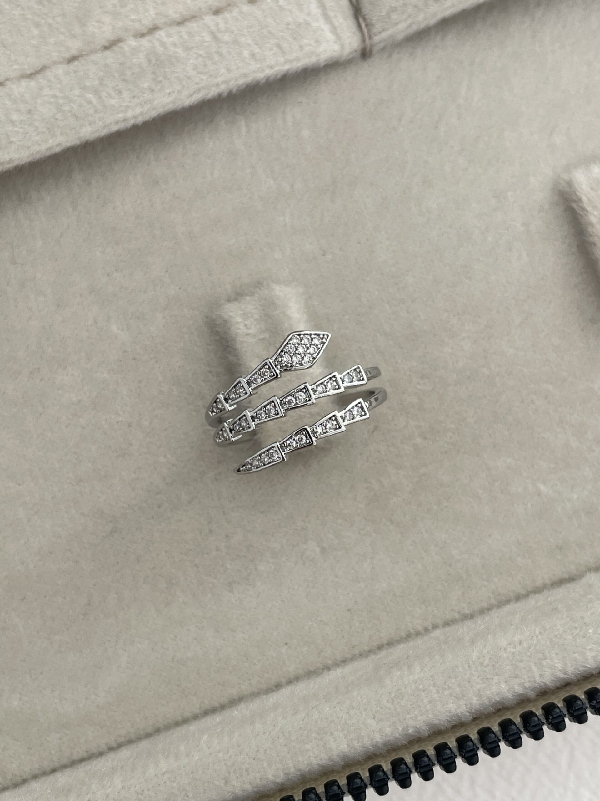 Özel Seri Zirkon Taşlı Yılan Tasarım Gümüş Ayarlanabilir Yüzük