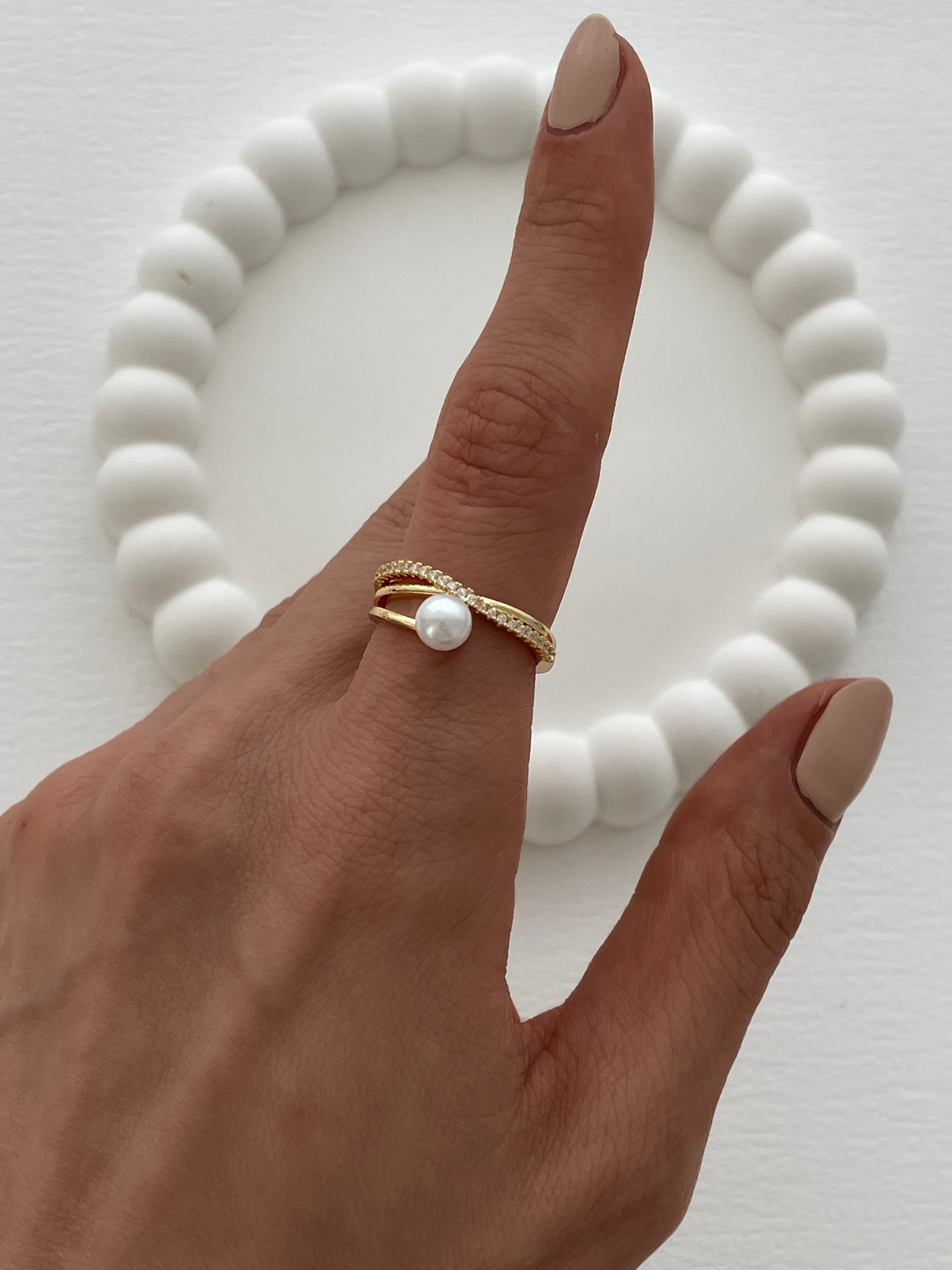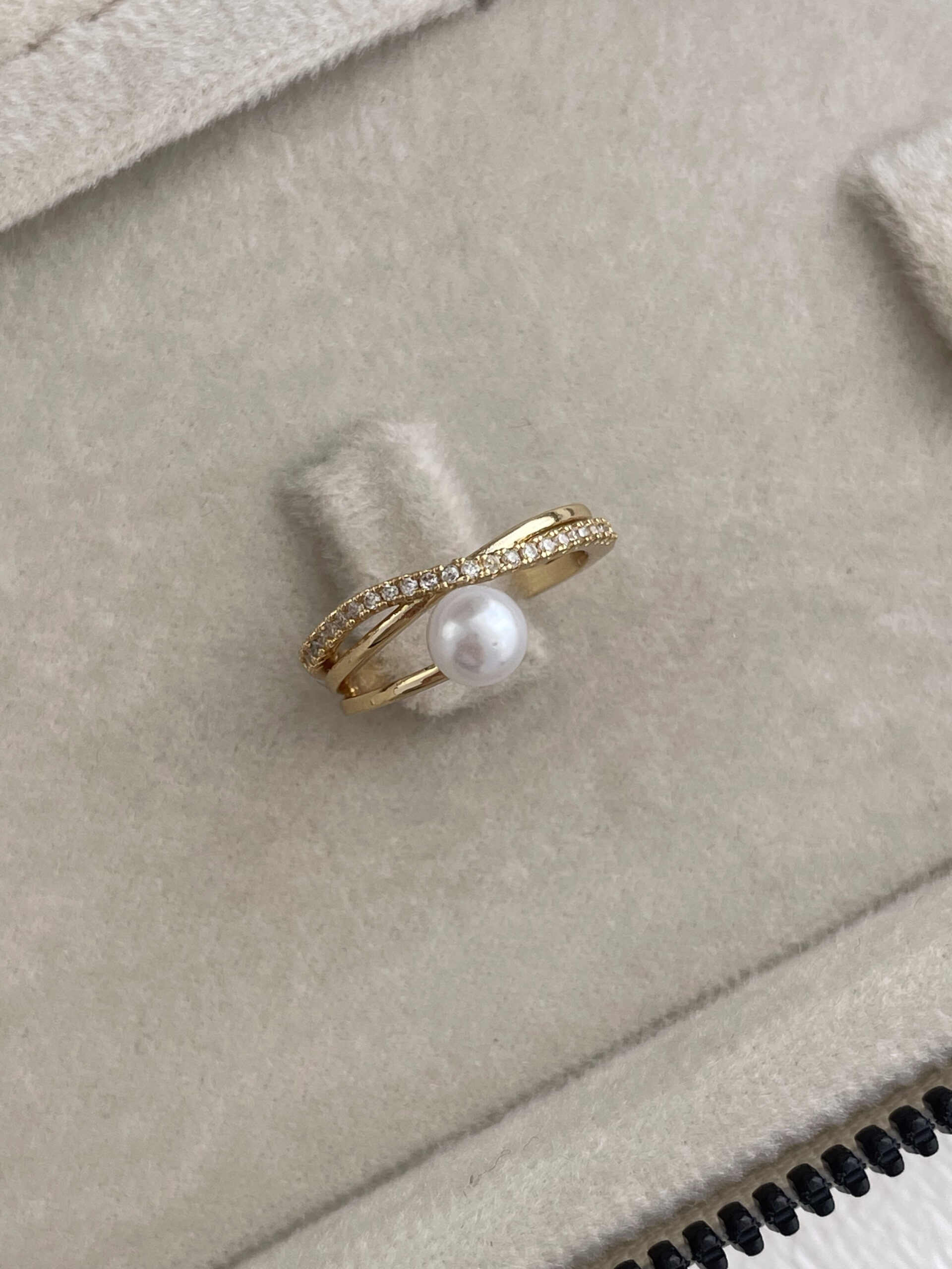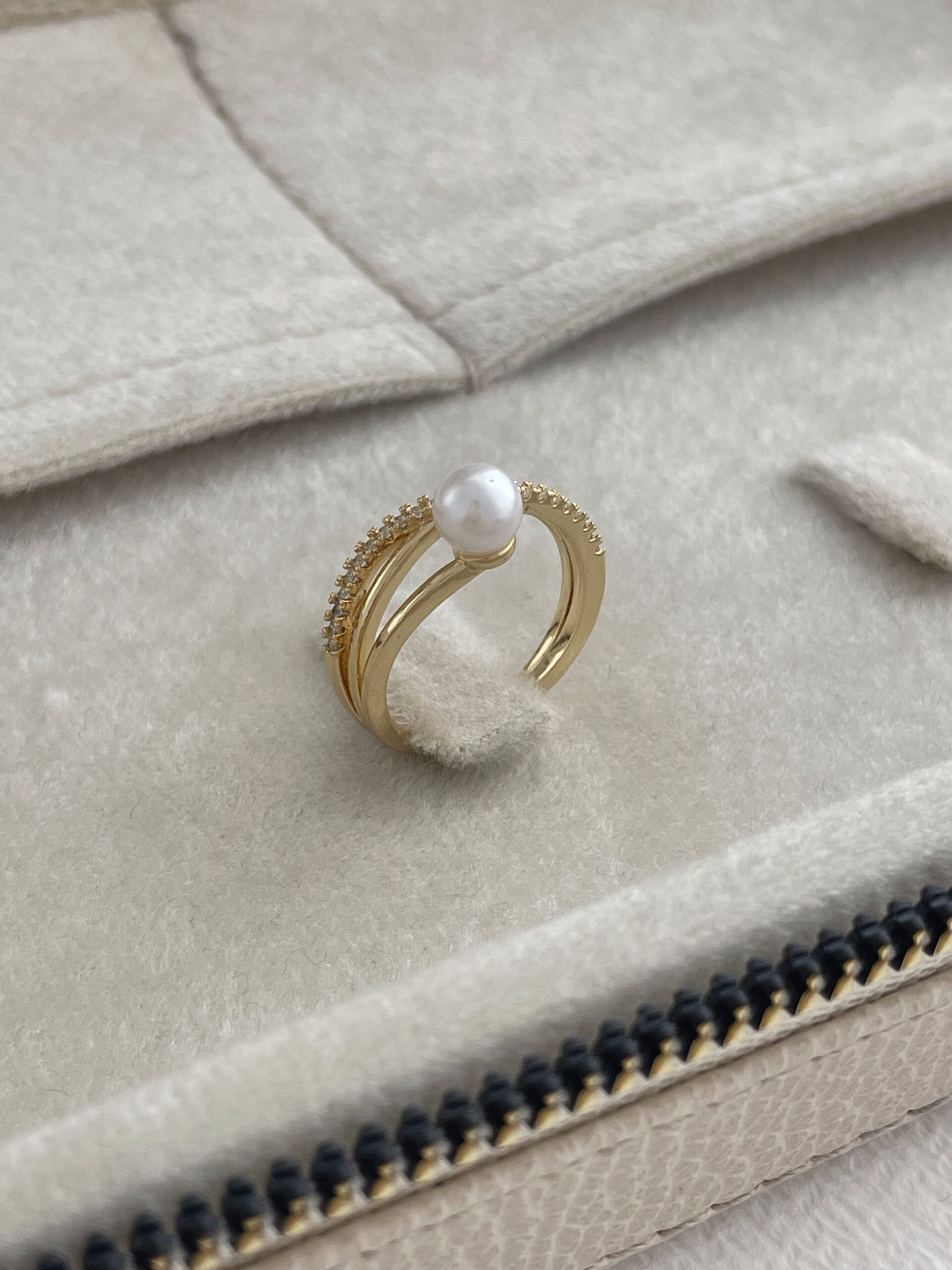 Özel Seri Zirkon Taşlı İnci Detay Ayarlanabilir Gold Yüzük