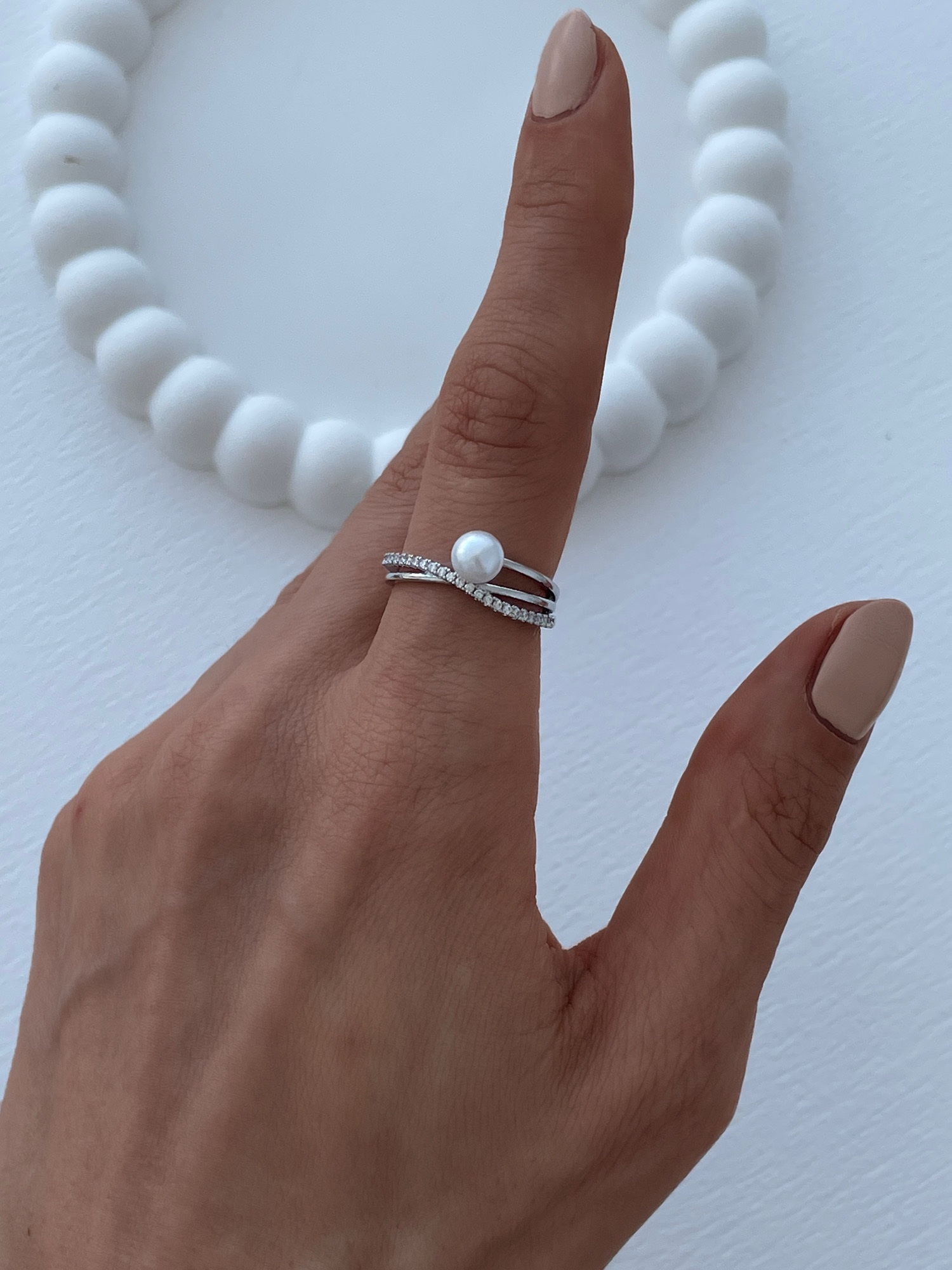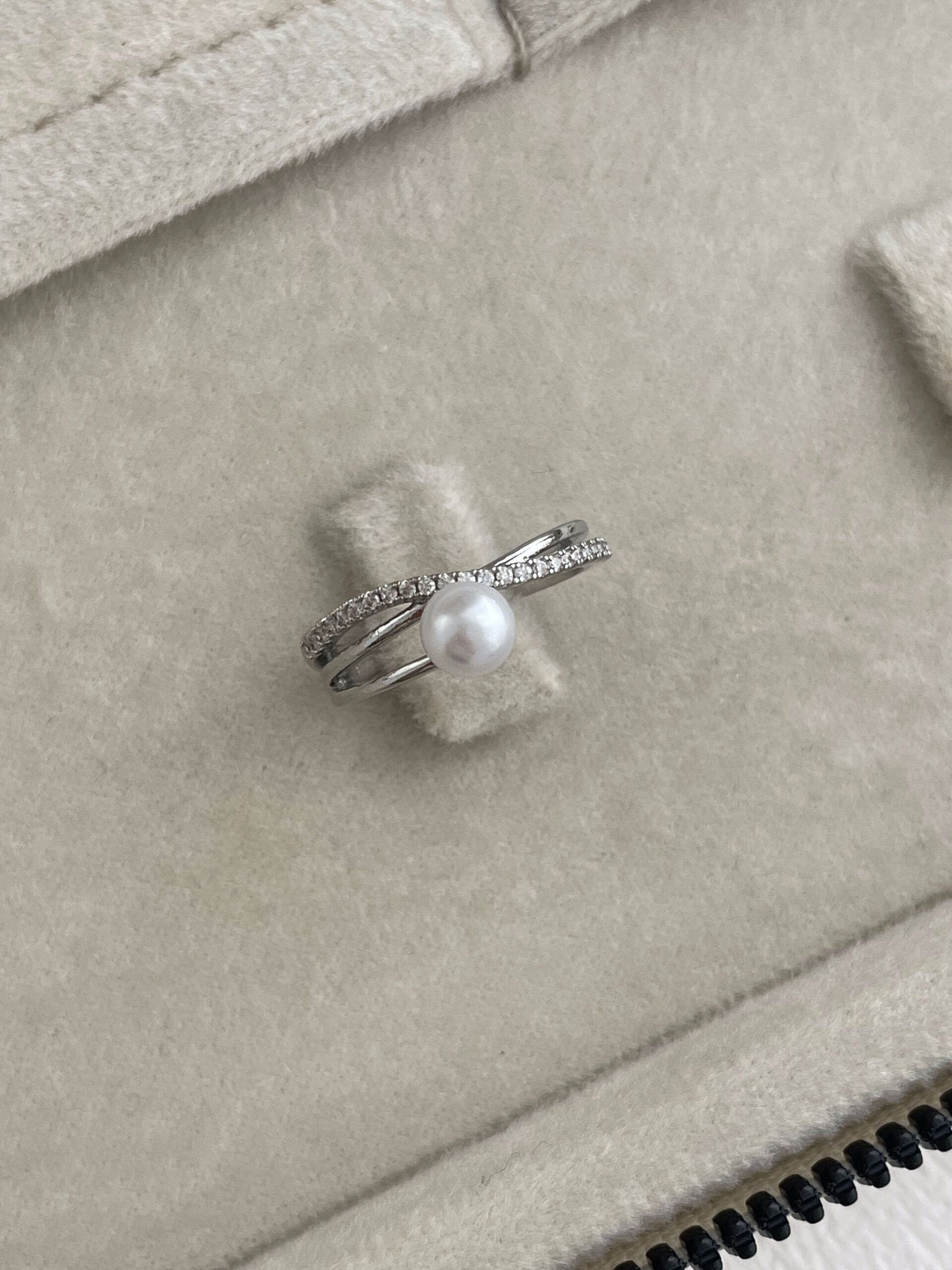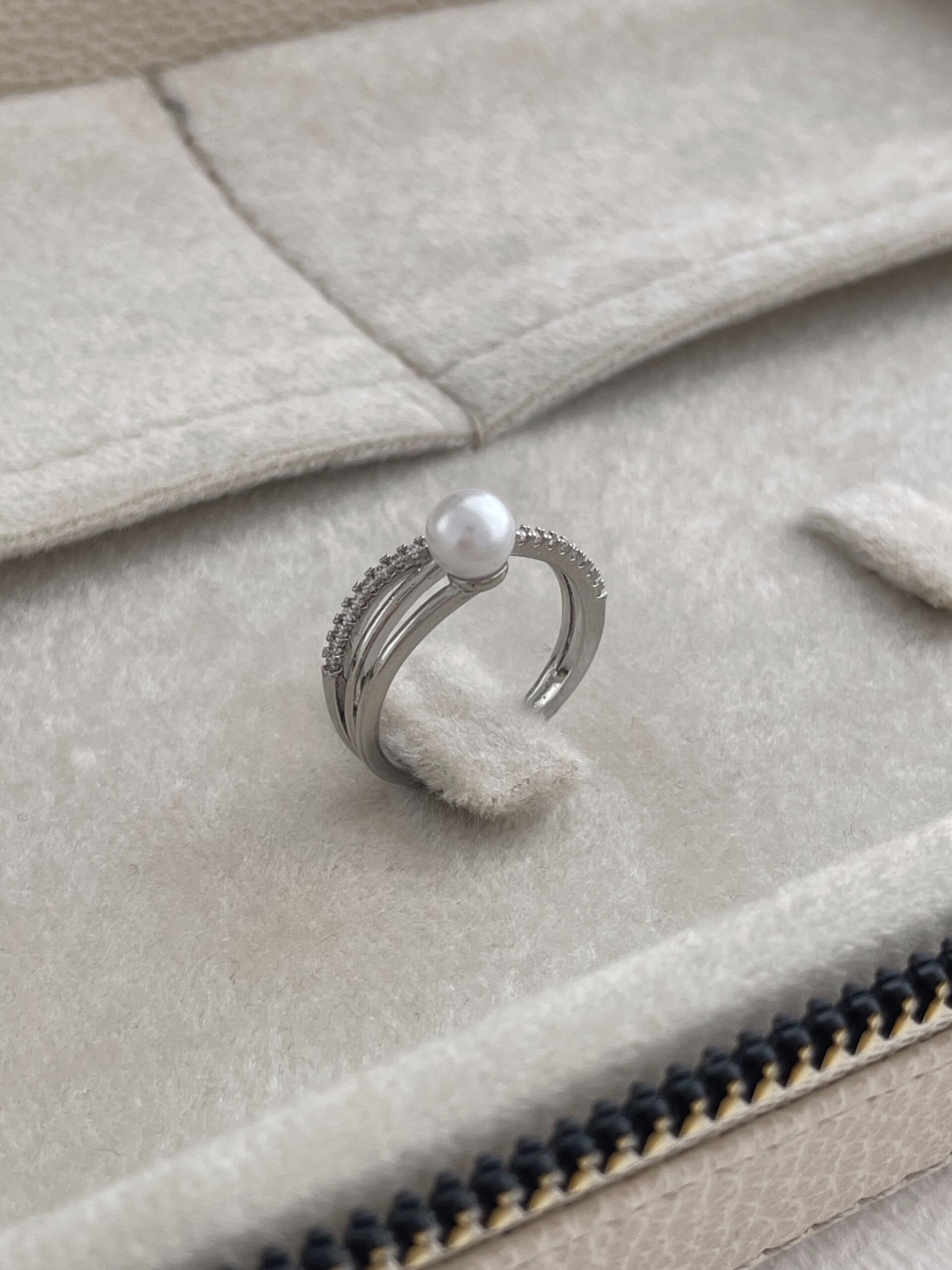 Özel Seri Zirkon Taşlı İnci Detay Ayarlanabilir Gümüş Yüzük