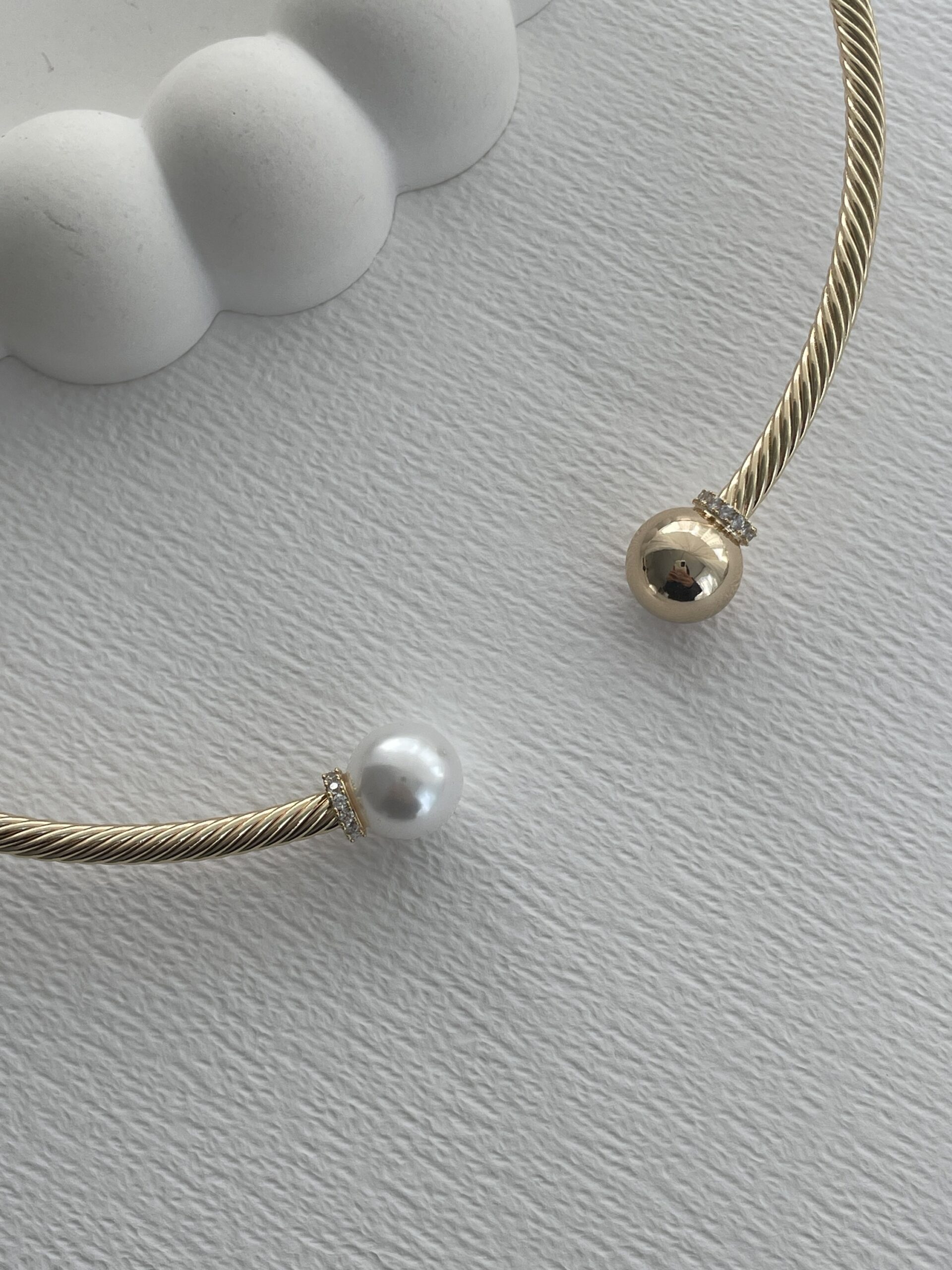 Özel Seri Zirkon Taşlı İnci Detay Gold Choker Kolye