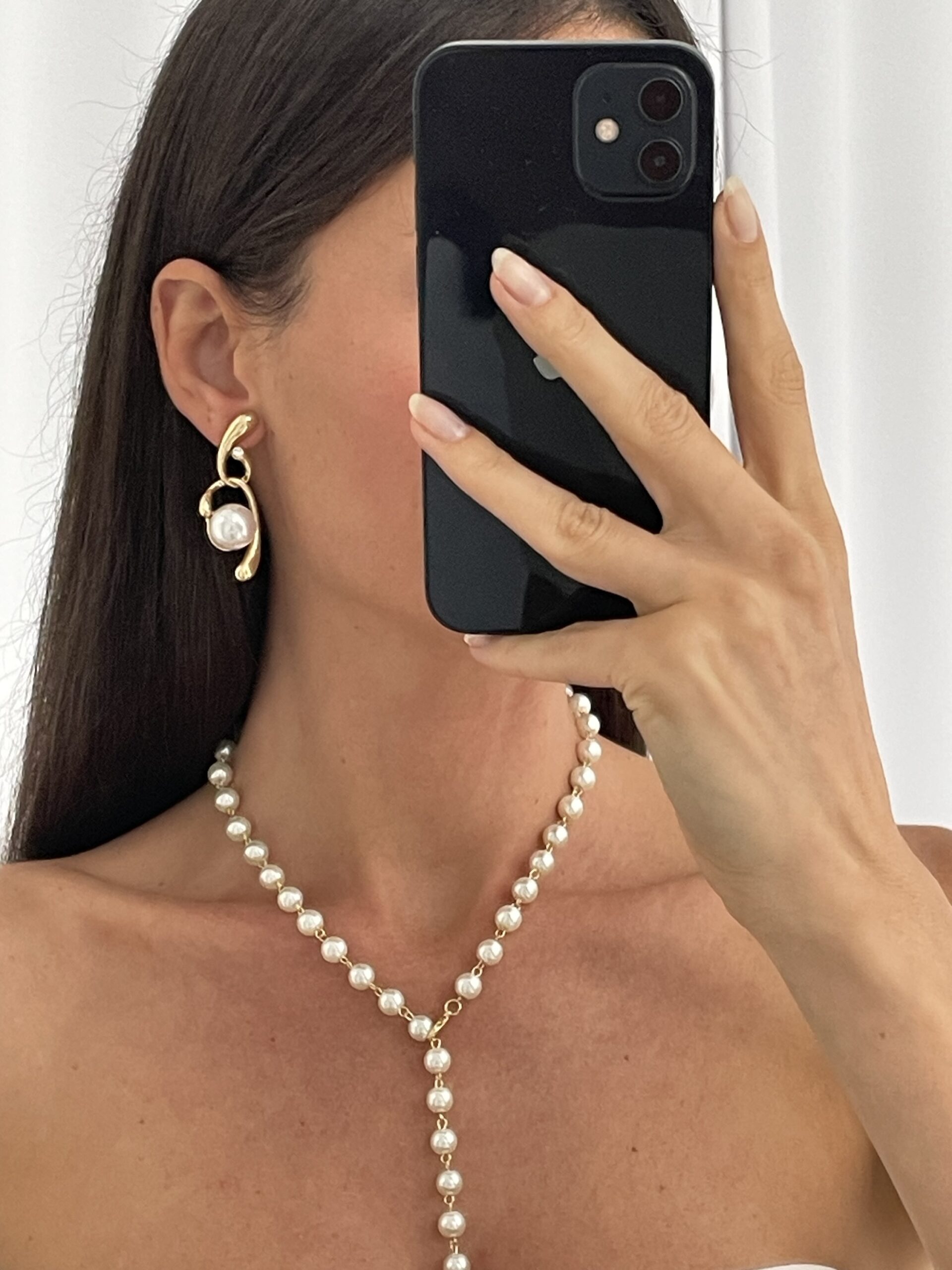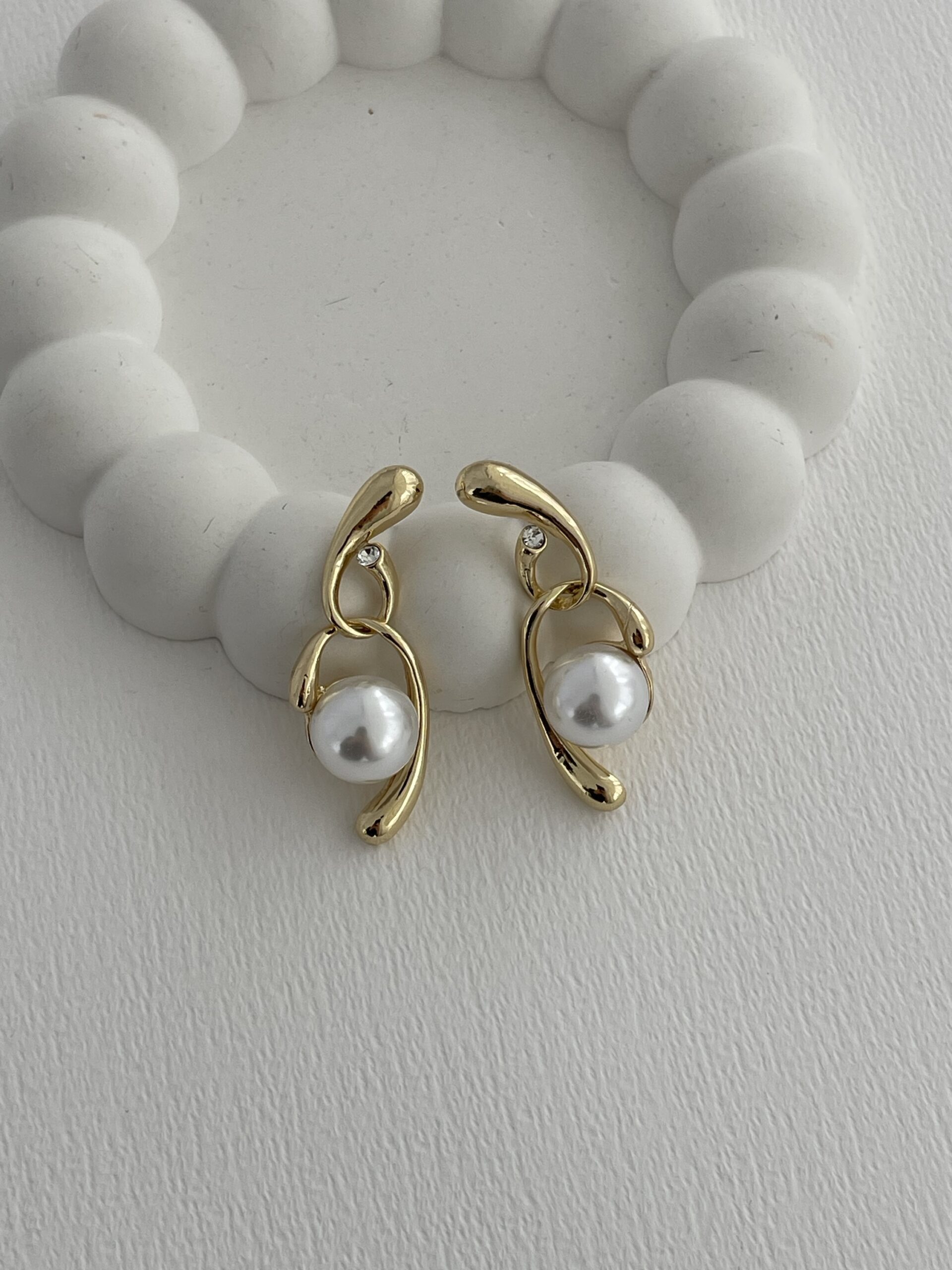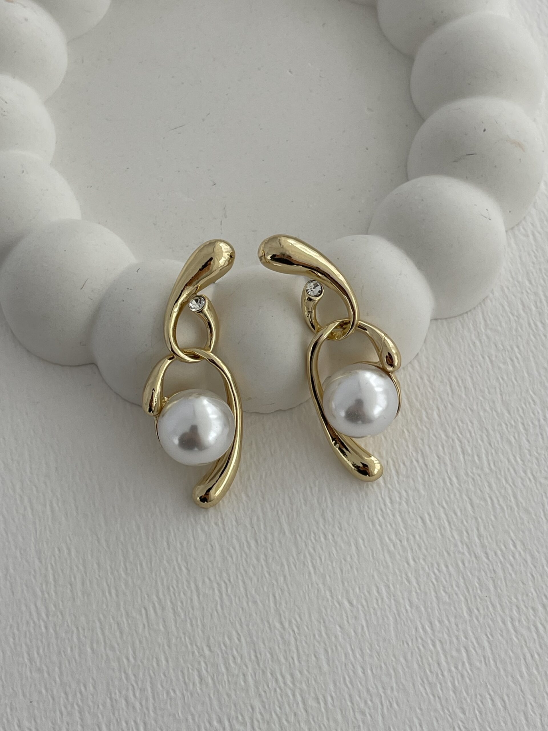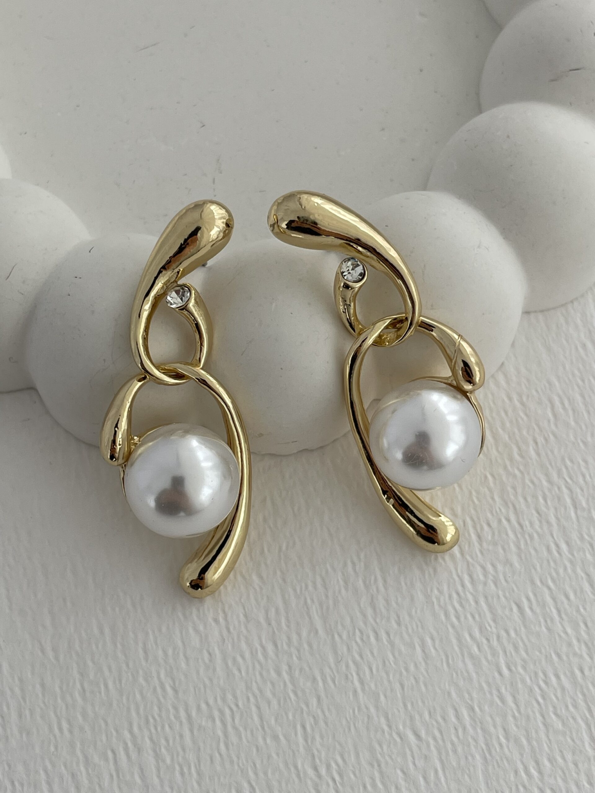 Özel Seri Zirkon Taşlı İnci Detay Gold Küpe