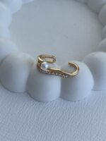 Özel Seri Zirkon Taşlı İnci Detaylı Gold Earcuff