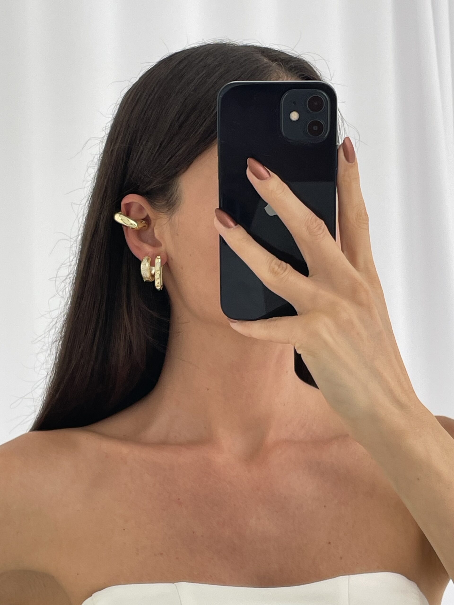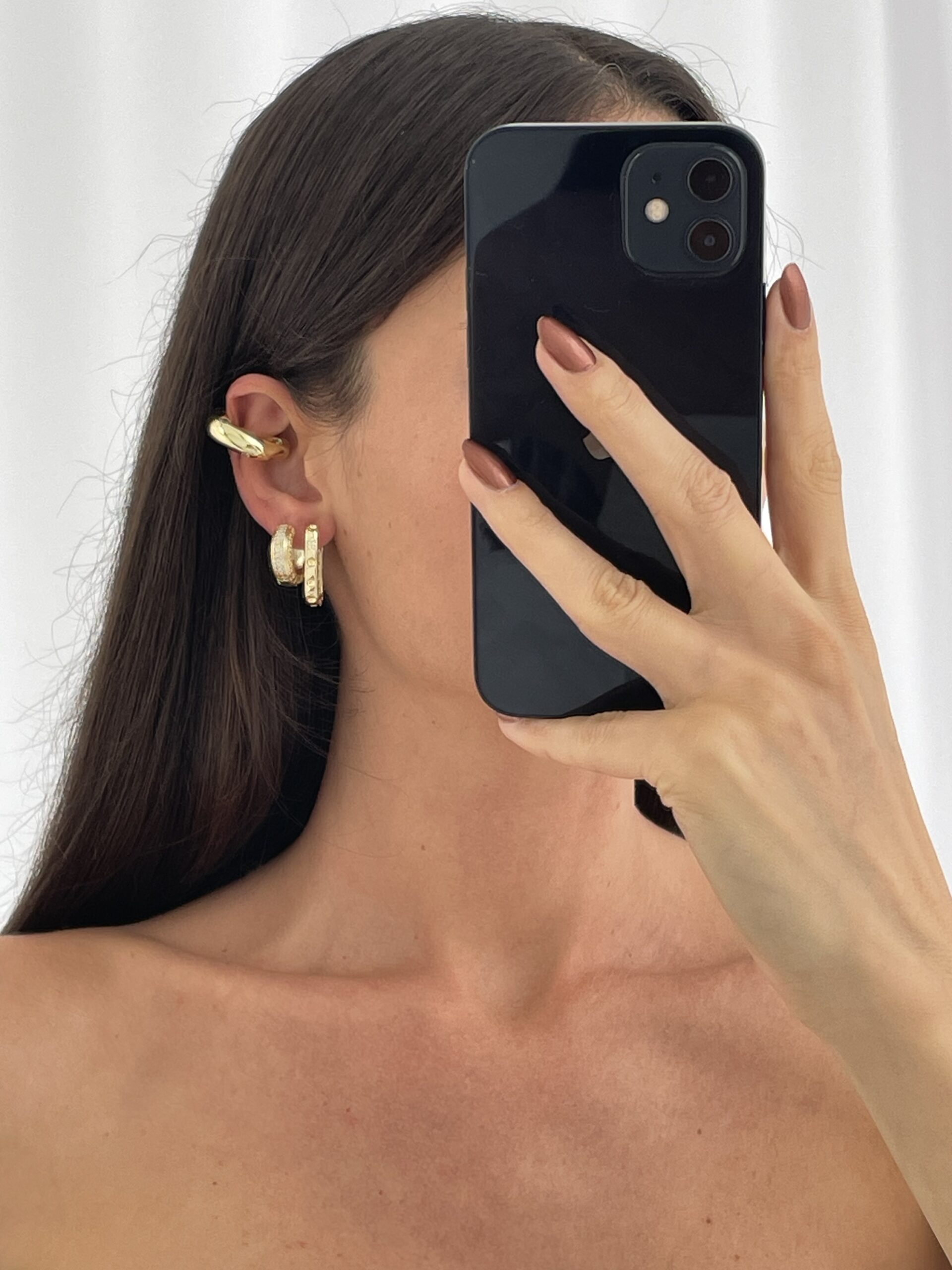 Özel Seri Zirkon Taşlı Kalın Gold Earcuff Küpe