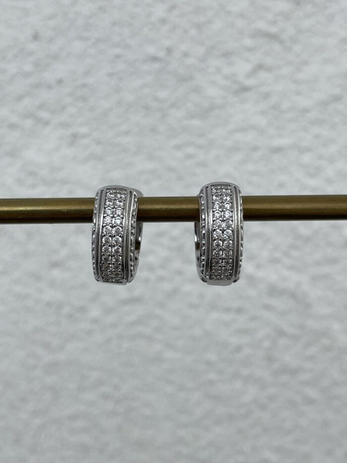 Özel Seri Zirkon Taşlı Kalın Gümüş Halka Küpe
