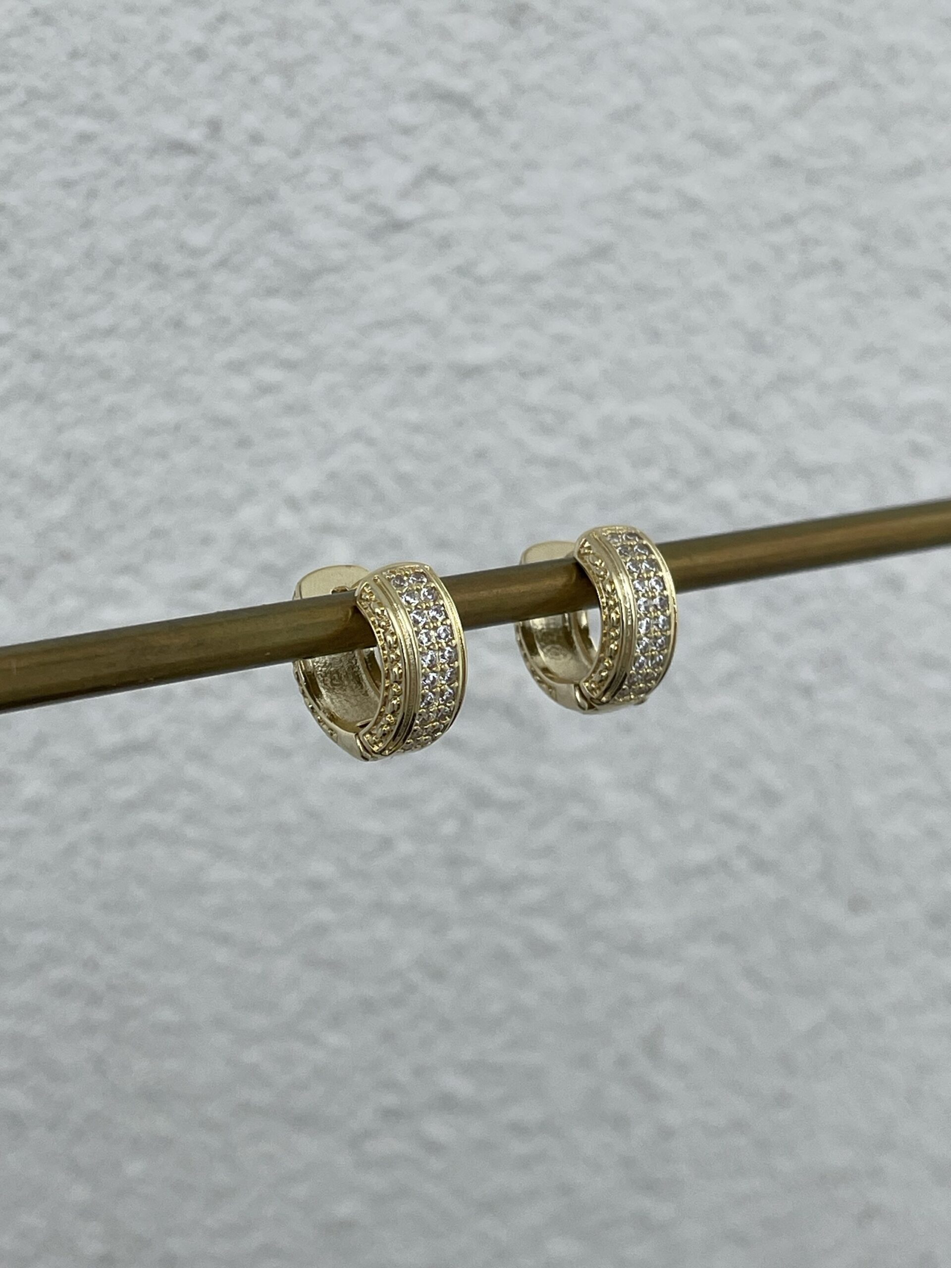 Özel Seri Zirkon Taşlı Kalın Mini Gold Halka Küpe
