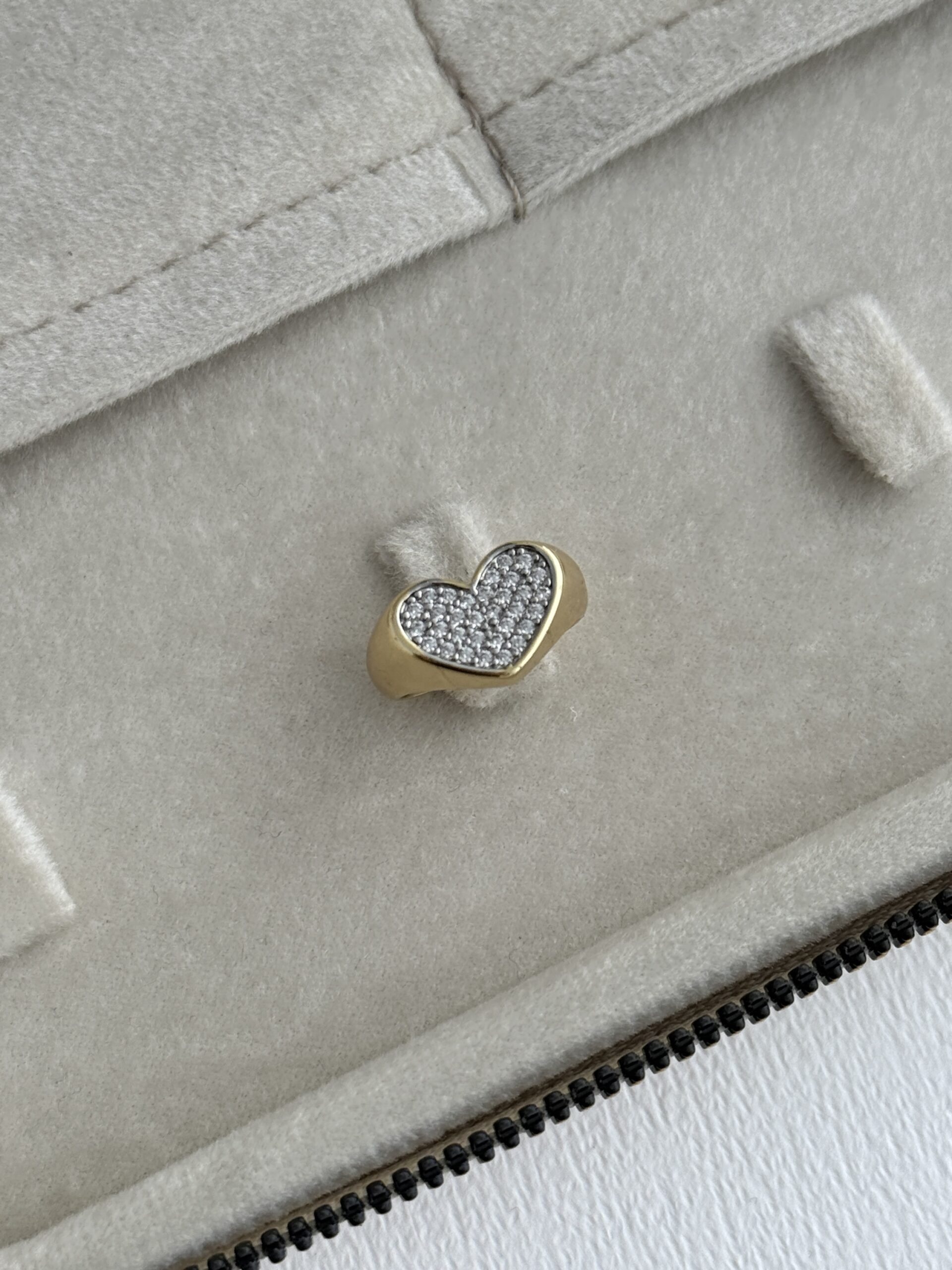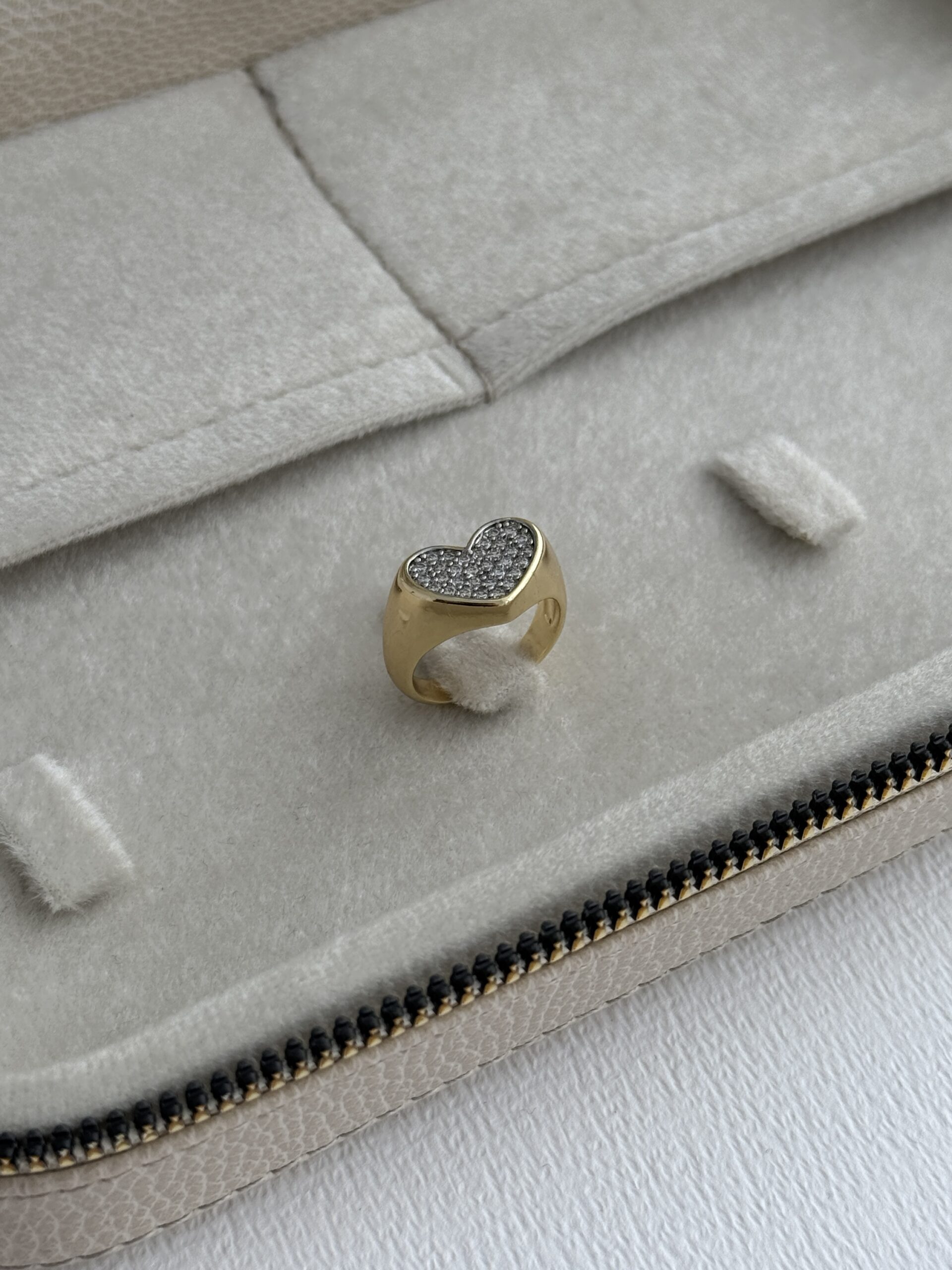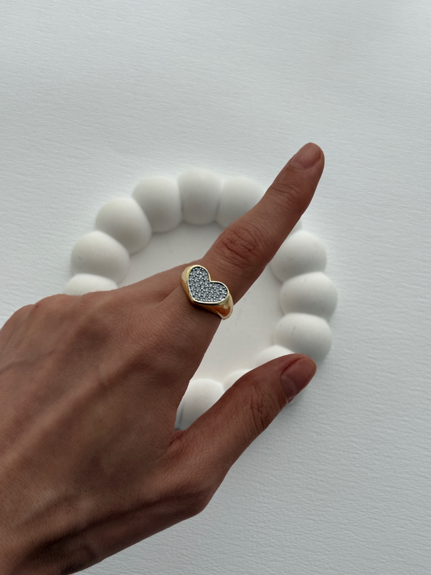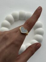 Özel Seri Zirkon Taşlı Kalp Tasarım Ayarlanabilir Gold Yüzük
