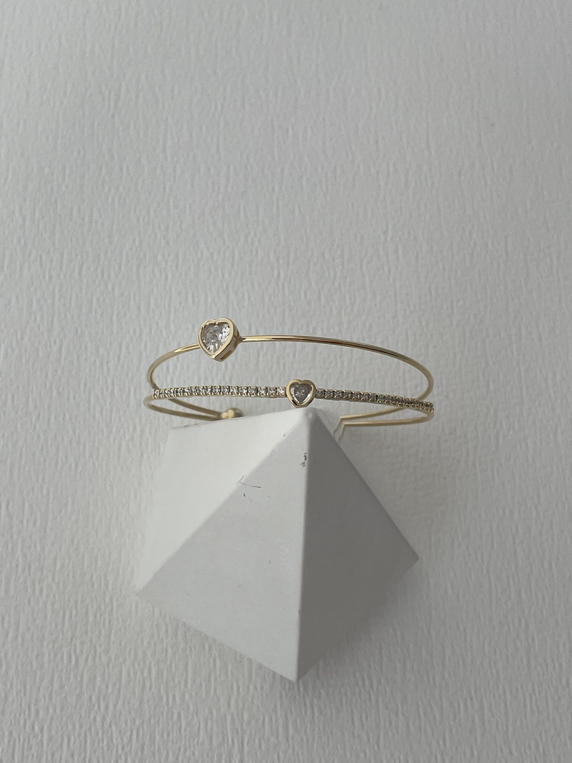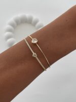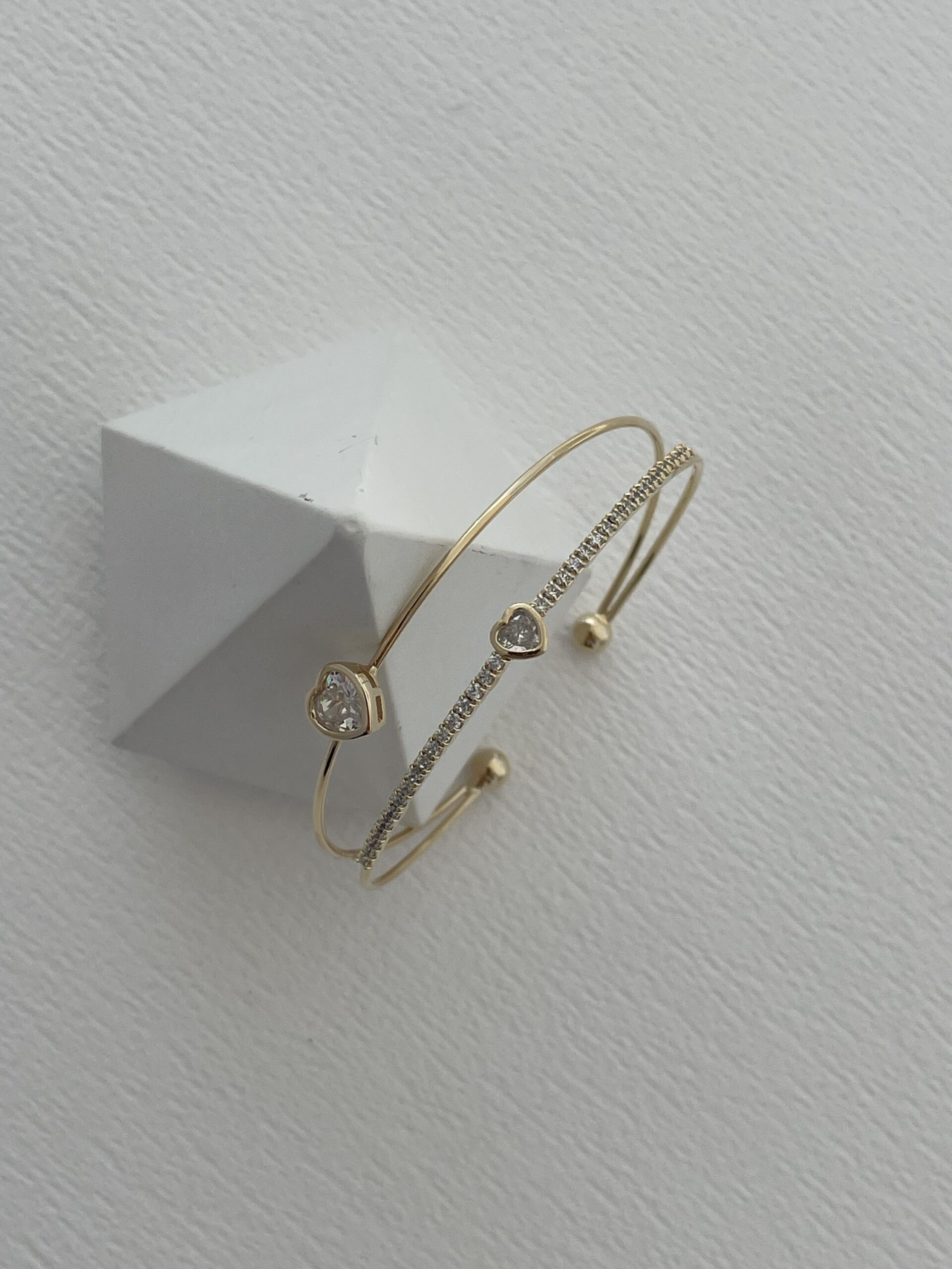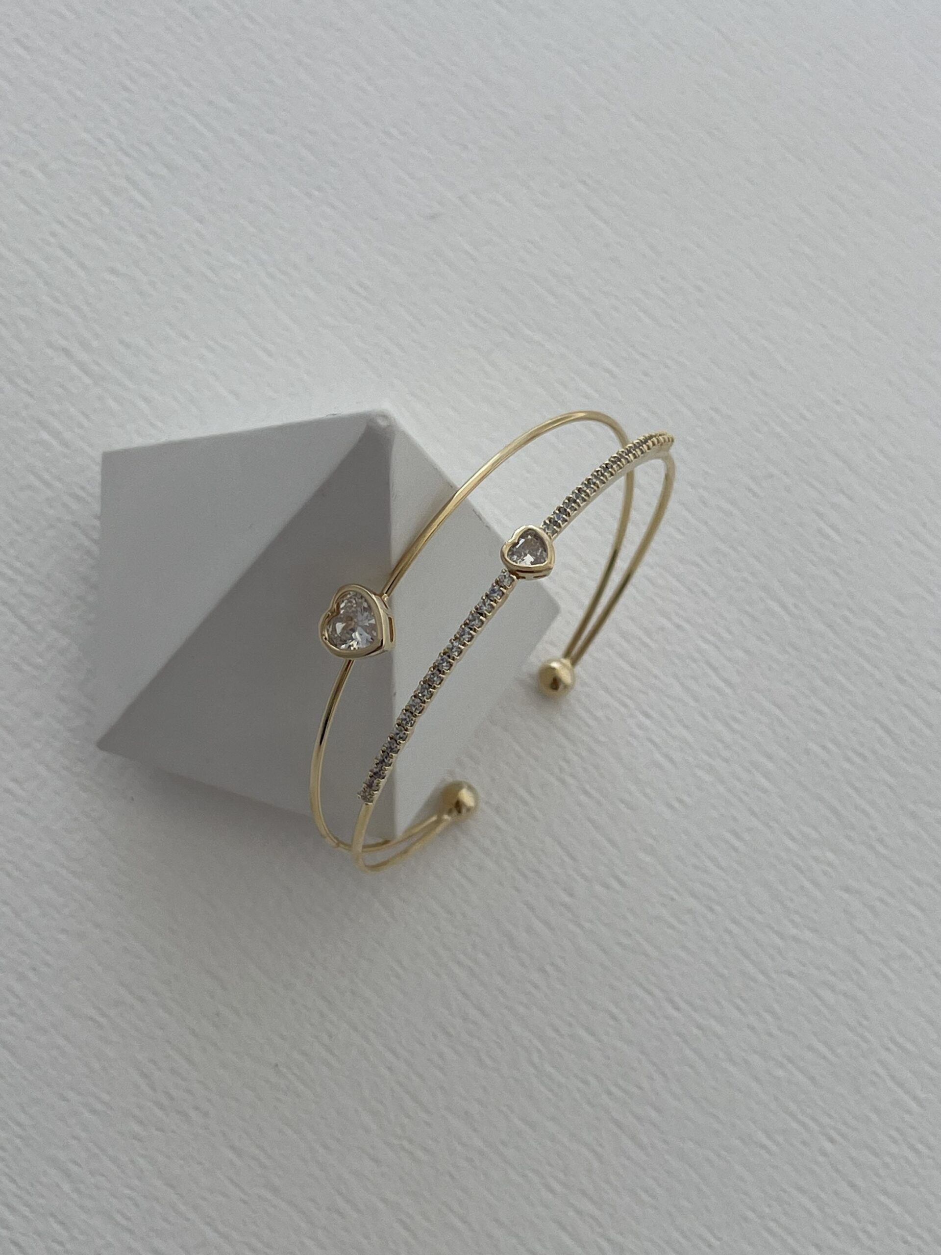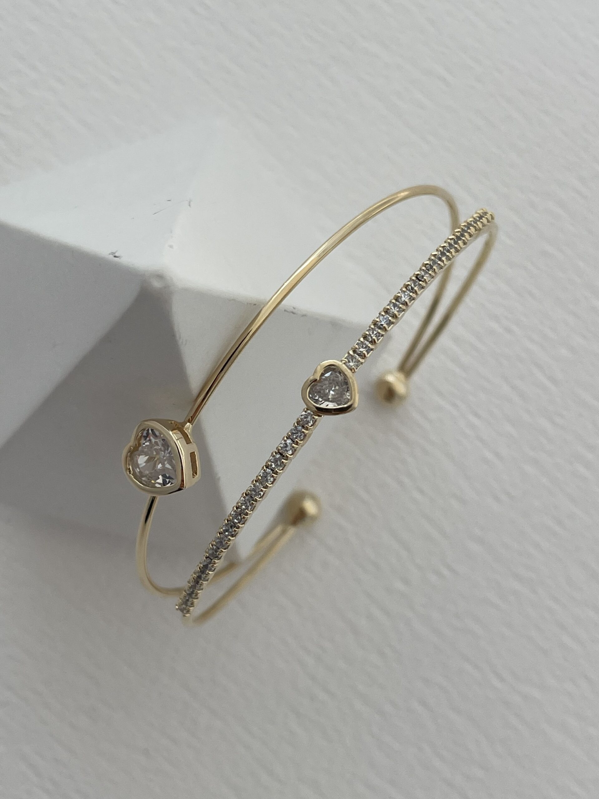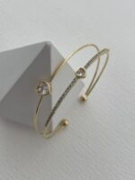 Özel Seri Zirkon Taşlı Kalp Tasarım Gold Ayarlanabilir Bileklik