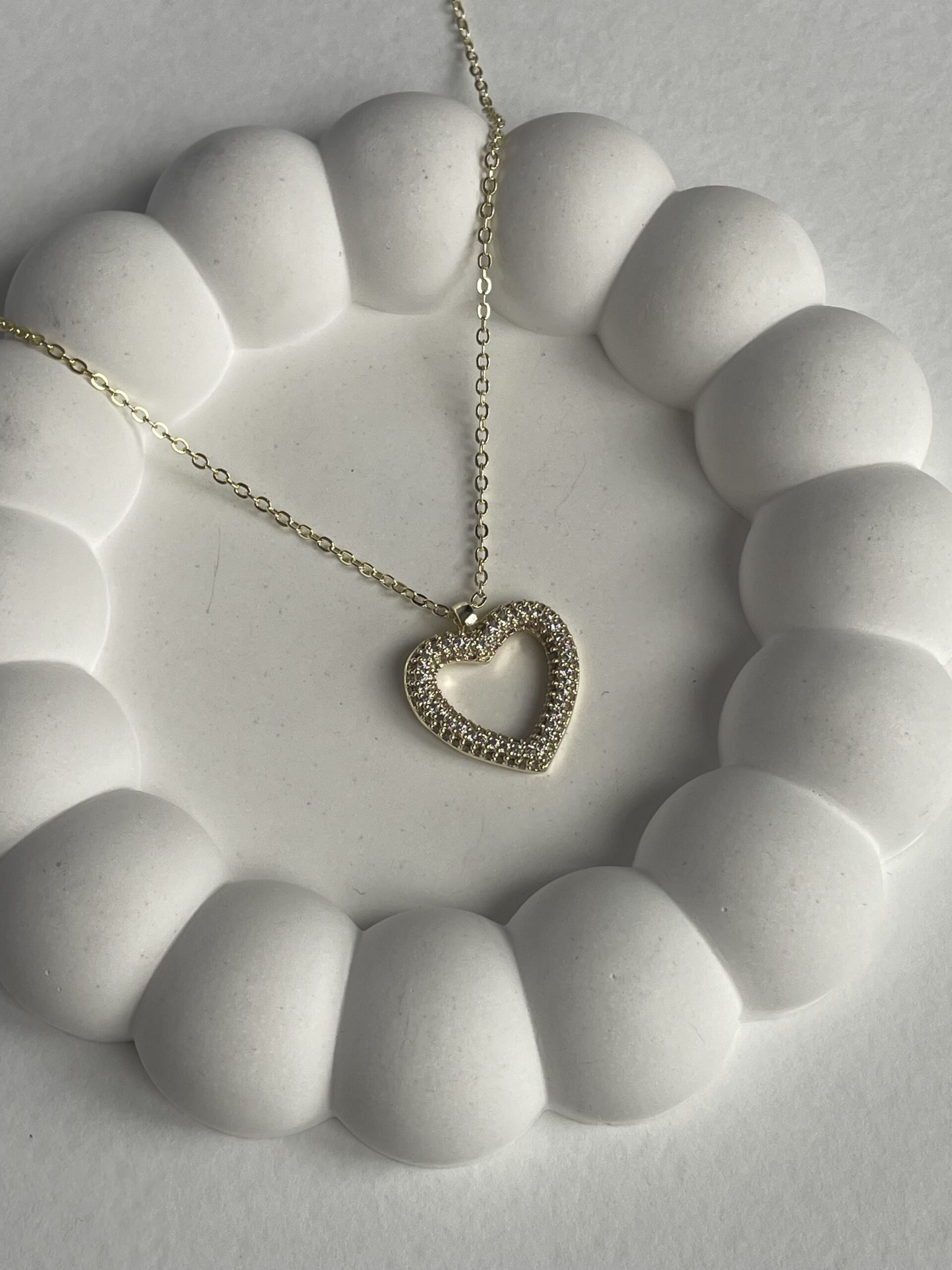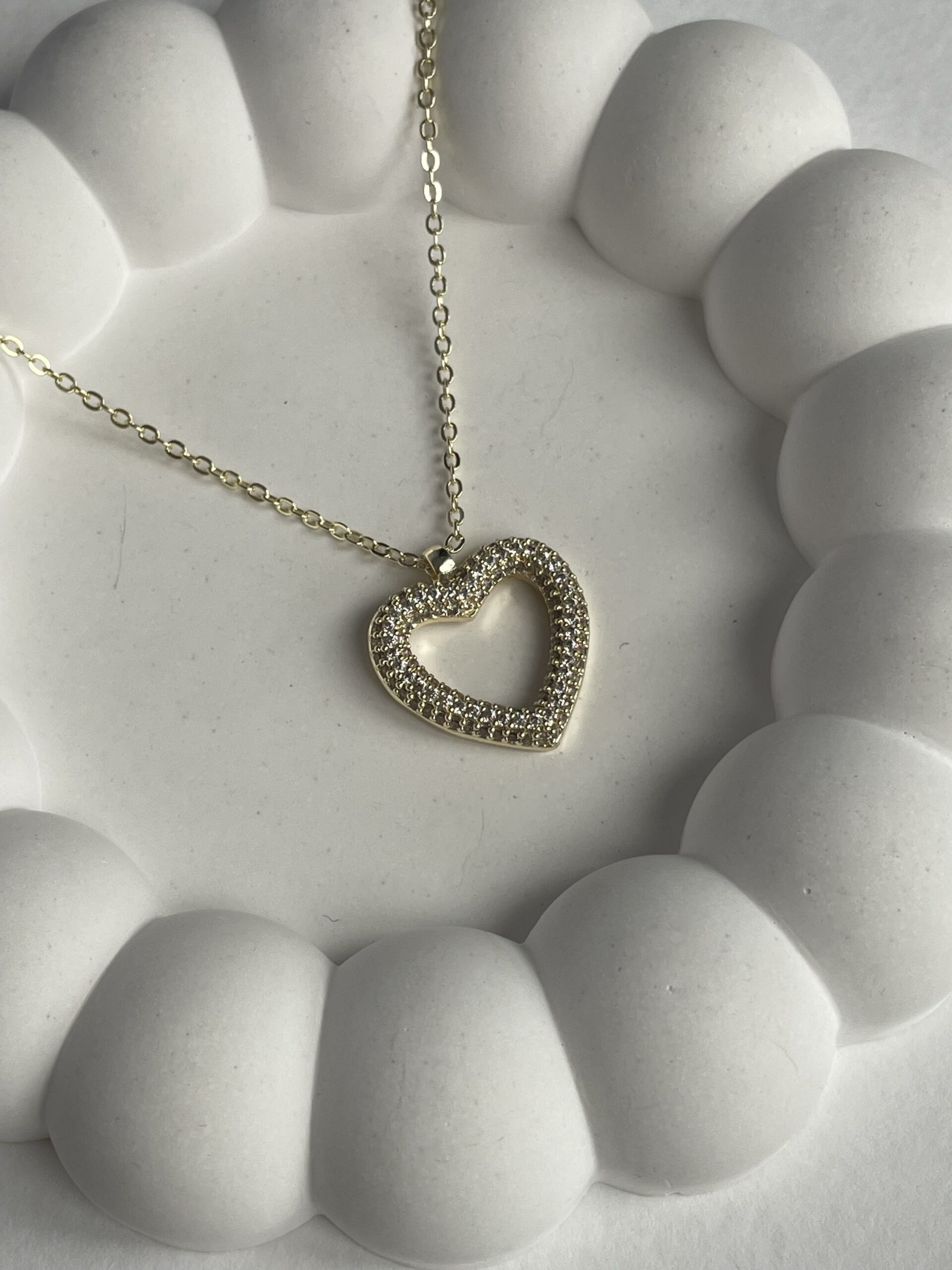 Özel Seri Zirkon Taşlı Kalp Tasarım Gold Kolye